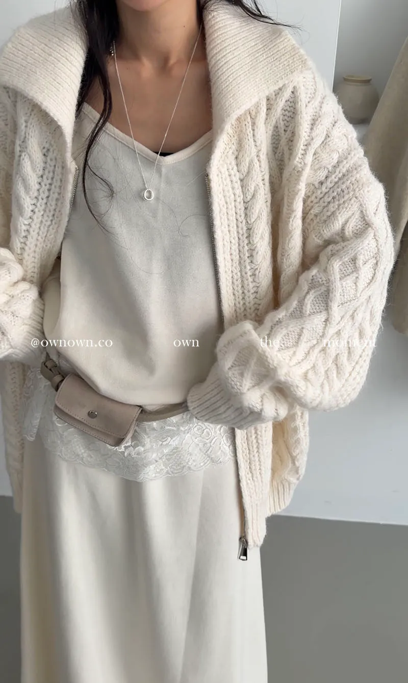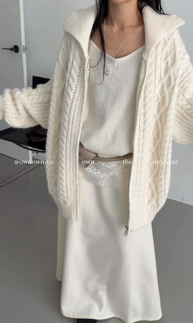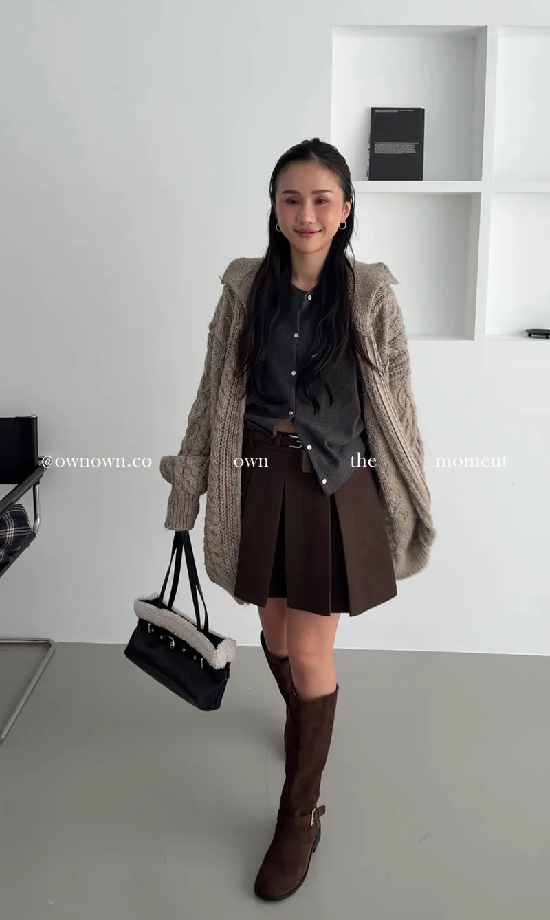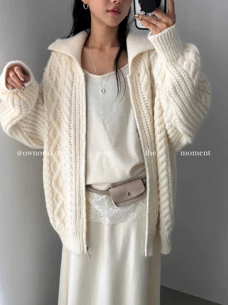 隨便穿都好看的鬆弛感 混羊毛麻花拉鏈外套2colors
