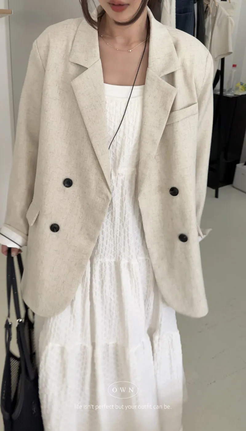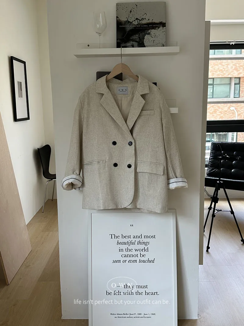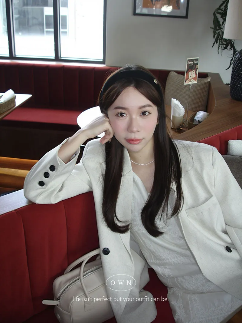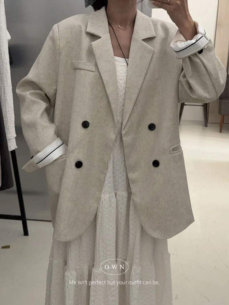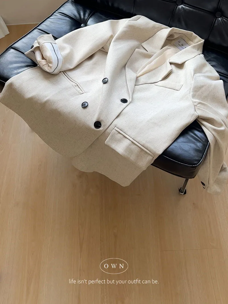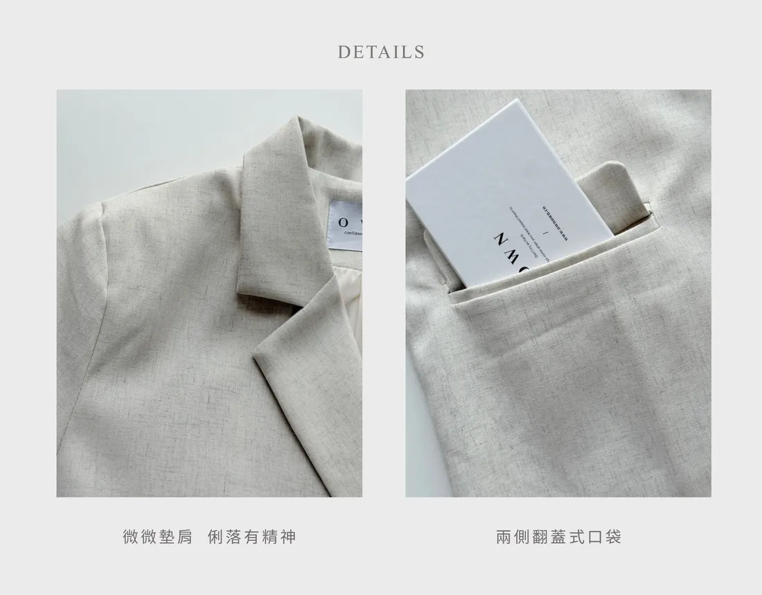 歐膩pick!雙排釦麻織紋理長袖西外