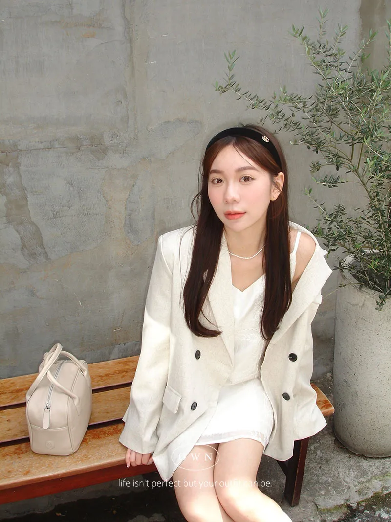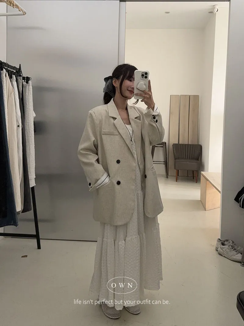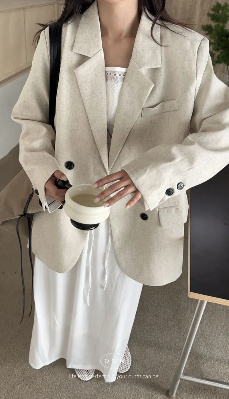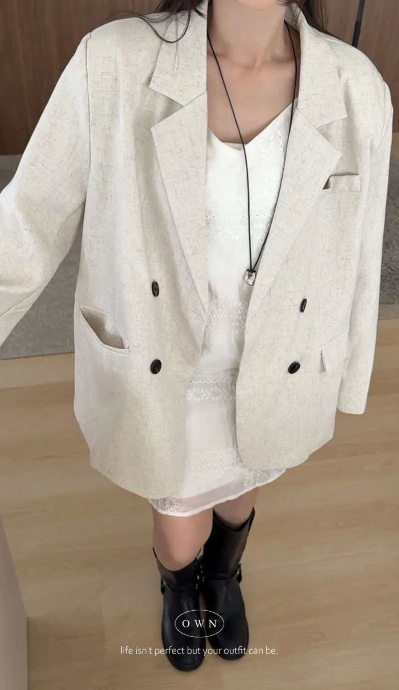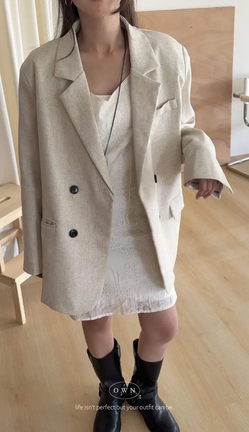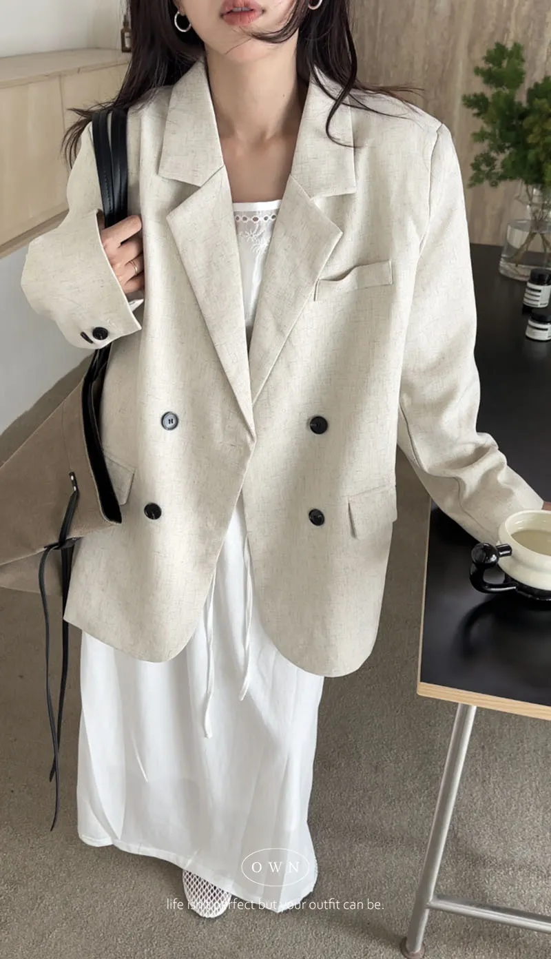 歐膩pick!雙排釦麻織紋理長袖西外