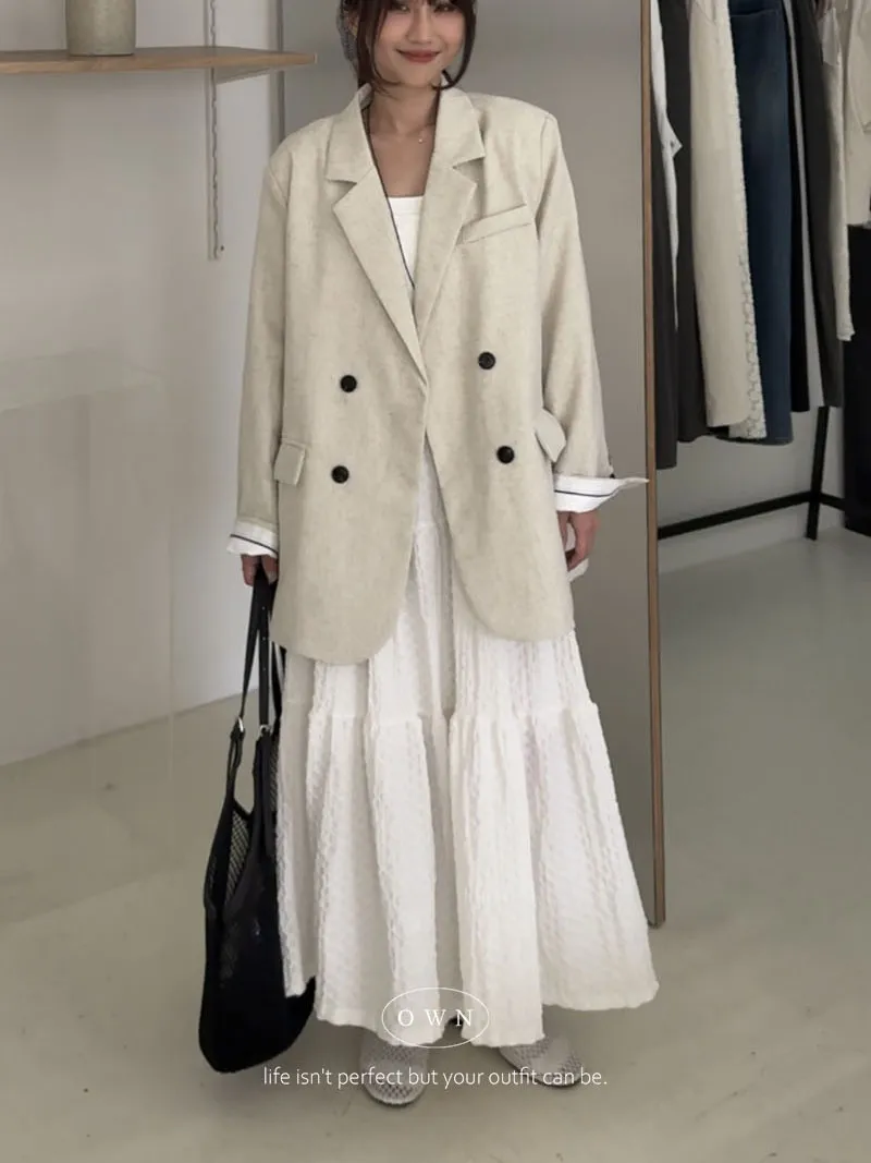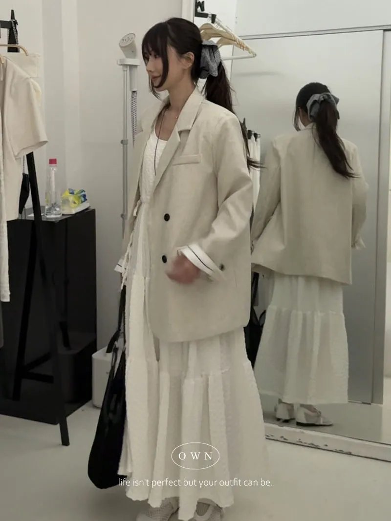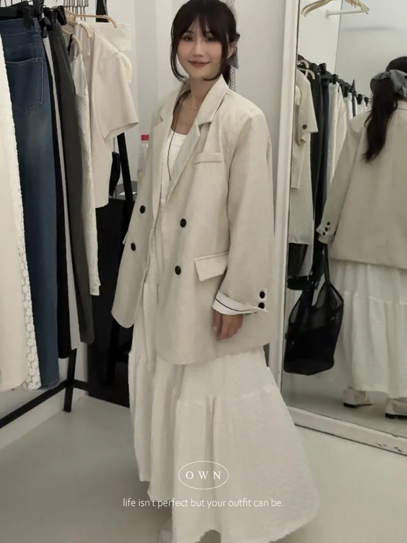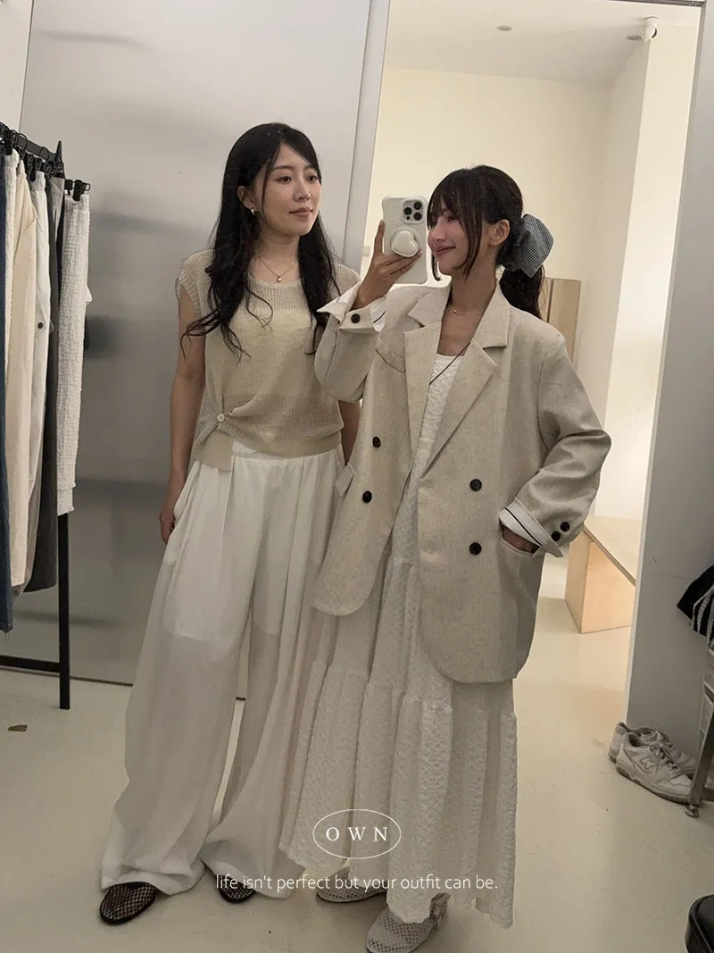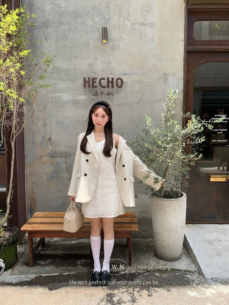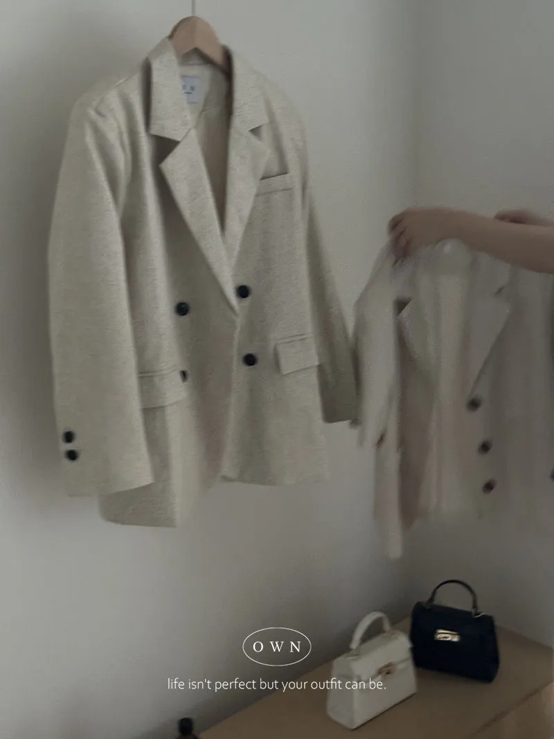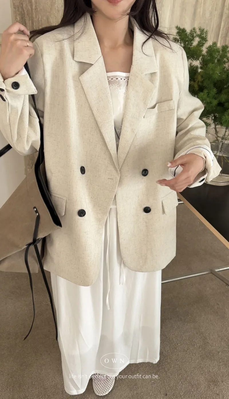 歐膩pick!雙排釦麻織紋理長袖西外