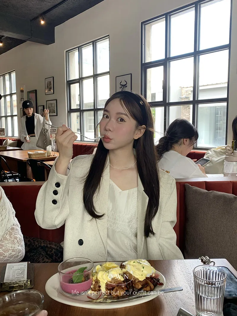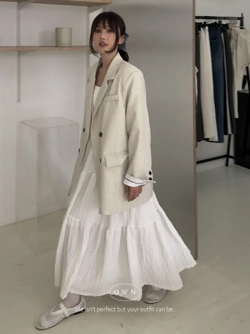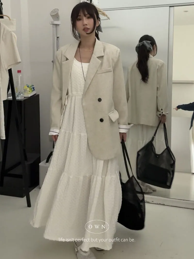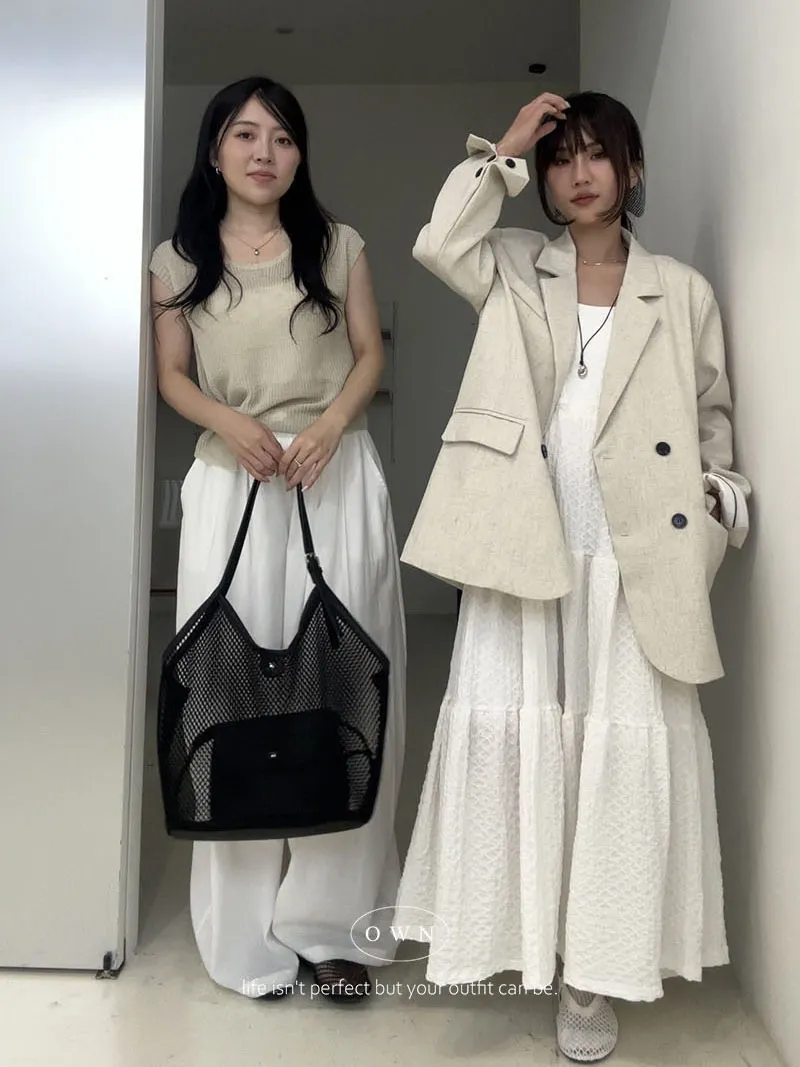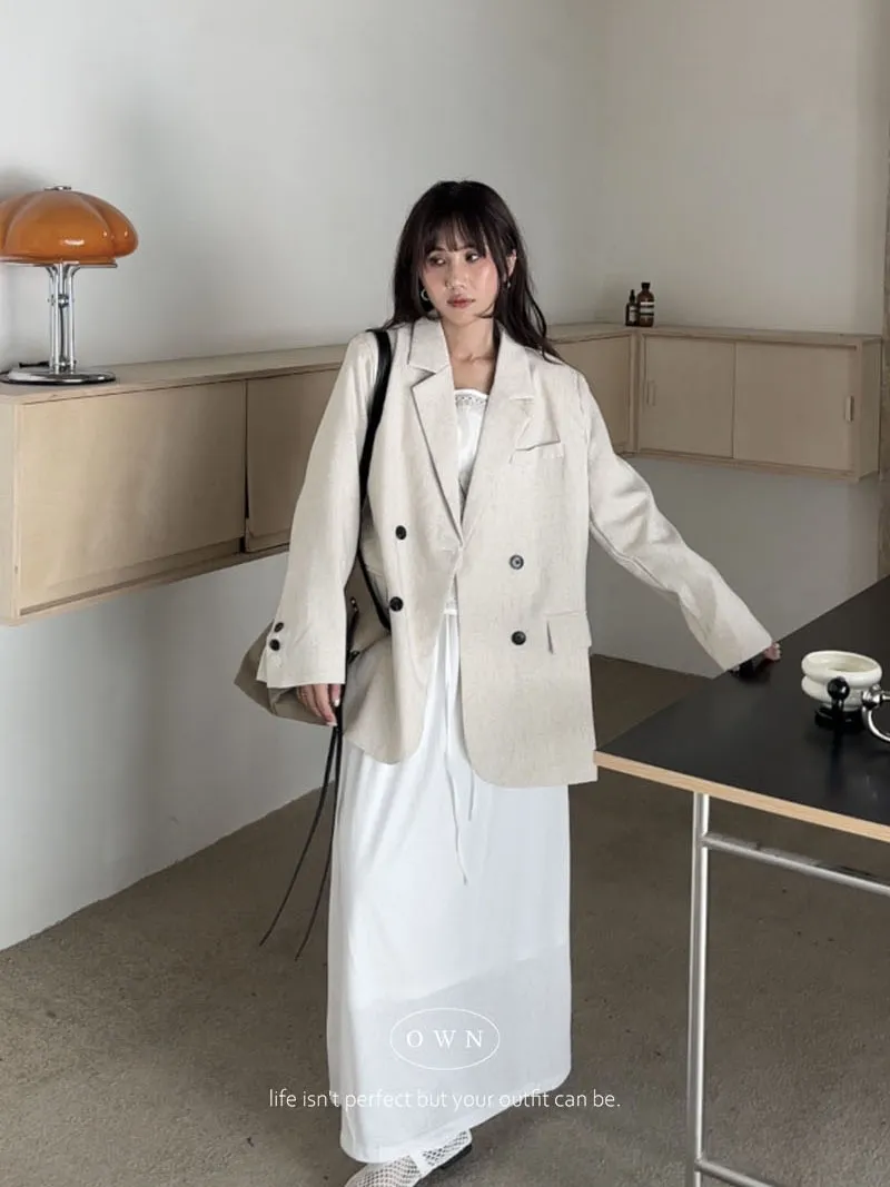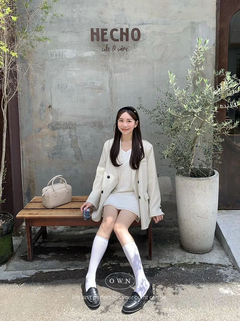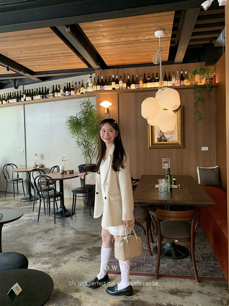 歐膩pick!雙排釦麻織紋理長袖西外
