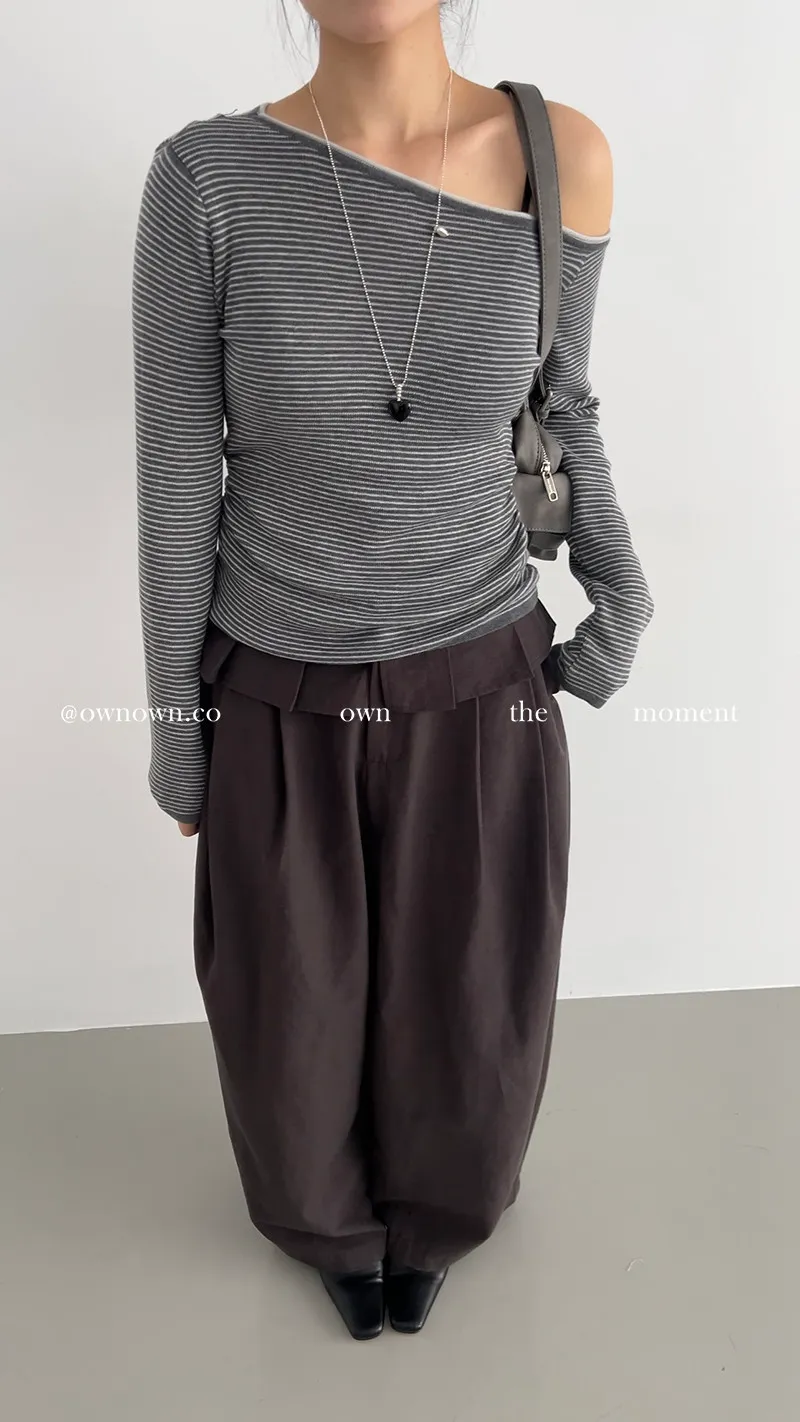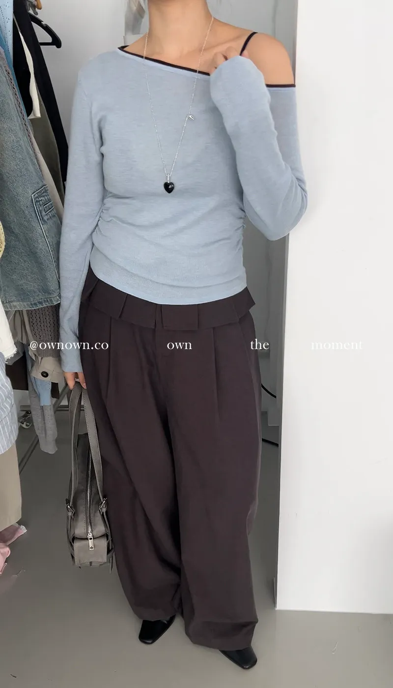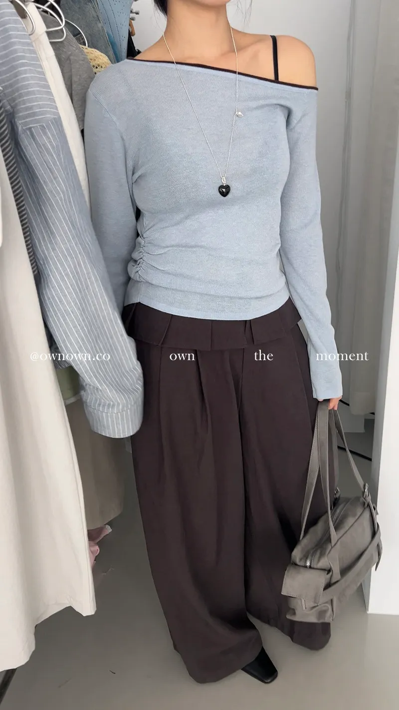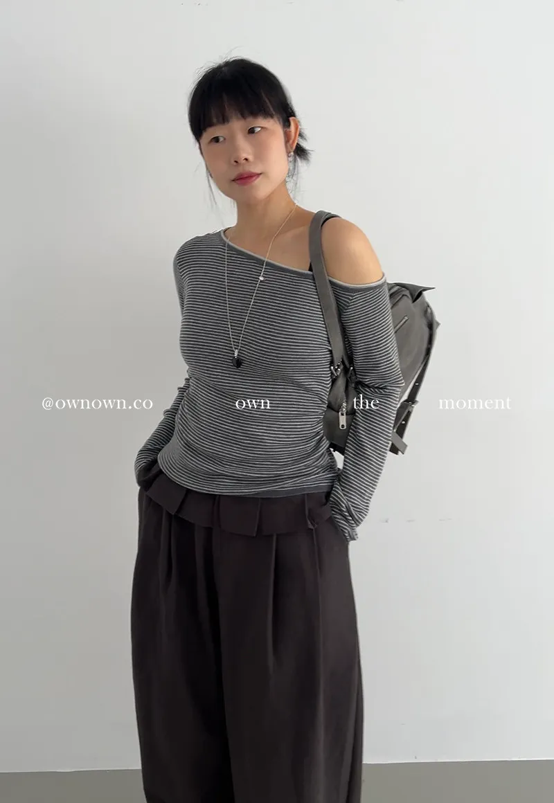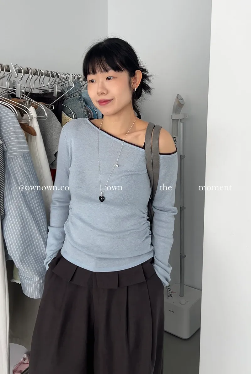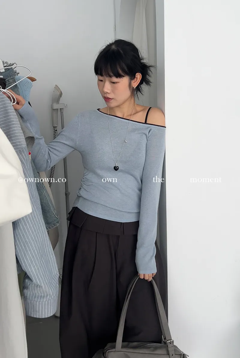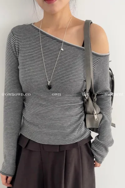 小露香肩斜肩上衣 2colors