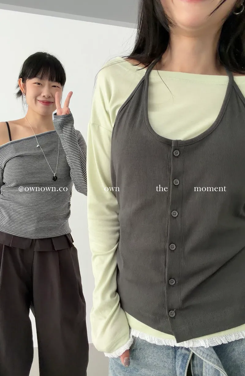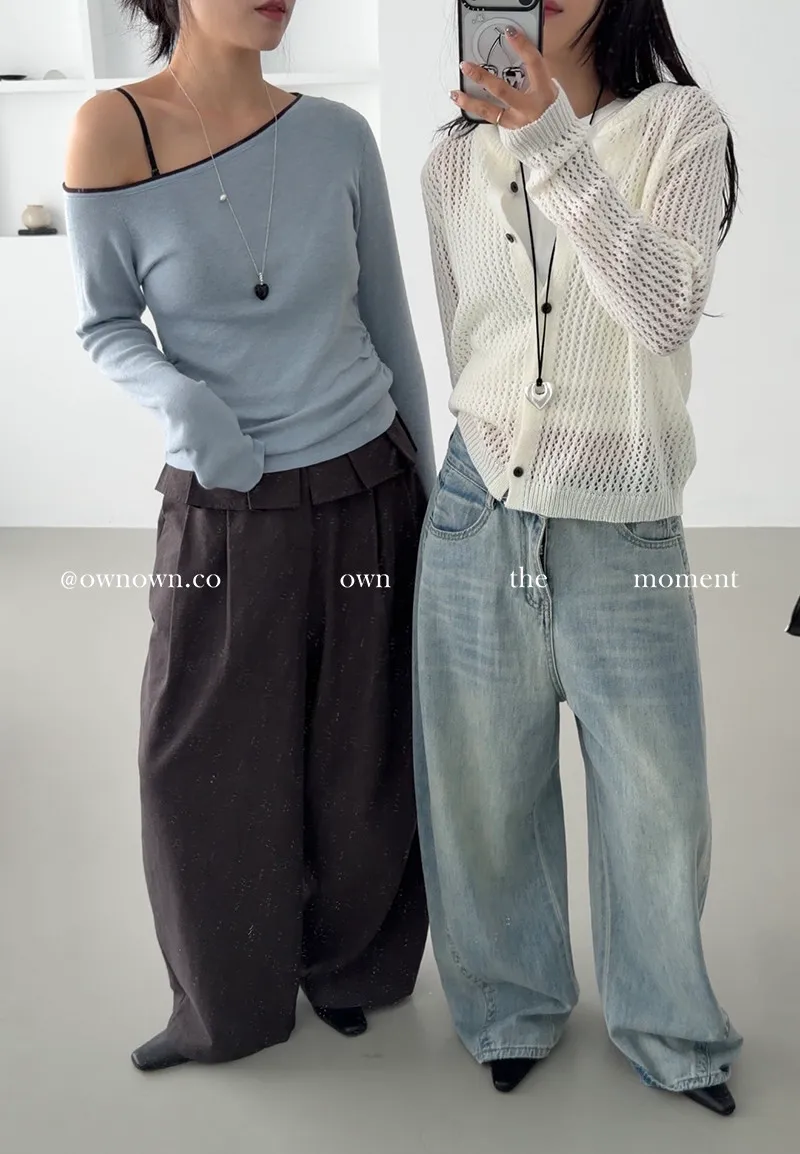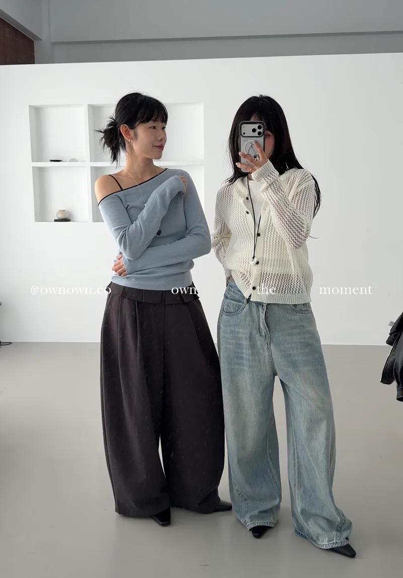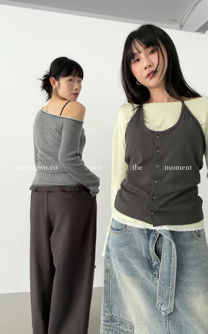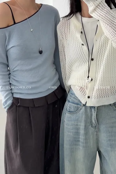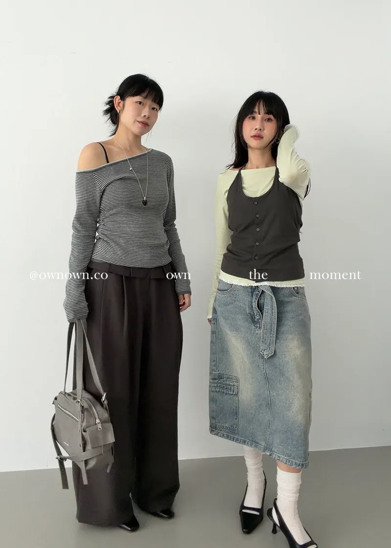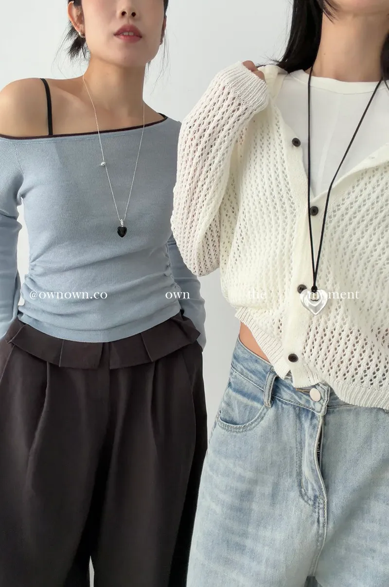 小露香肩斜肩上衣 2colors