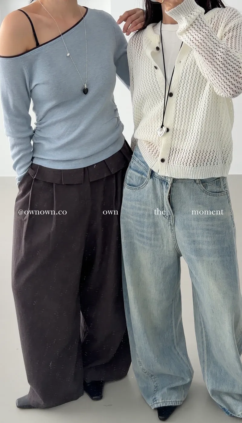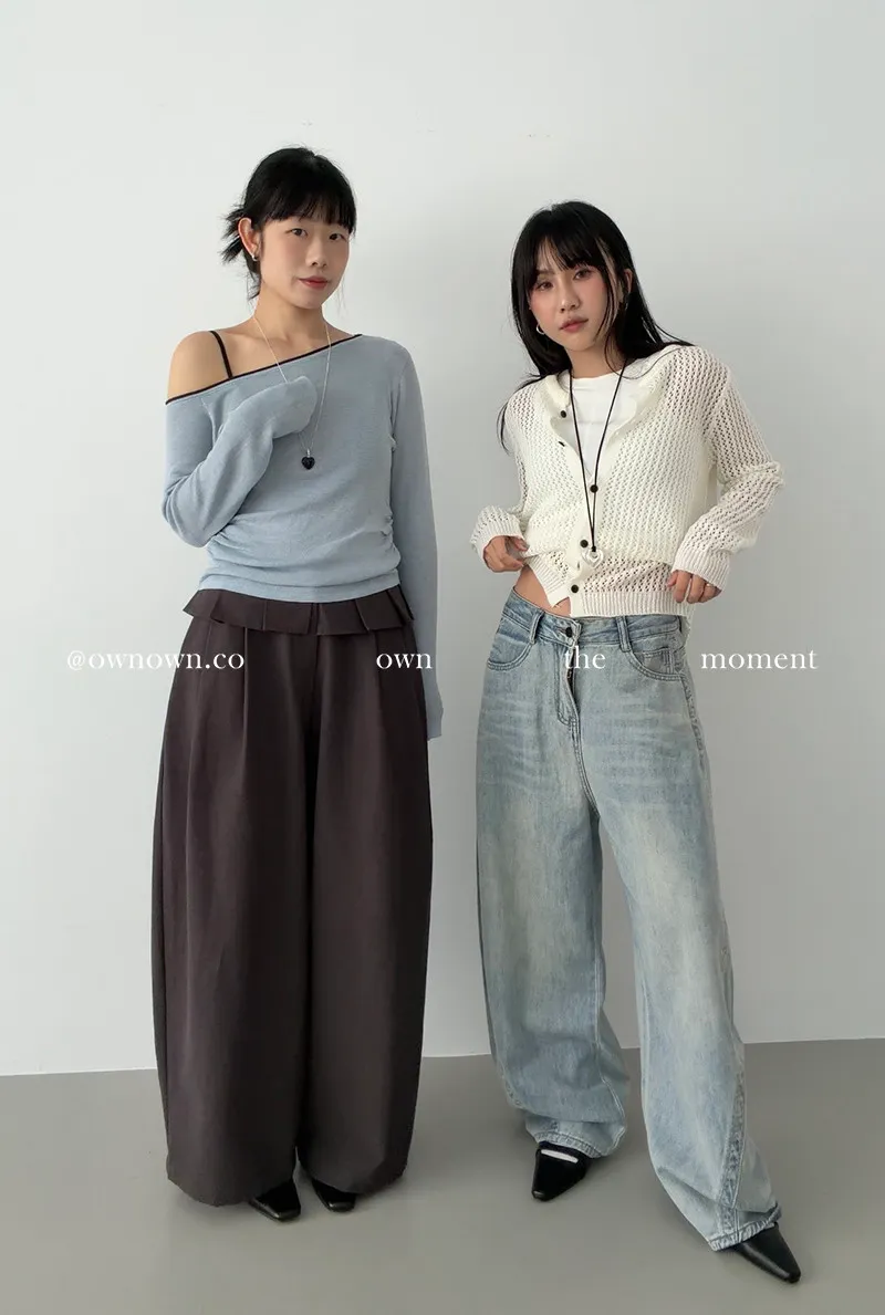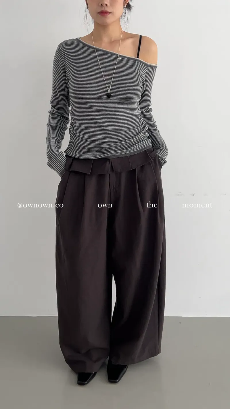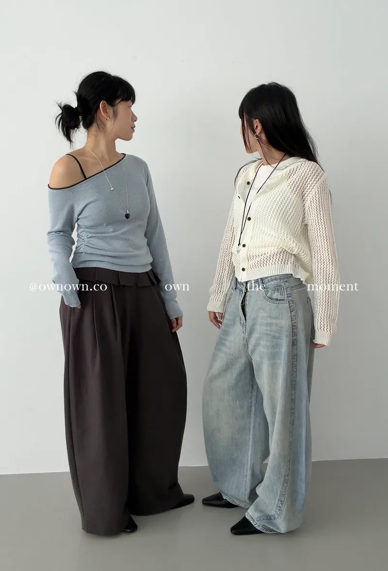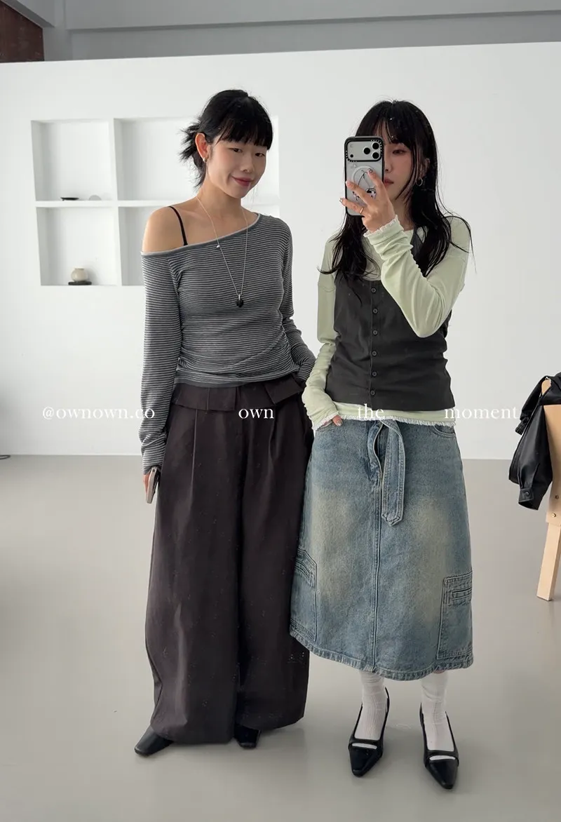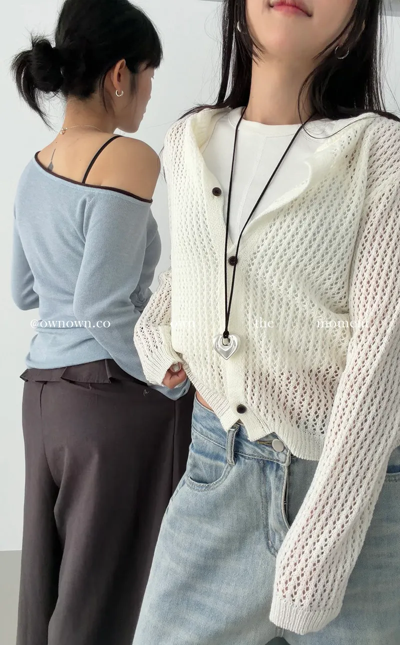 小露香肩斜肩上衣 2colors