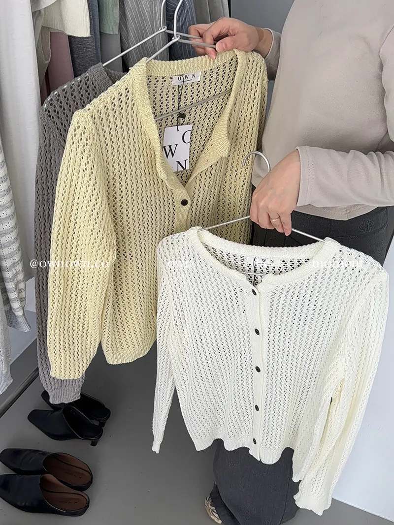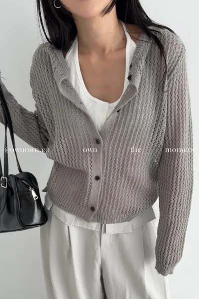 小心機簍空針織開襟上衣 4colors