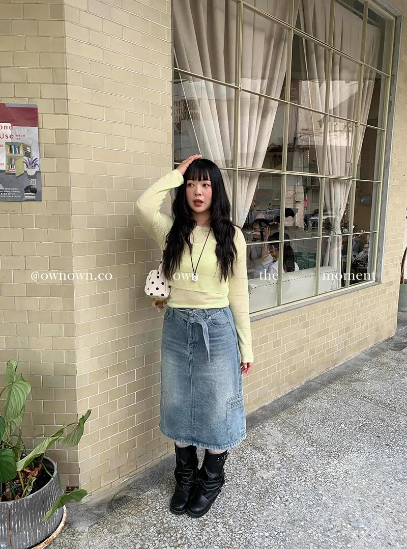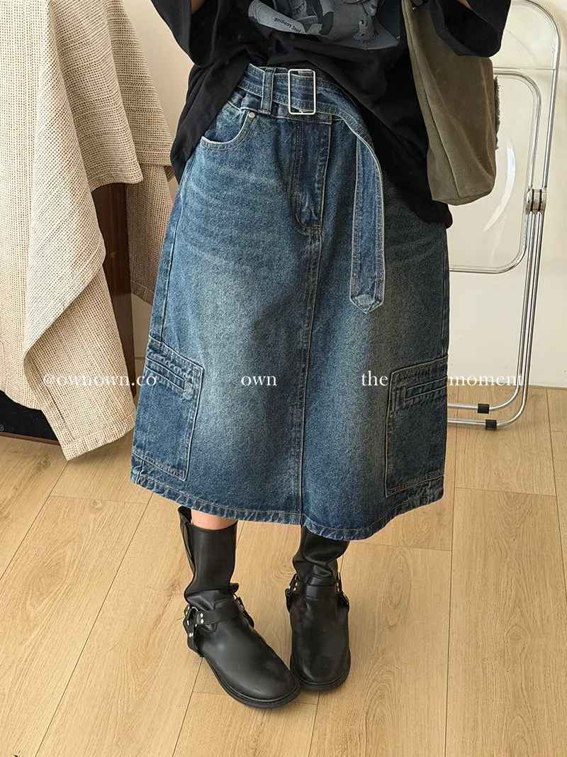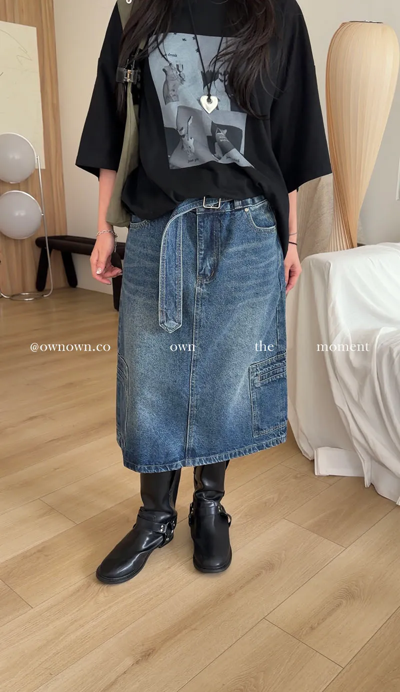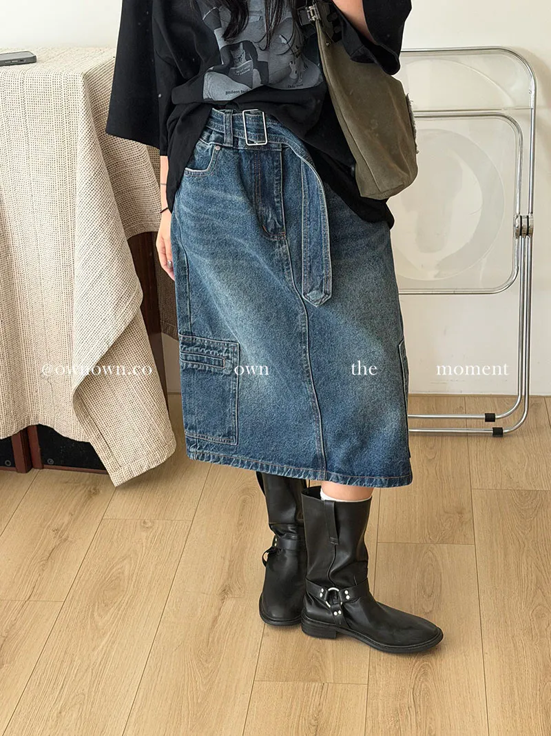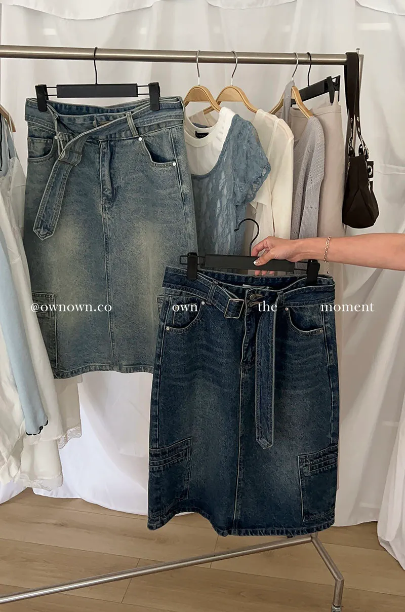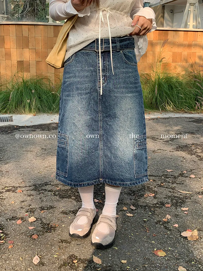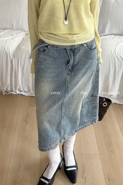 隨性中有重點 牛仔中裙(附腰帶) 2colors M/L