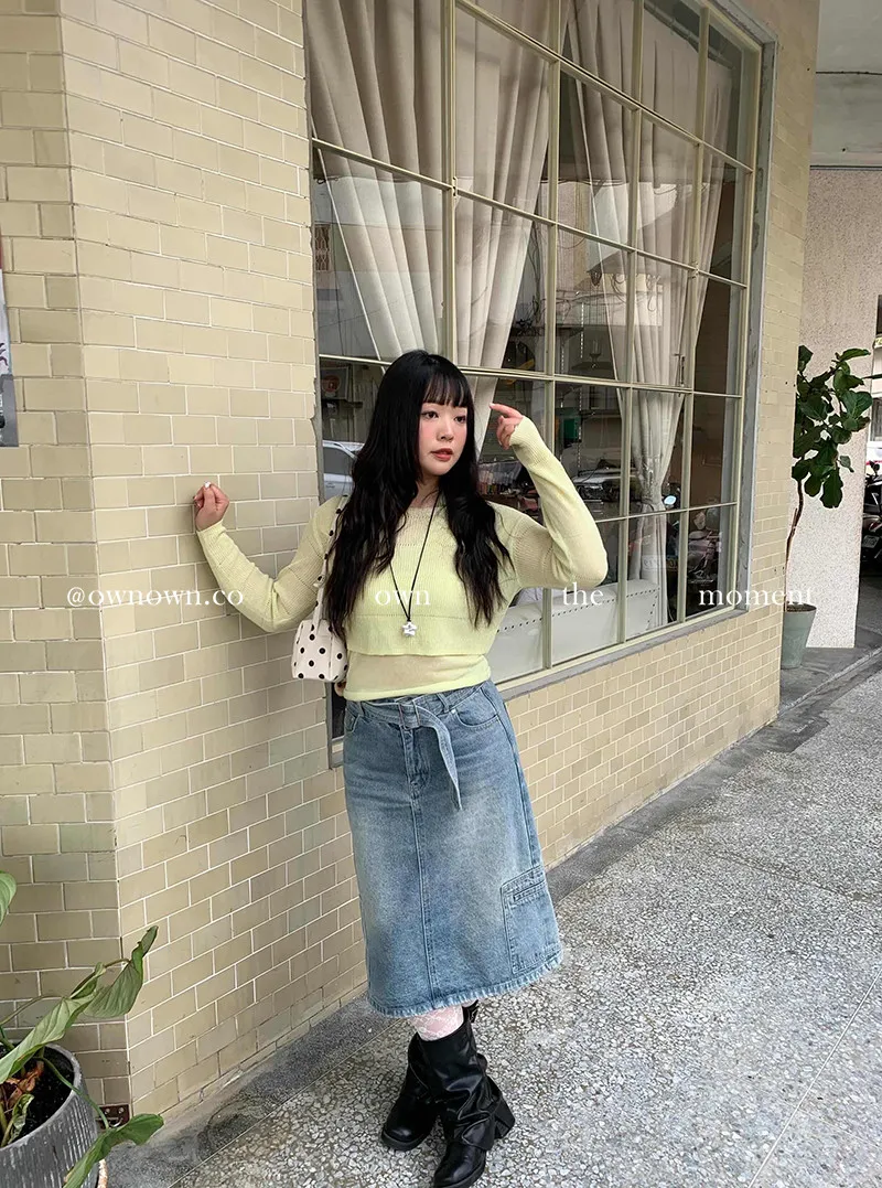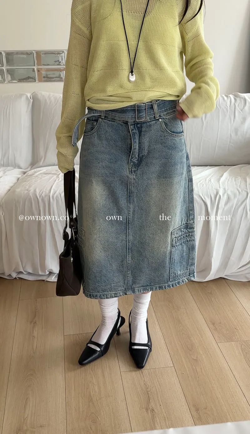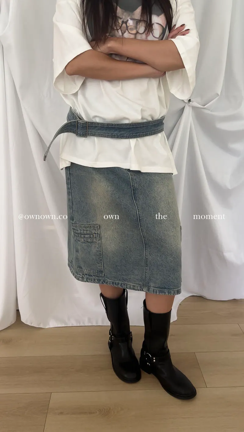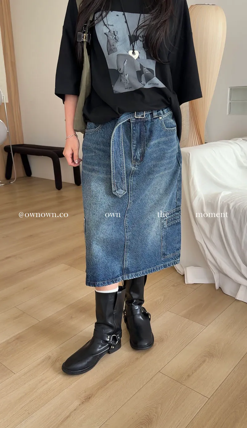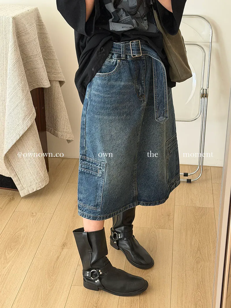 隨性中有重點 牛仔中裙(附腰帶) 2colors M/L