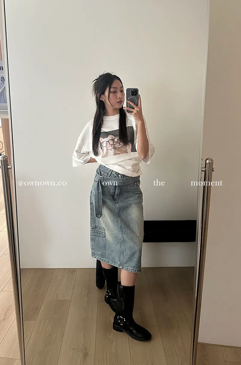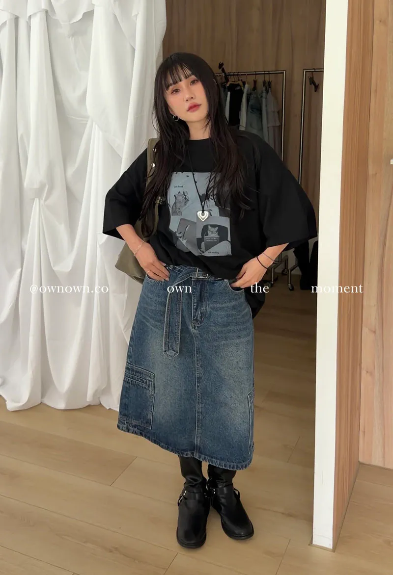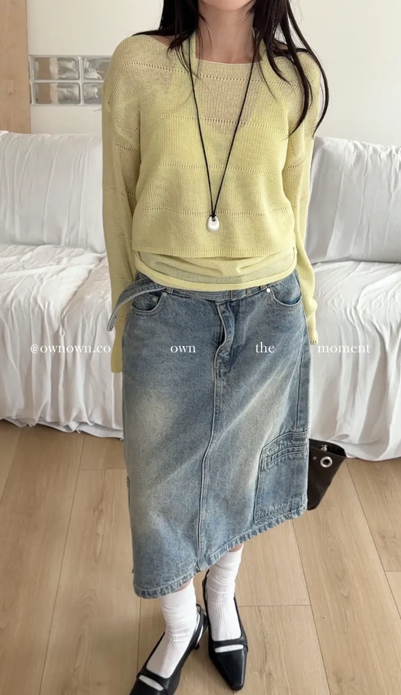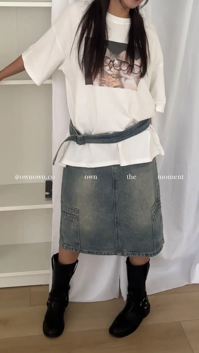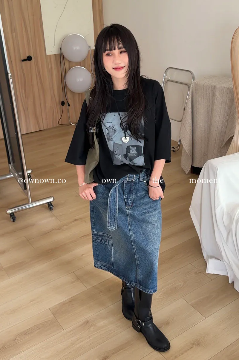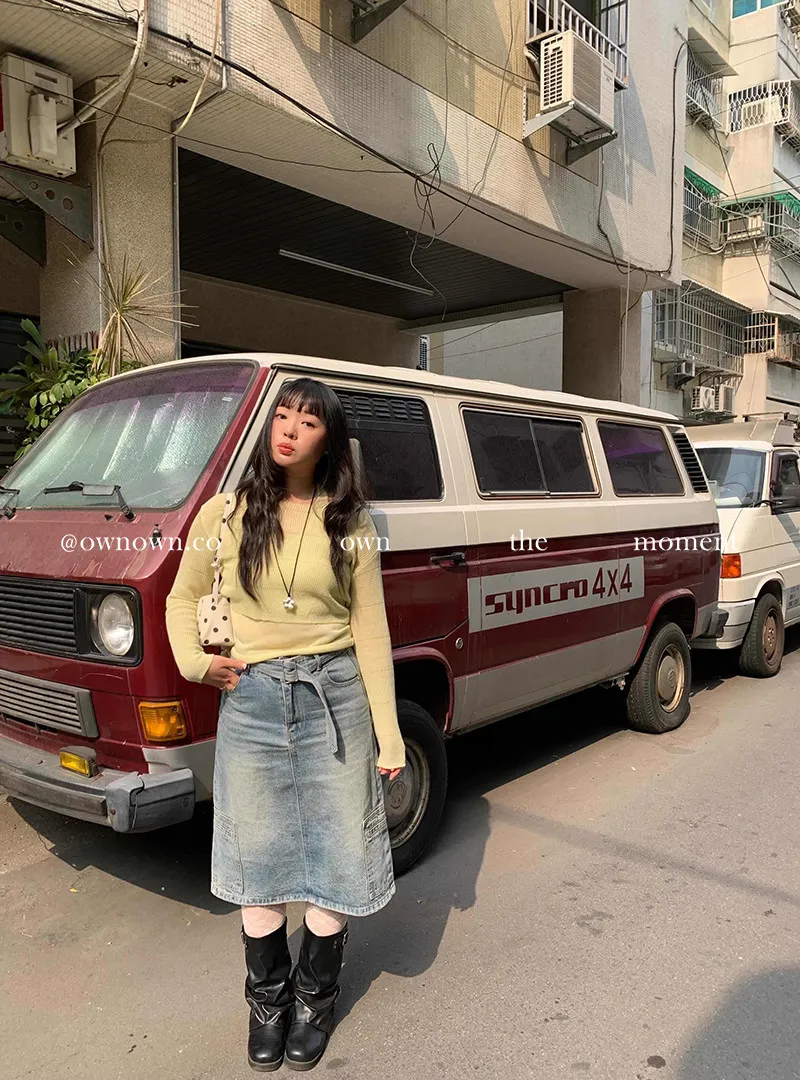 隨性中有重點 牛仔中裙(附腰帶) 2colors M/L
