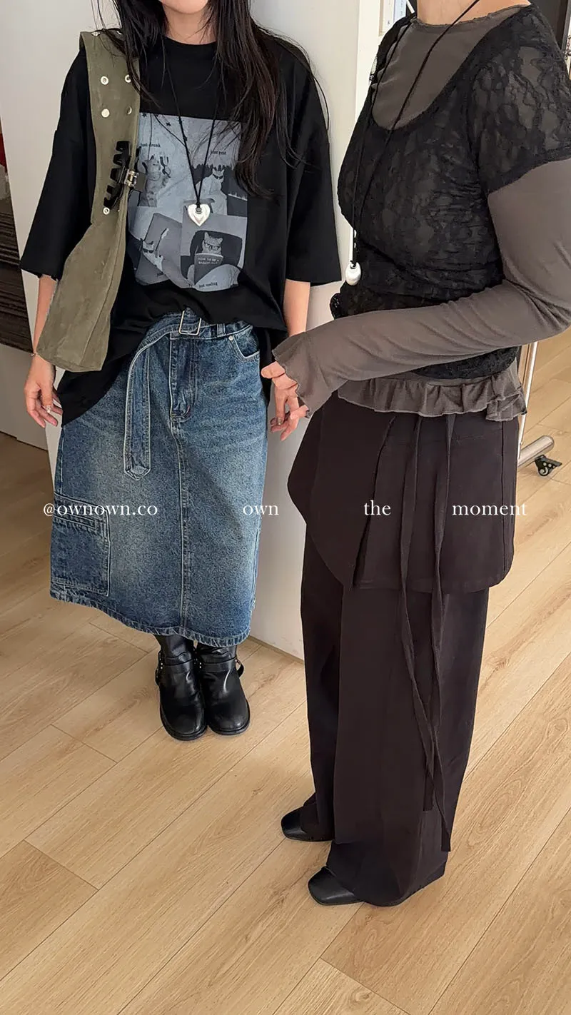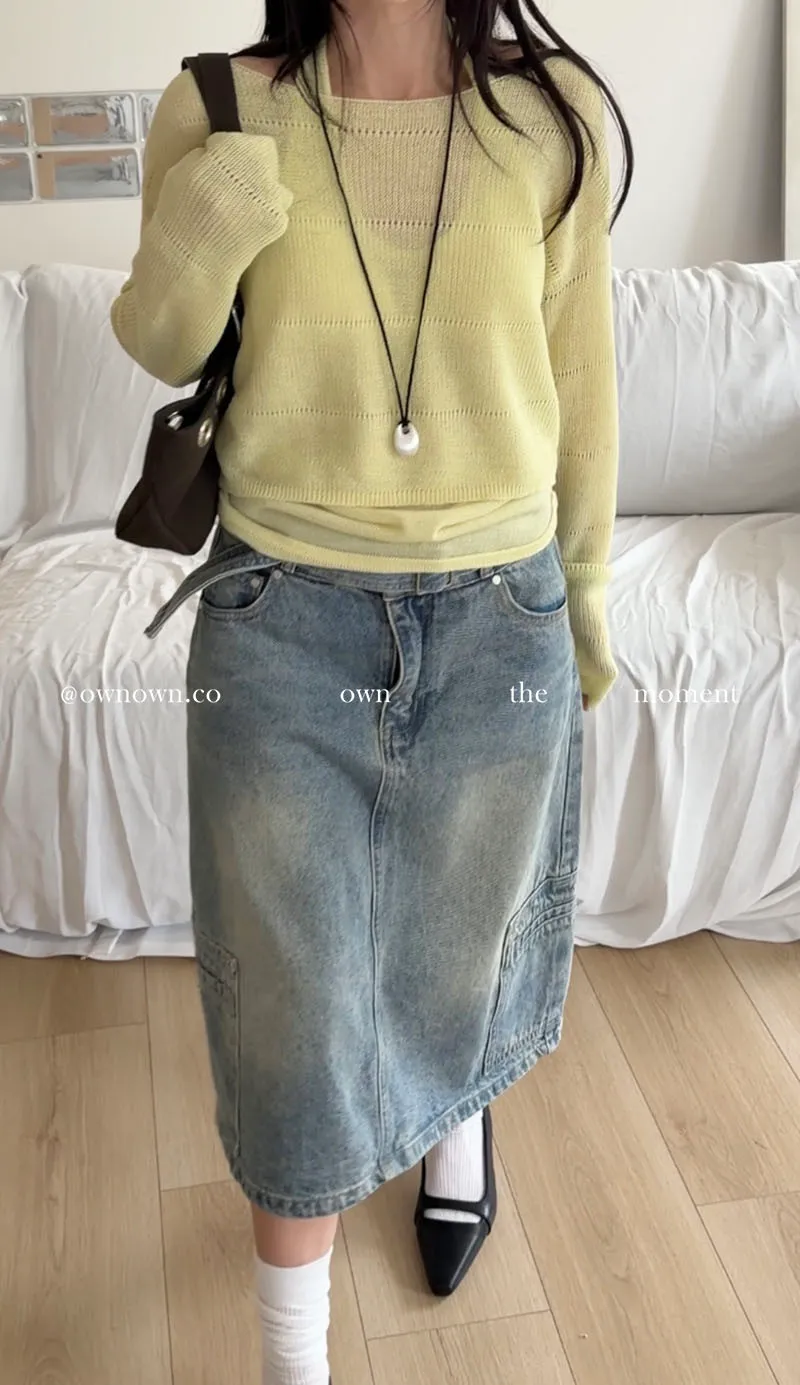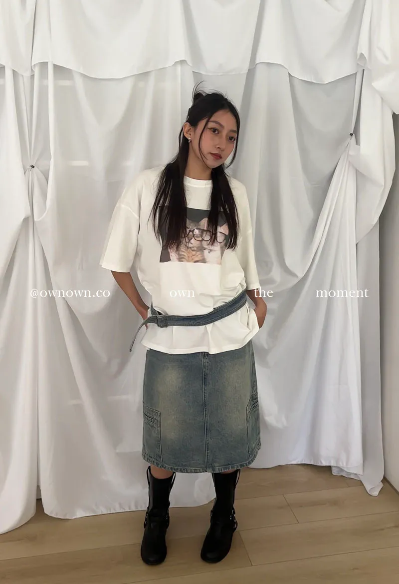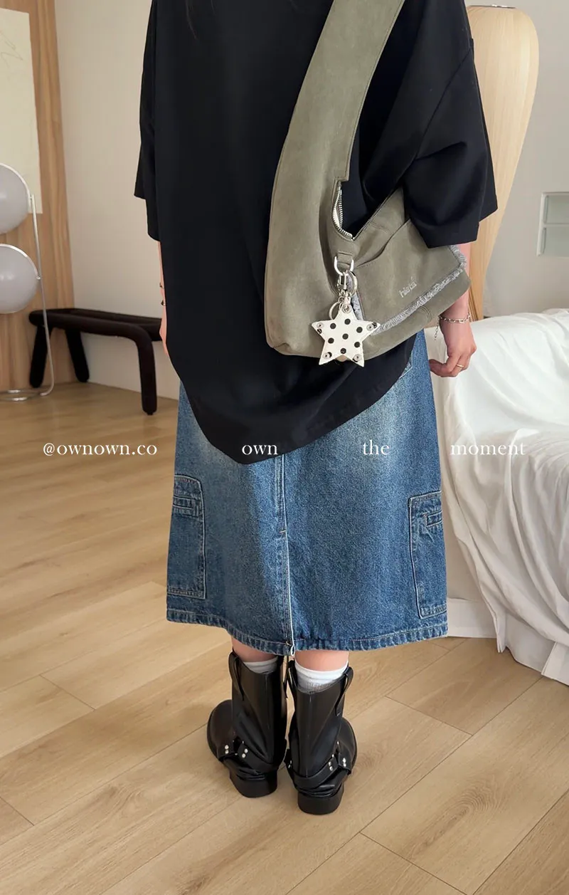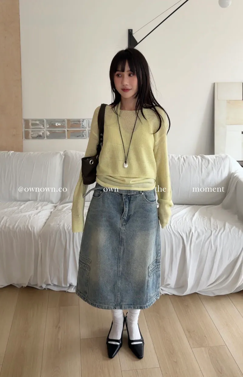 隨性中有重點 牛仔中裙(附腰帶) 2colors M/L