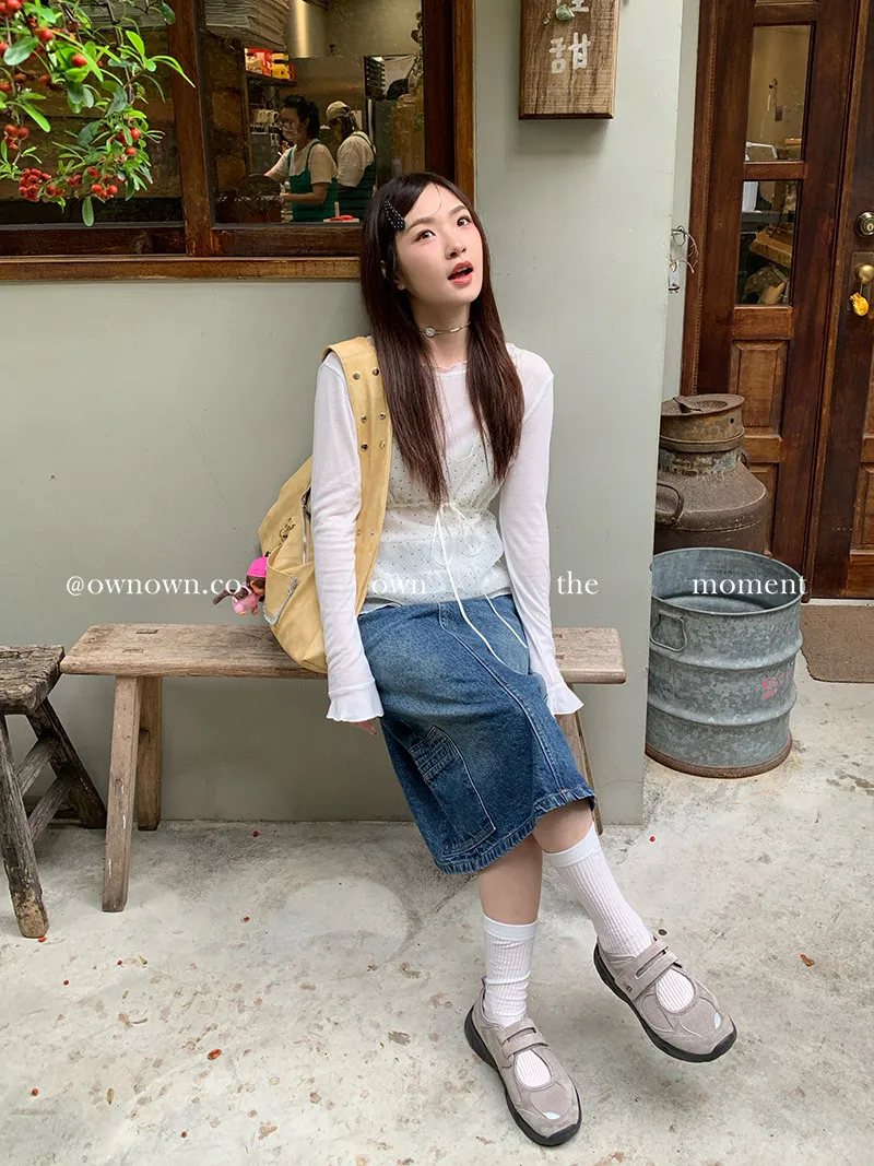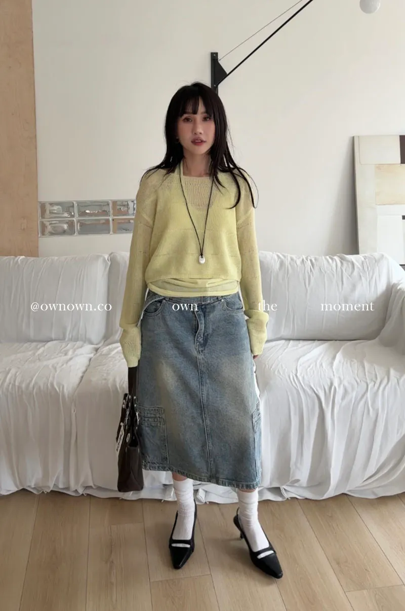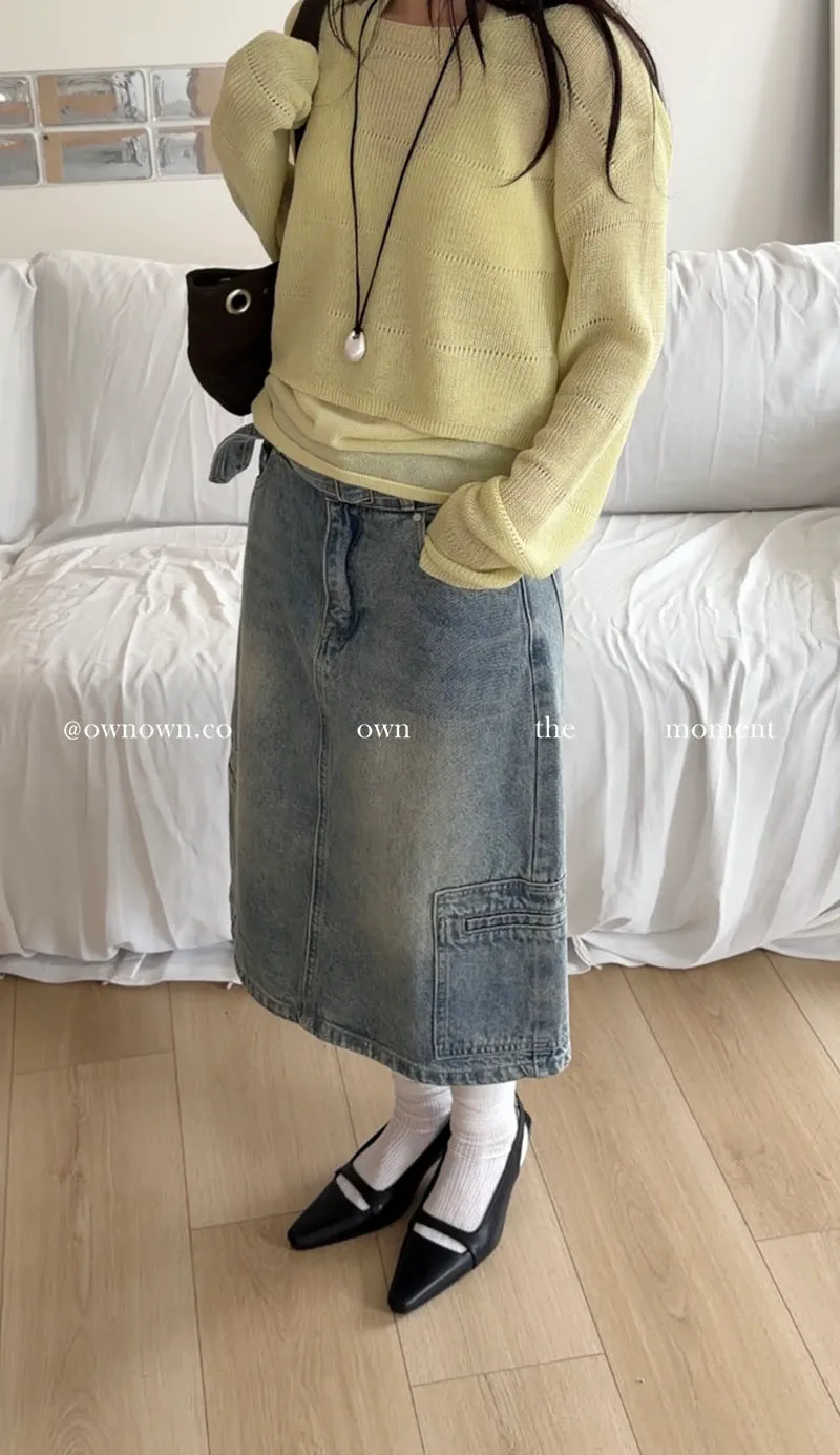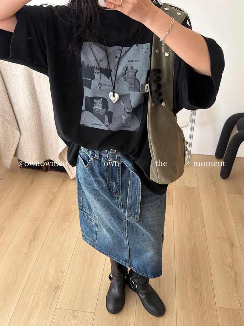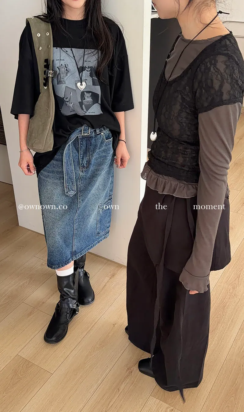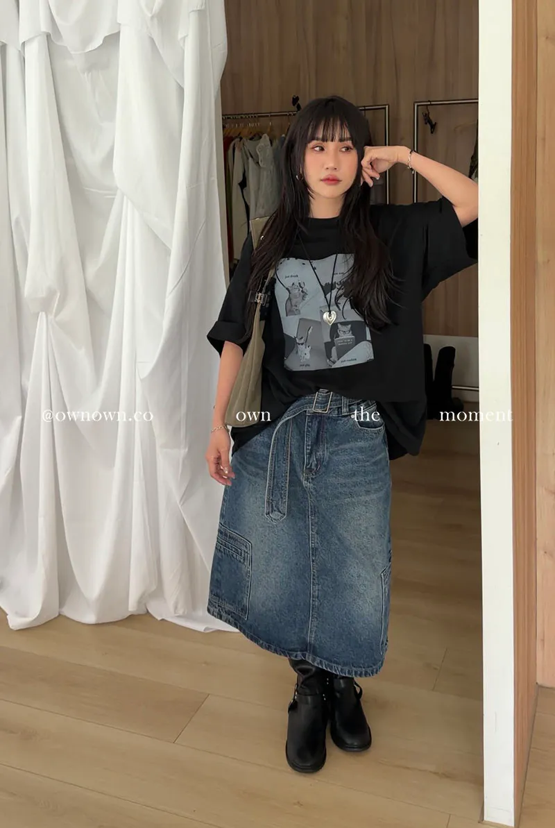 隨性中有重點 牛仔中裙(附腰帶) 2colors M/L