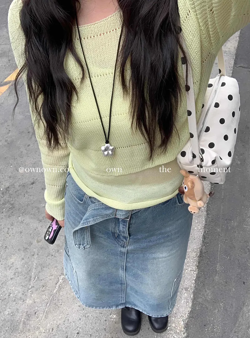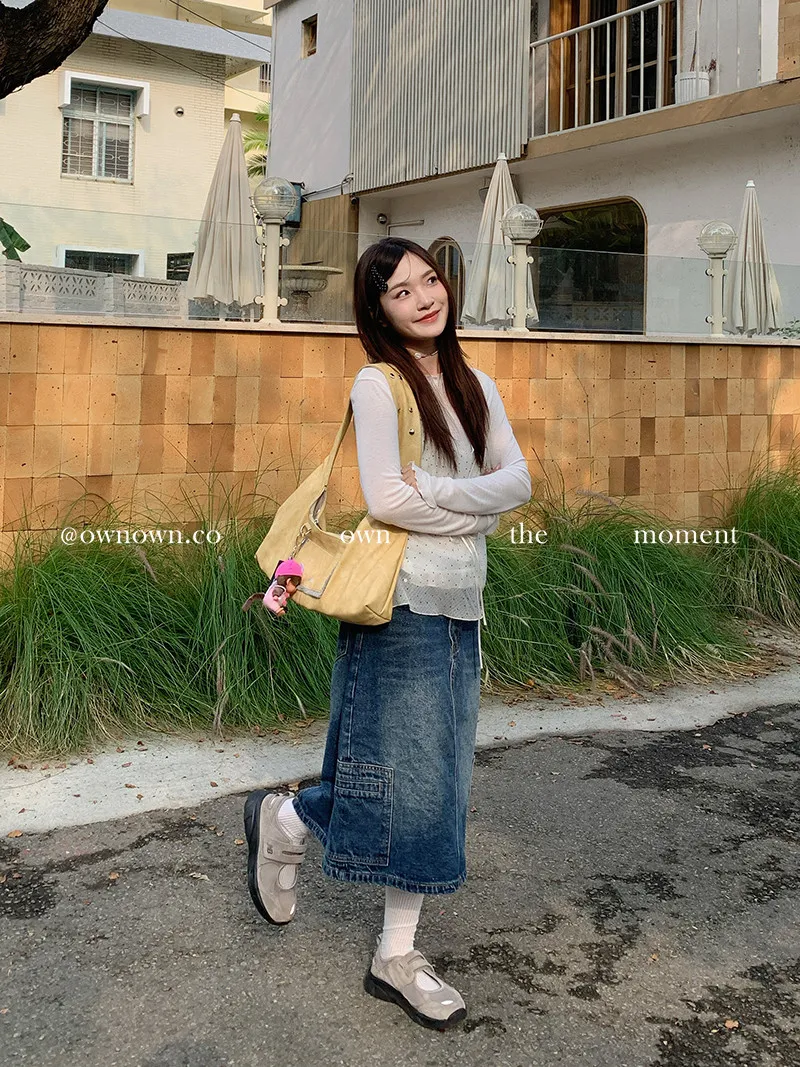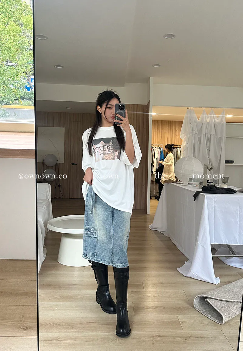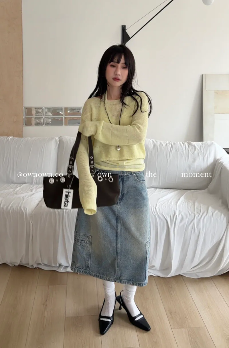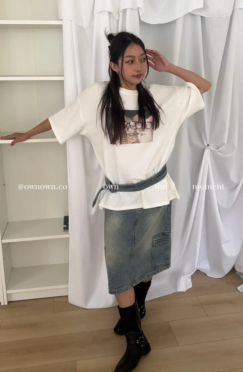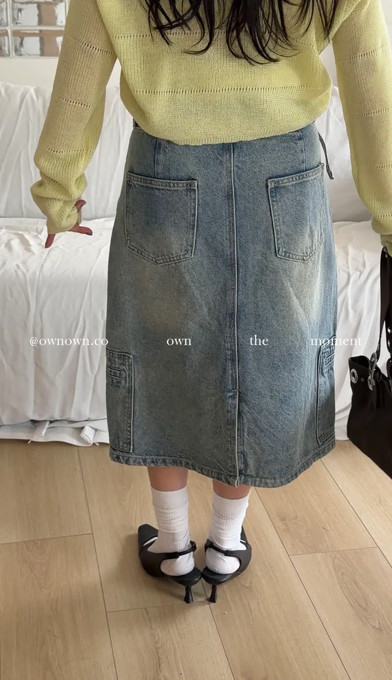 隨性中有重點 牛仔中裙(附腰帶) 2colors M/L