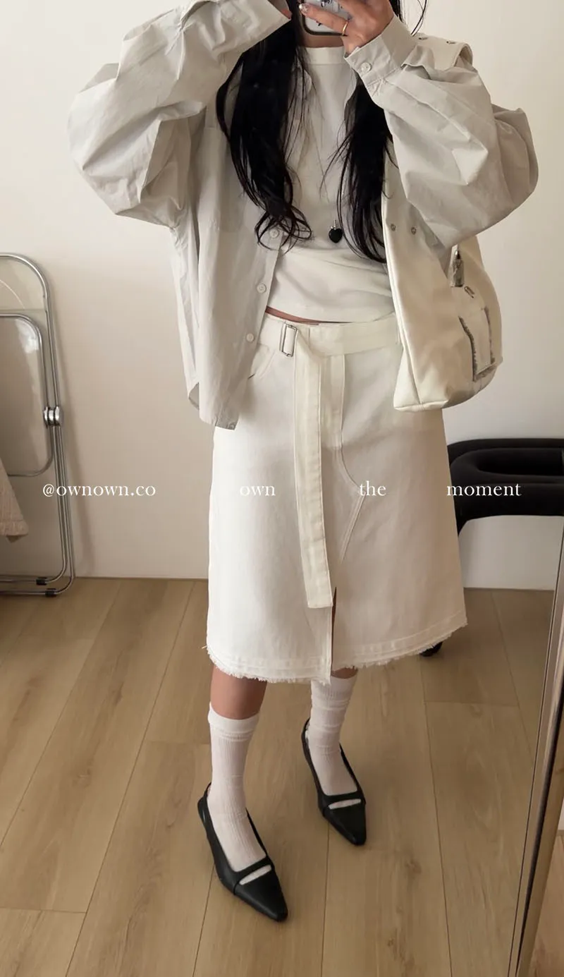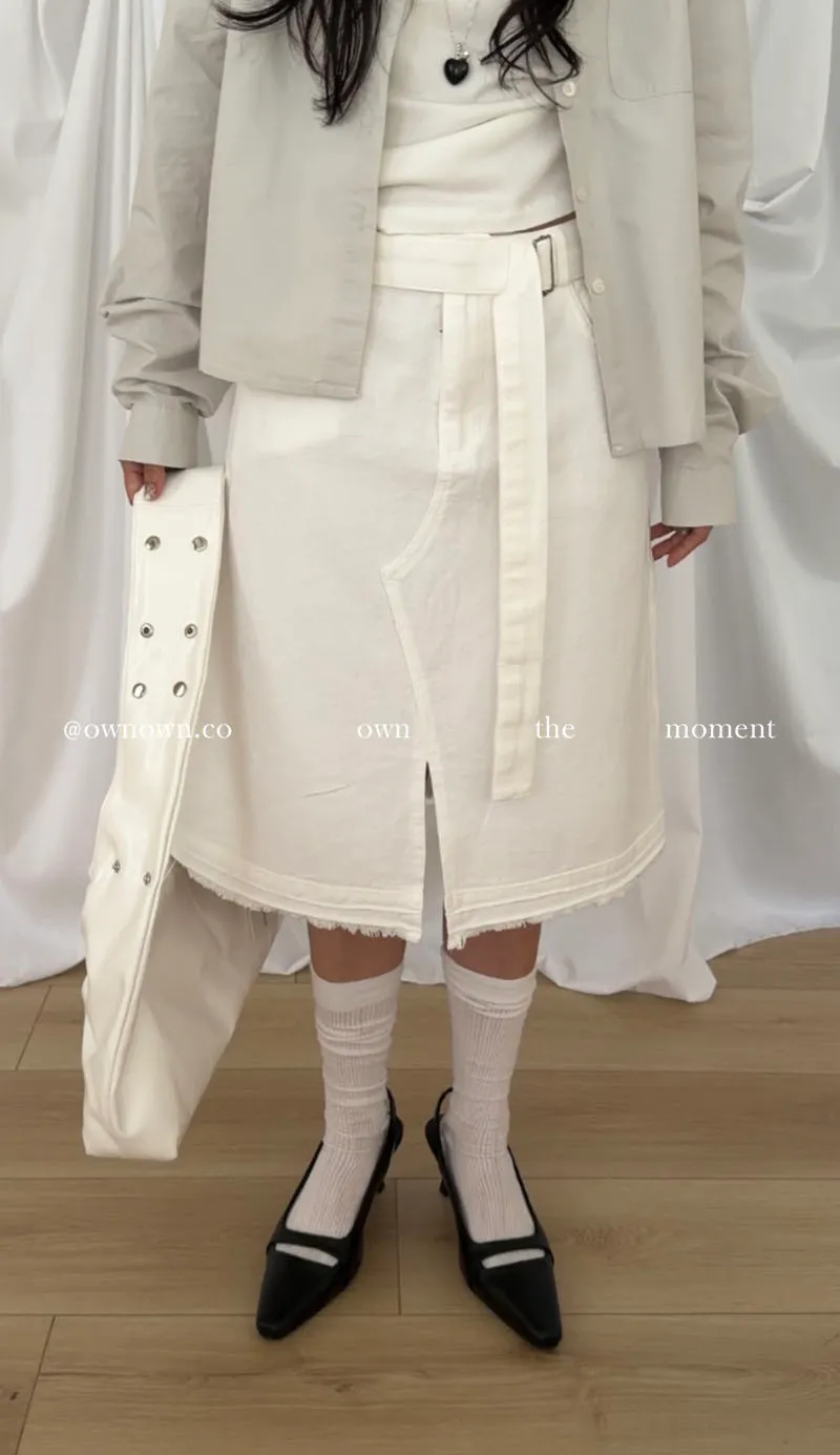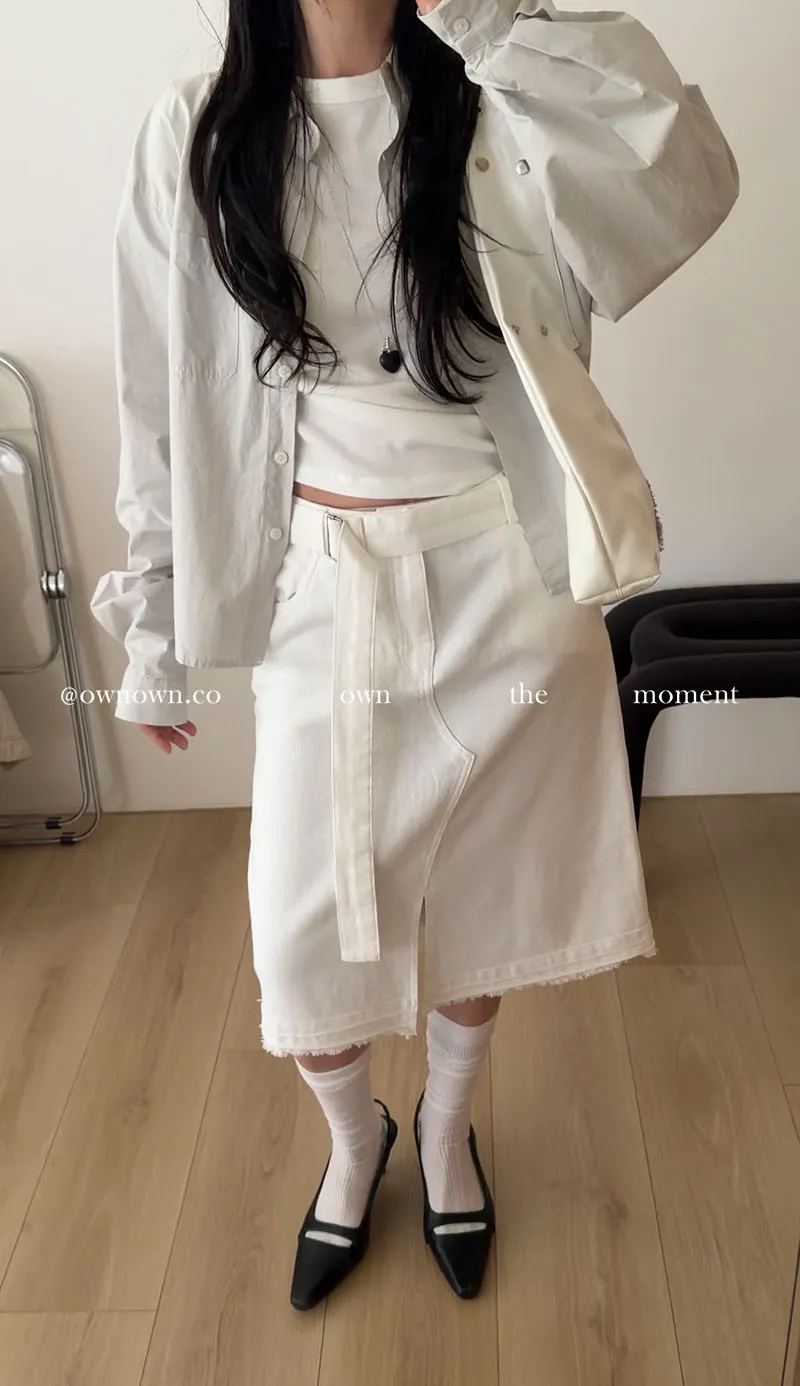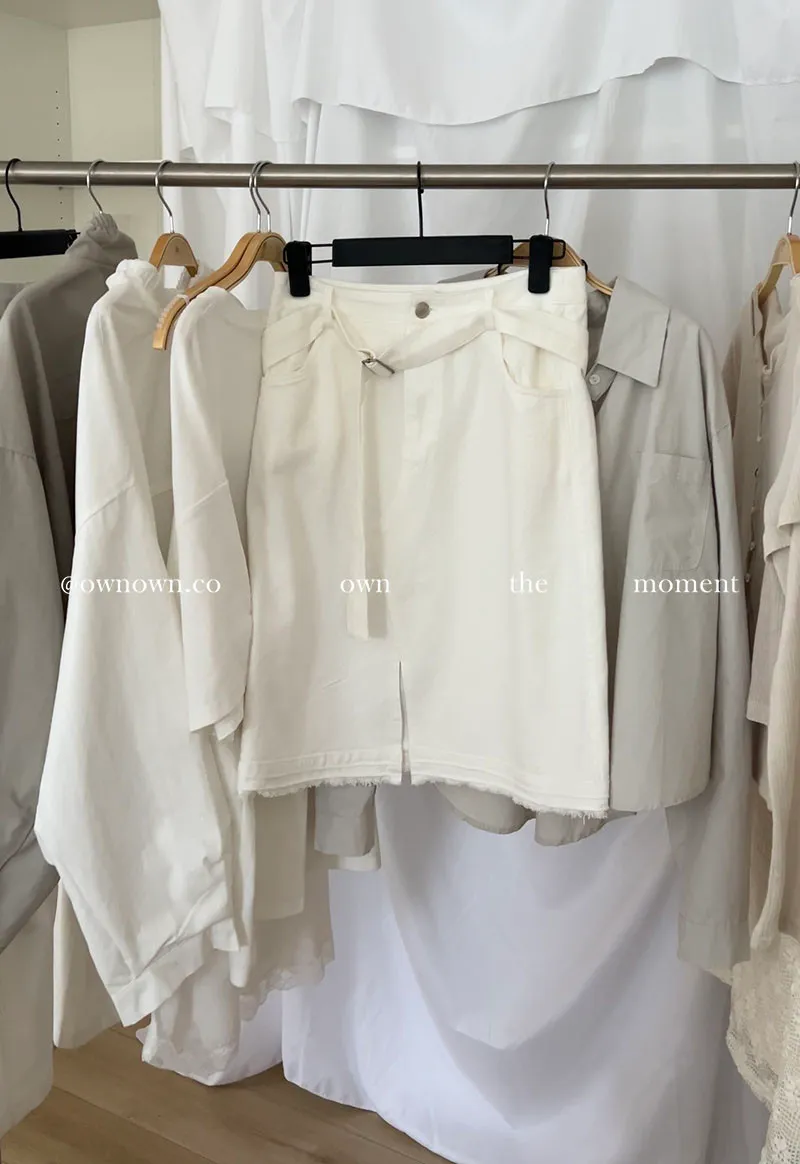 乾淨俐落 牛仔五分白裙(附腰帶) M/L