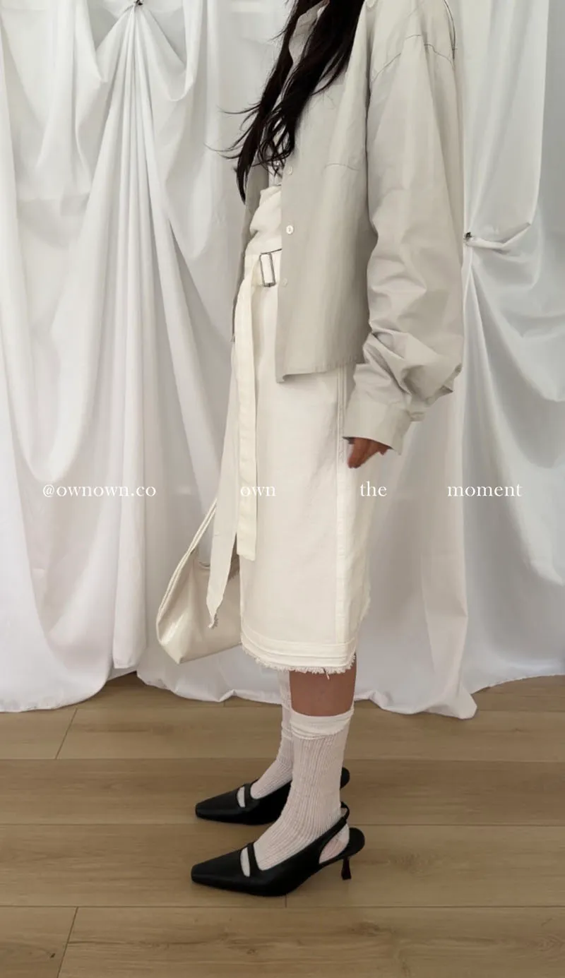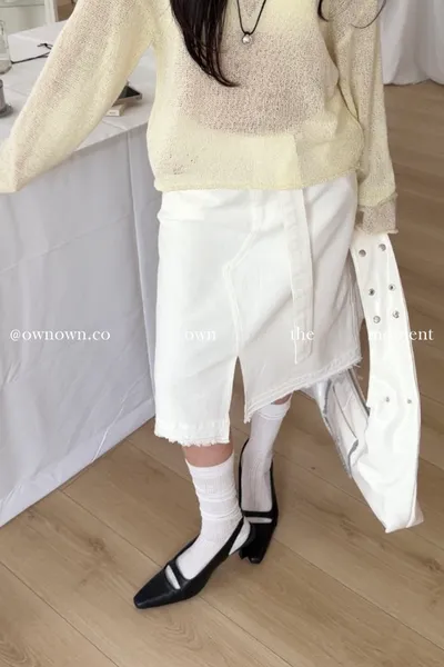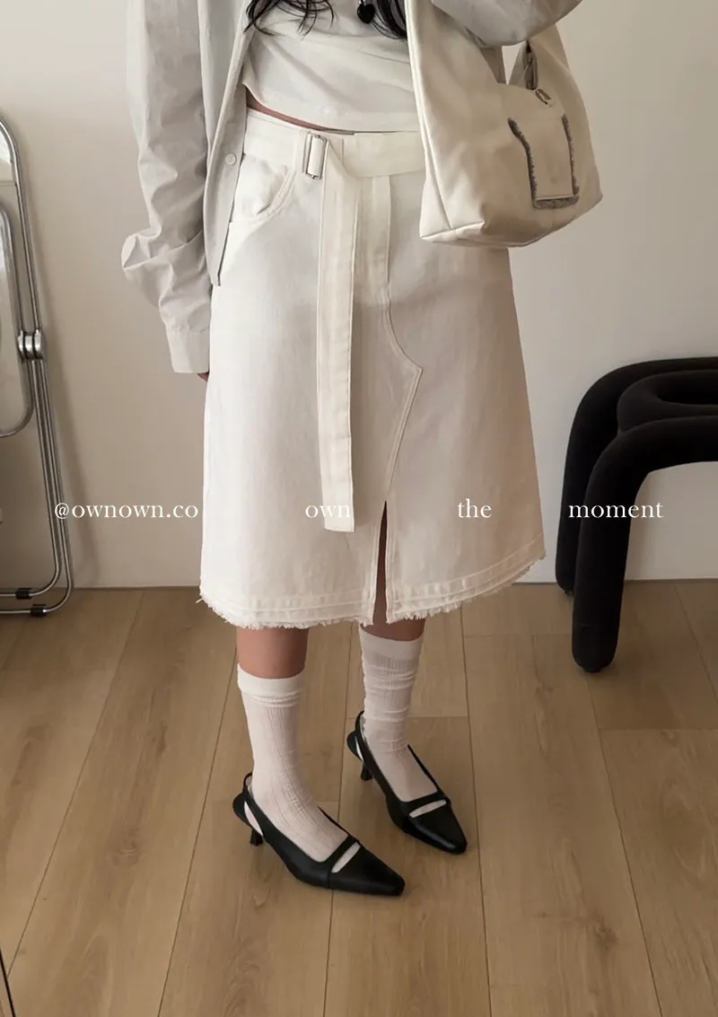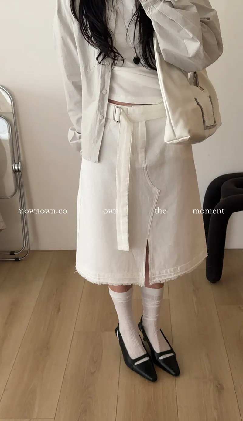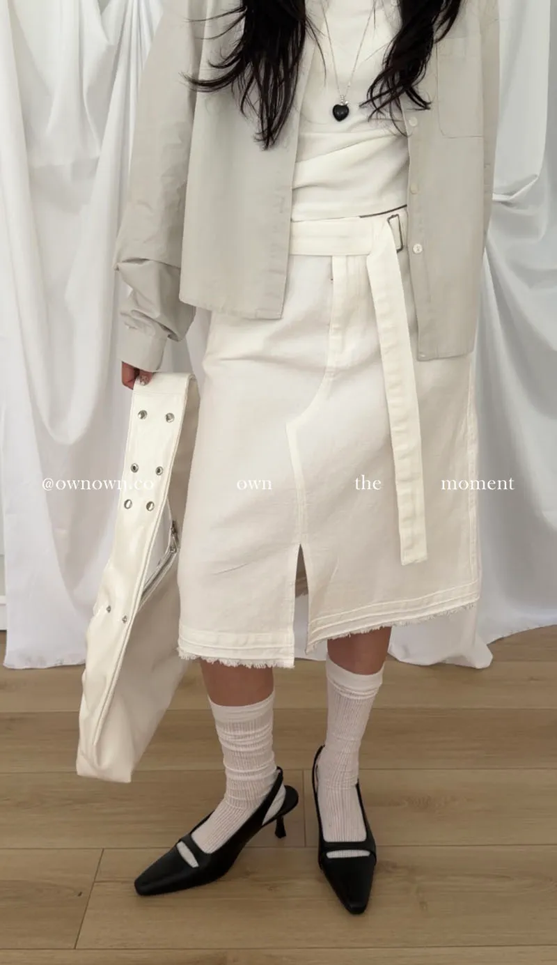 乾淨俐落 牛仔五分白裙(附腰帶) M/L