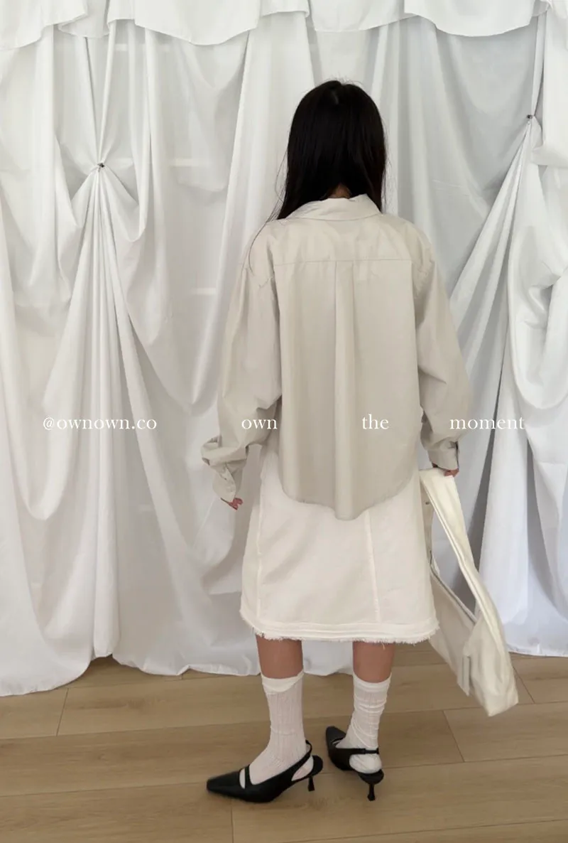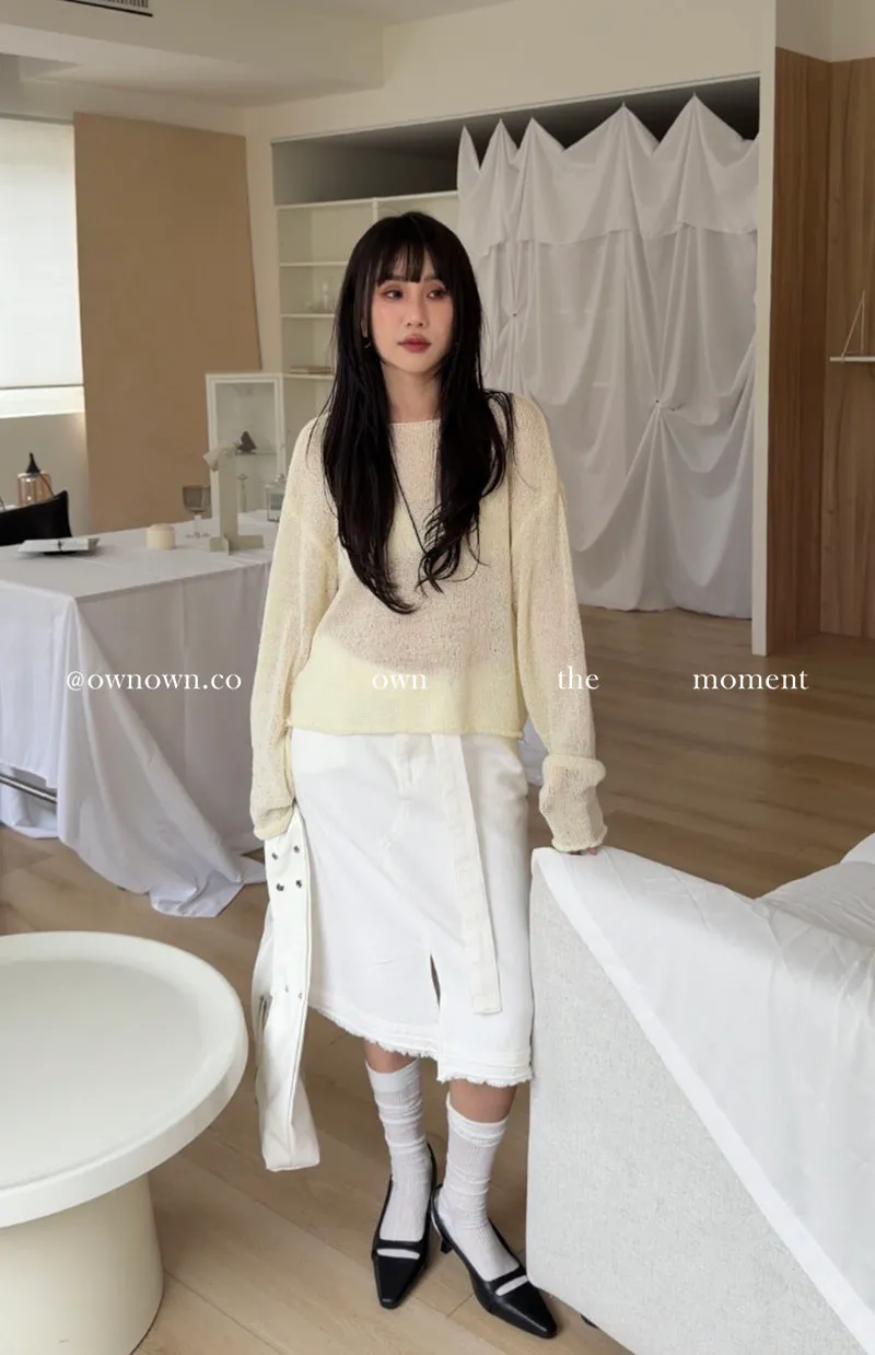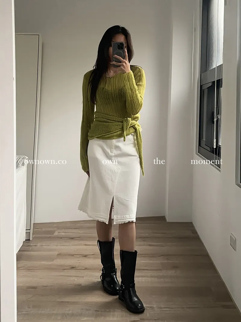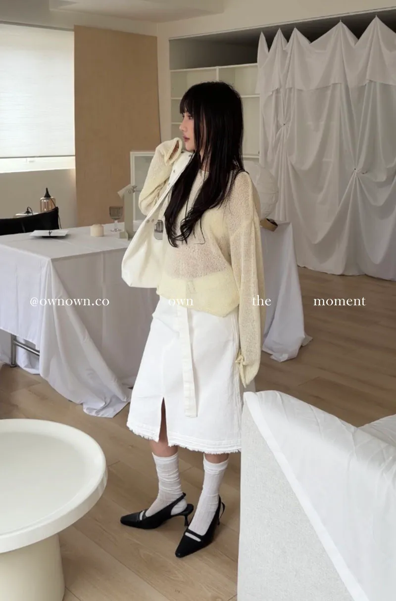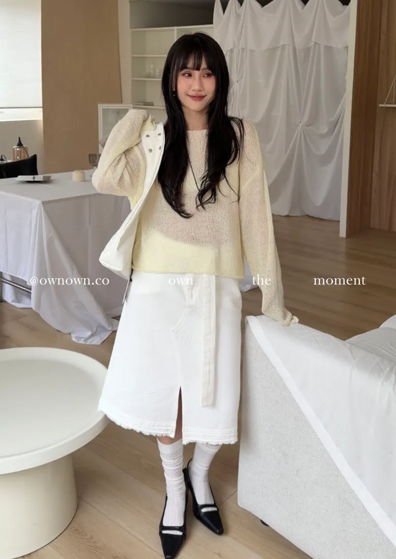 乾淨俐落 牛仔五分白裙(附腰帶) M/L