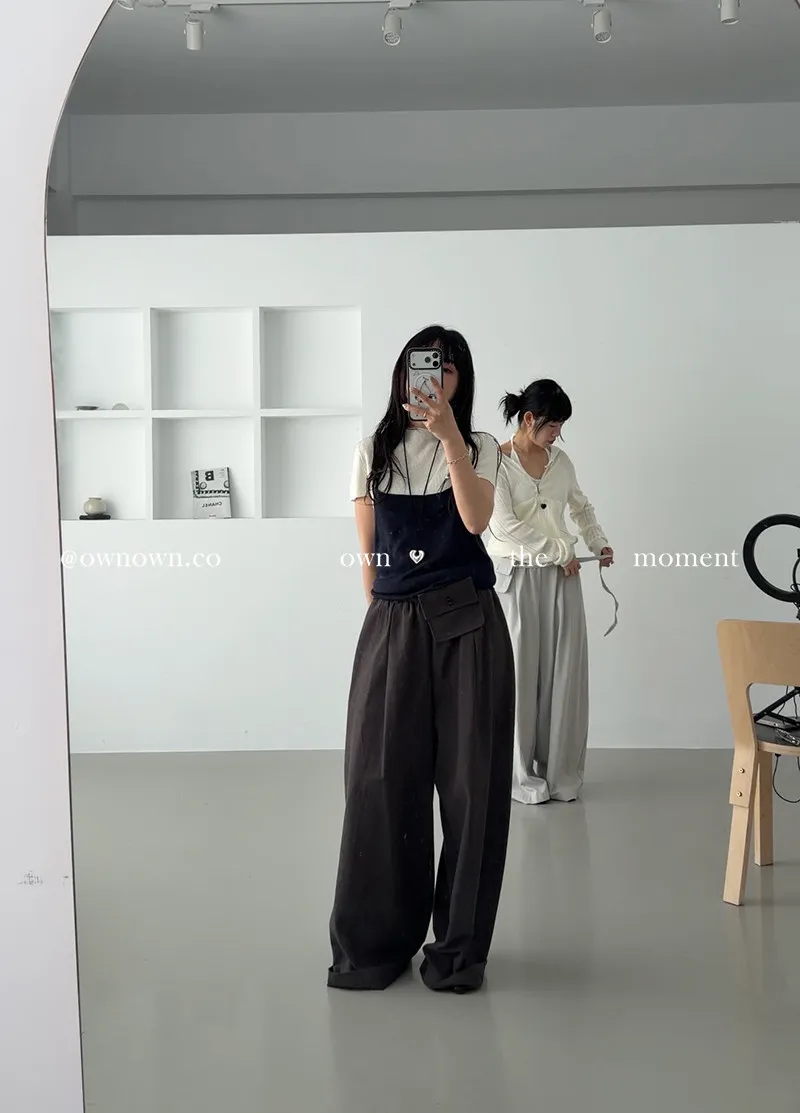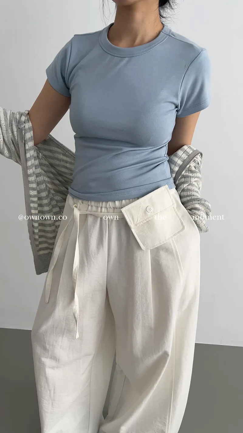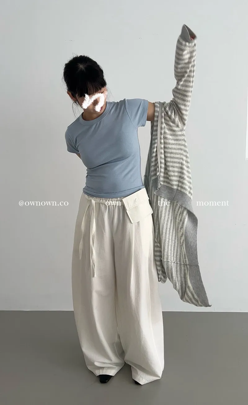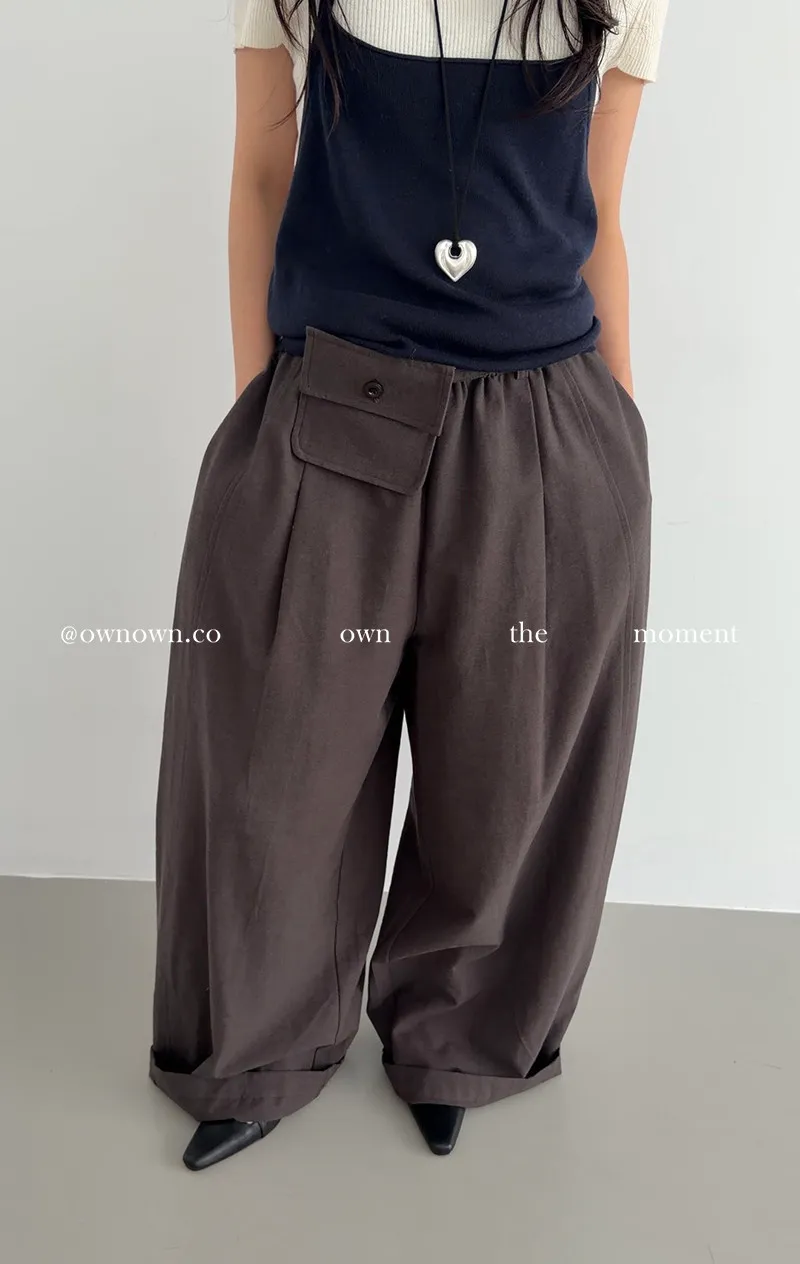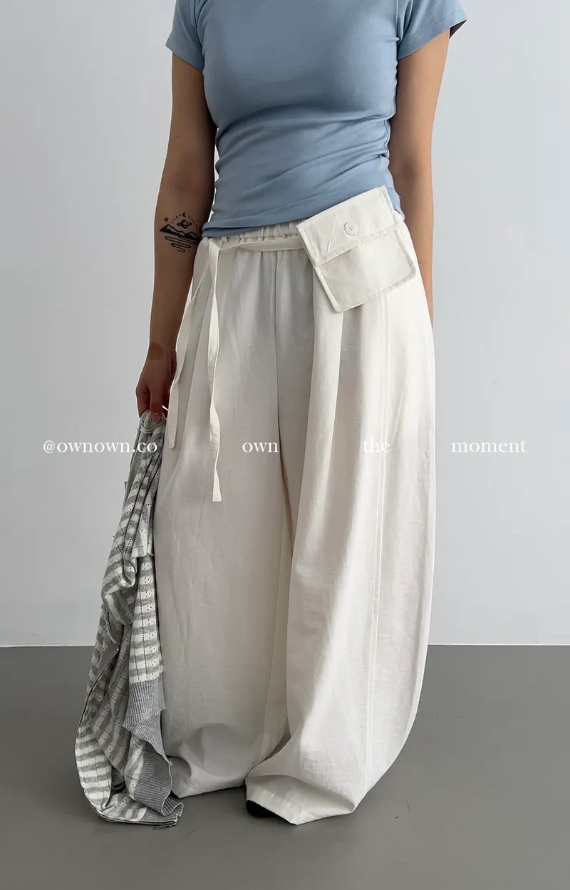 慵懶空氣感 鬆緊繭形褲(附腰包) 3colors