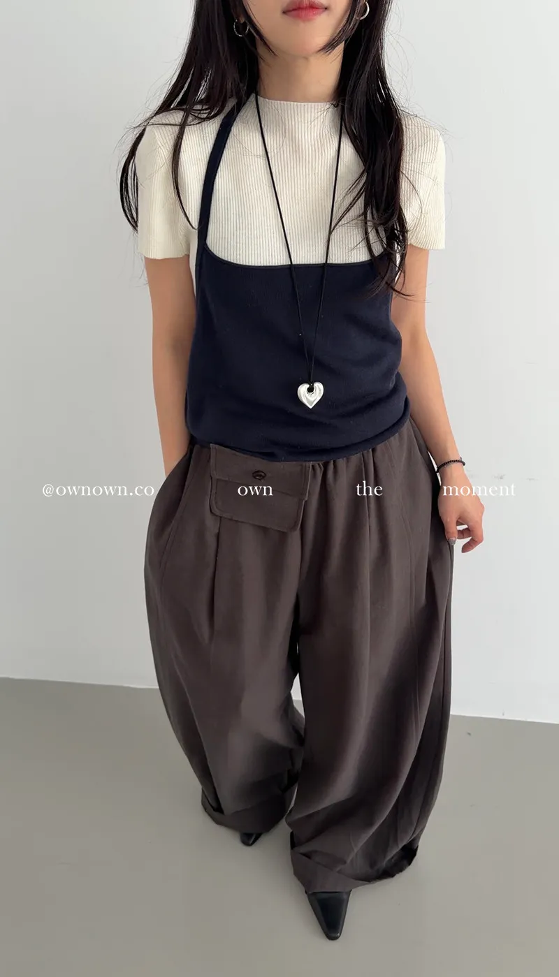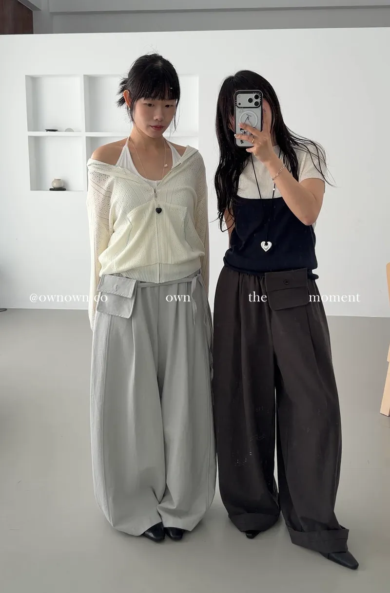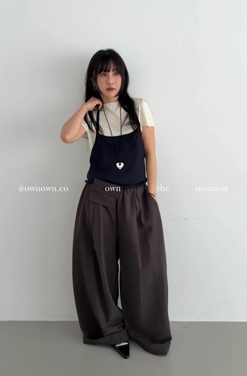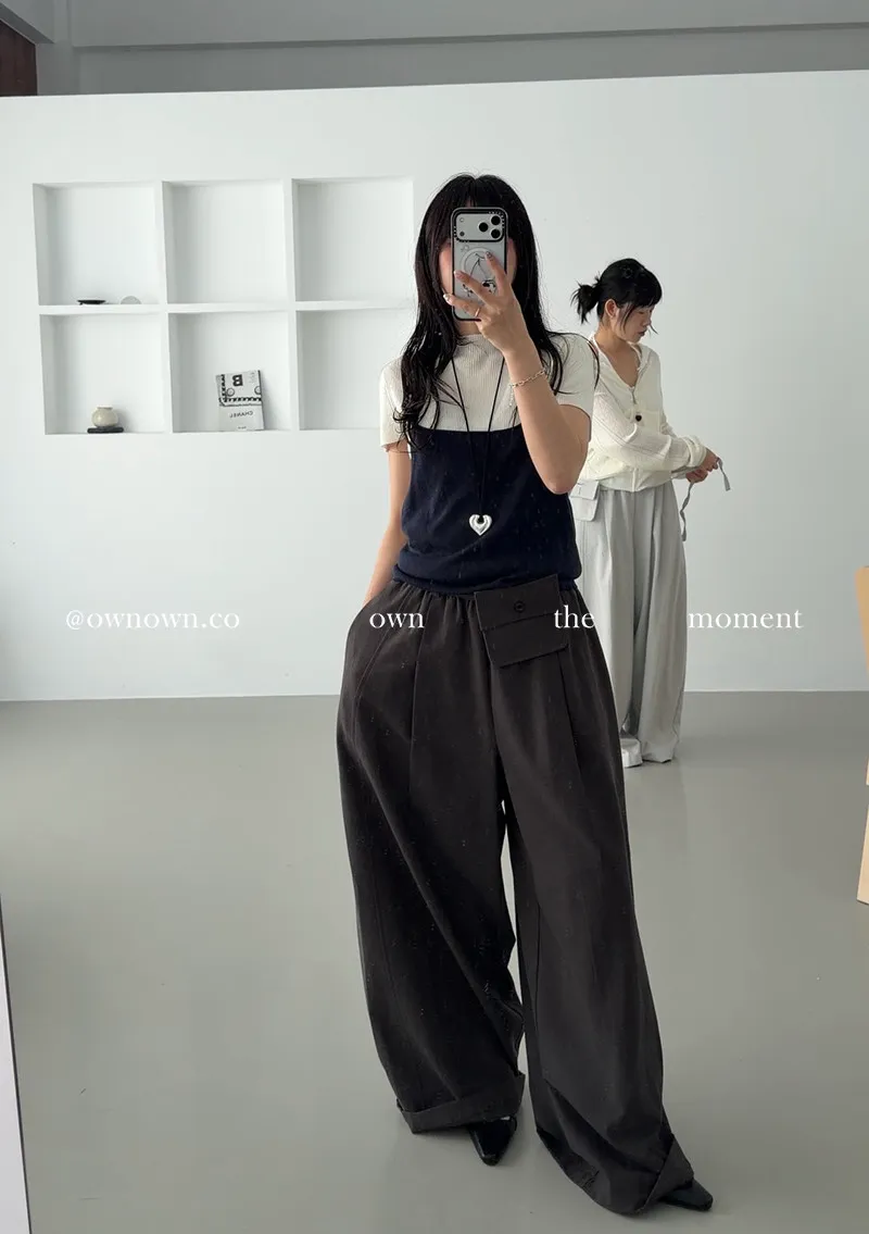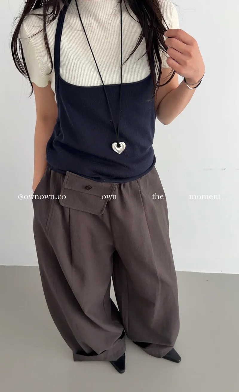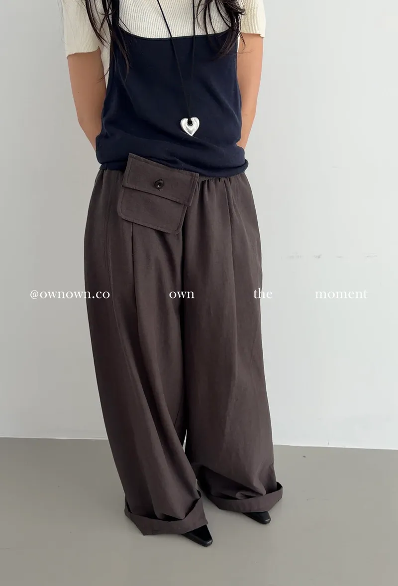 慵懶空氣感 鬆緊繭形褲(附腰包) 3colors