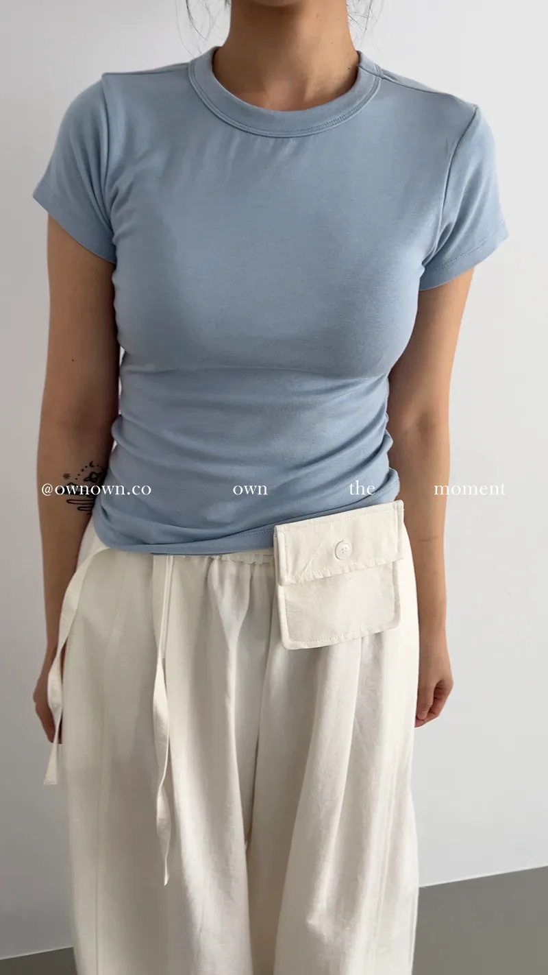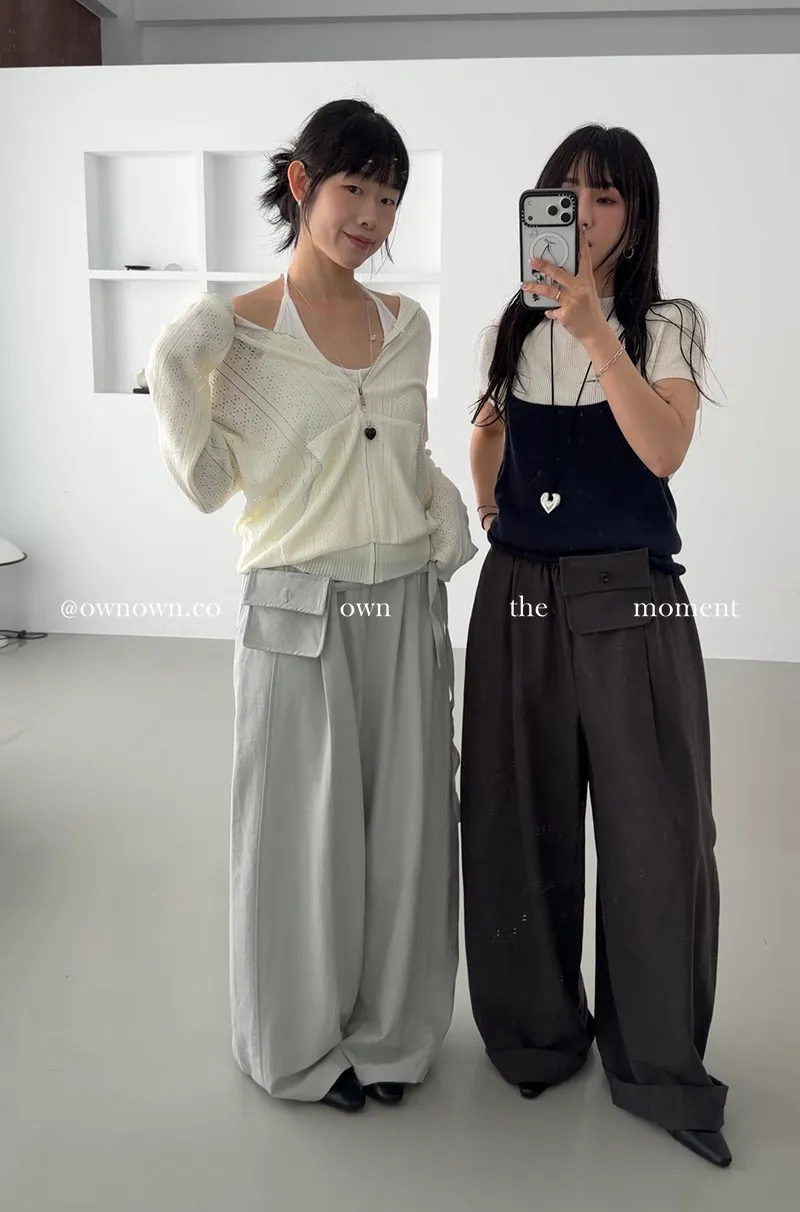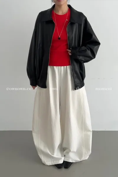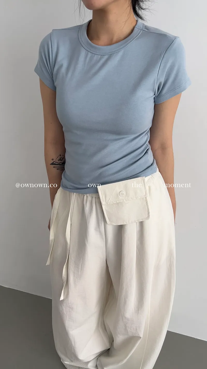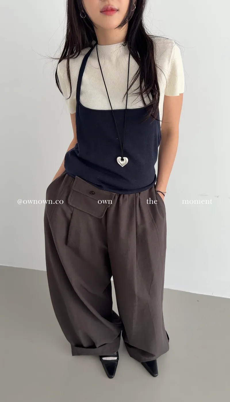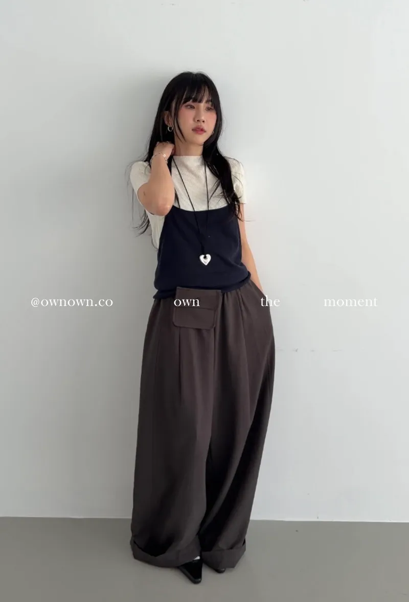 慵懶空氣感 鬆緊繭形褲(附腰包) 3colors