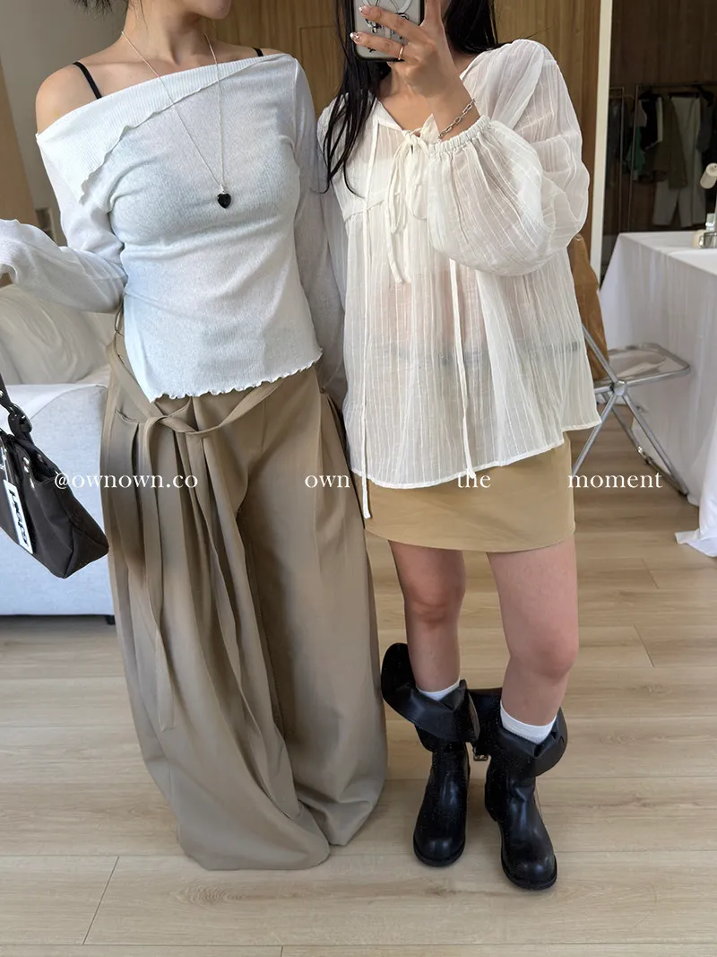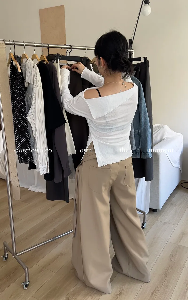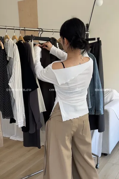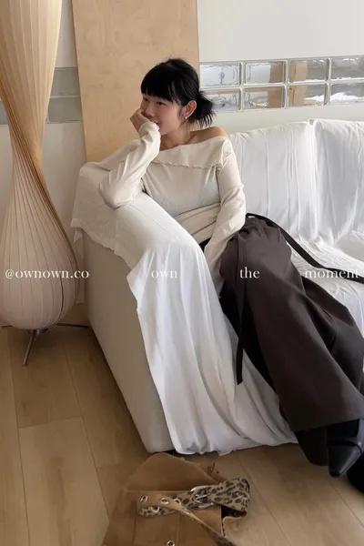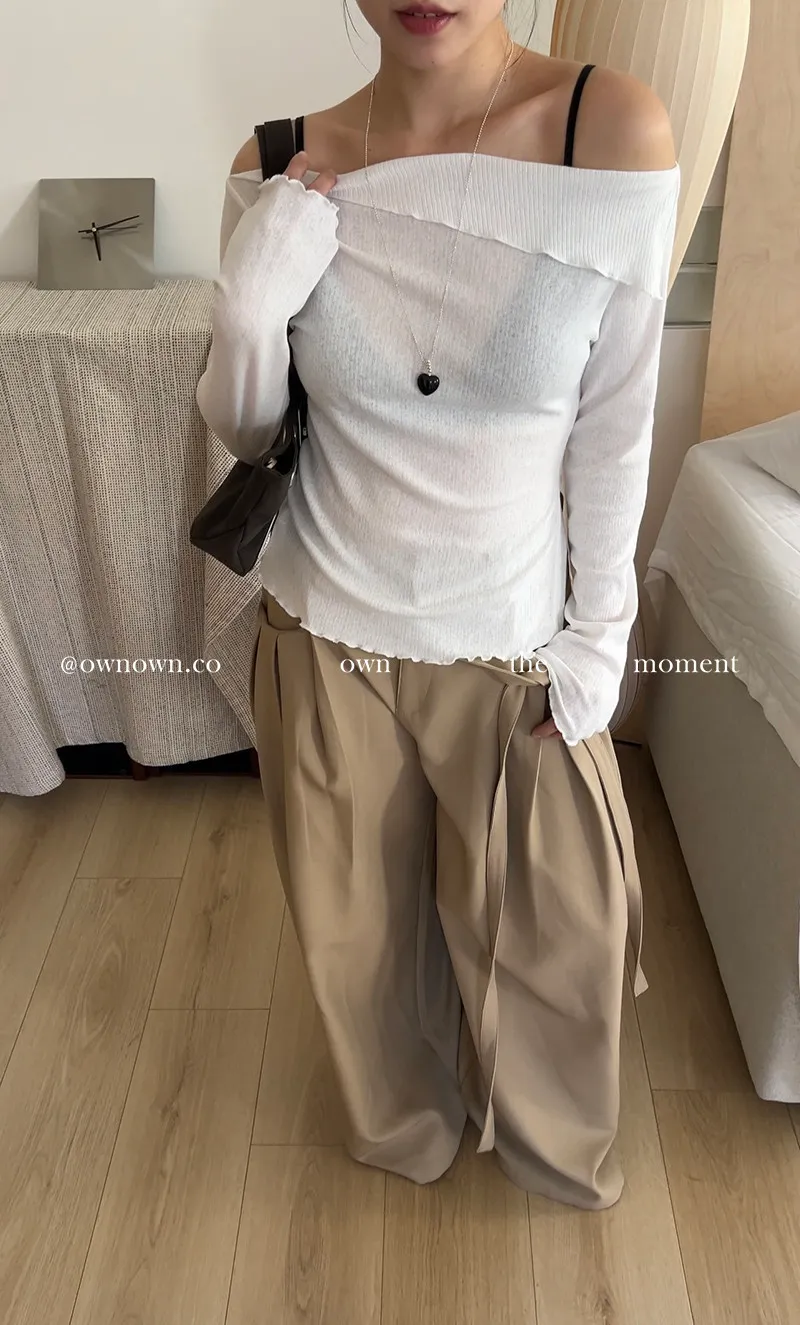 乾淨又浪漫 單衩一字領上衣 2colors