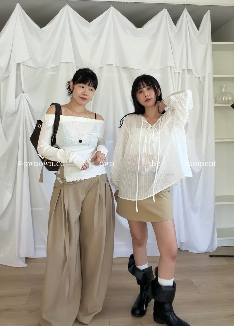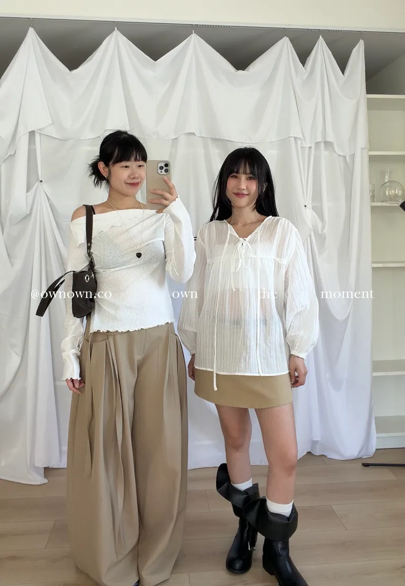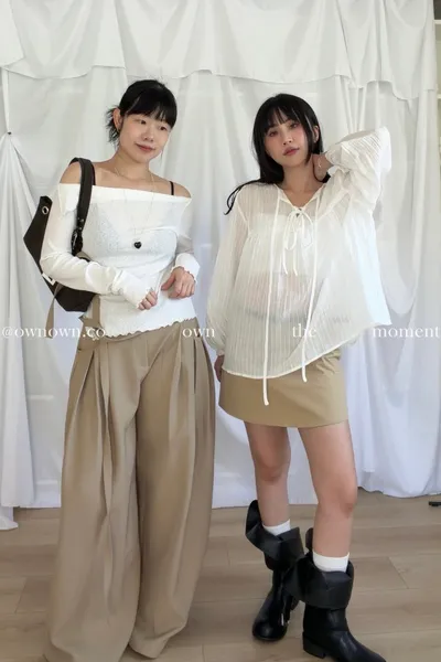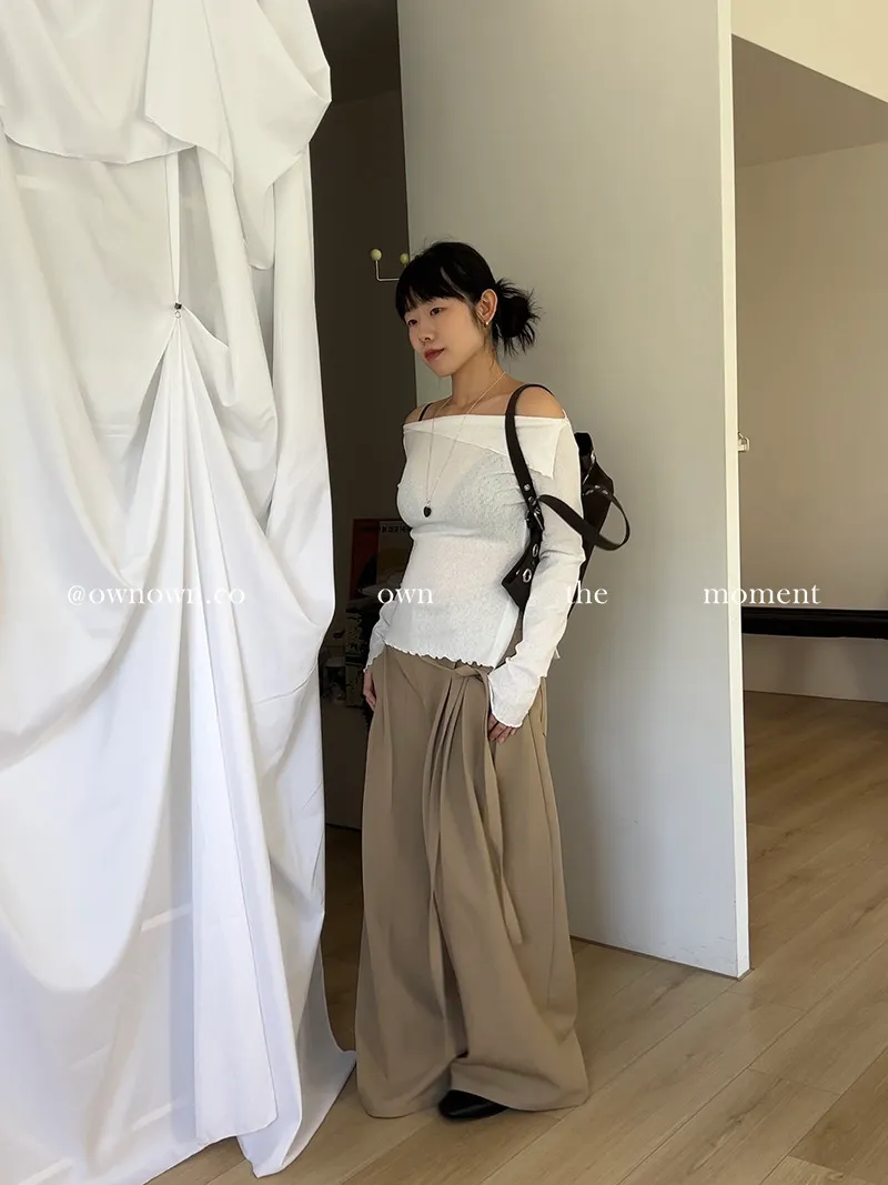 乾淨又浪漫 單衩一字領上衣 2colors