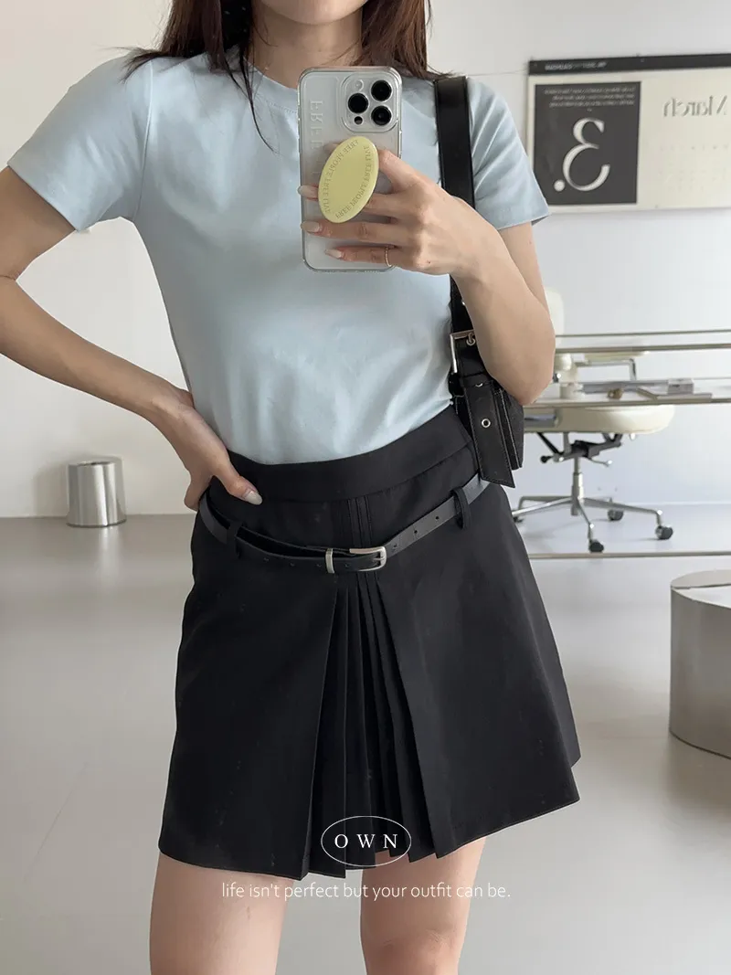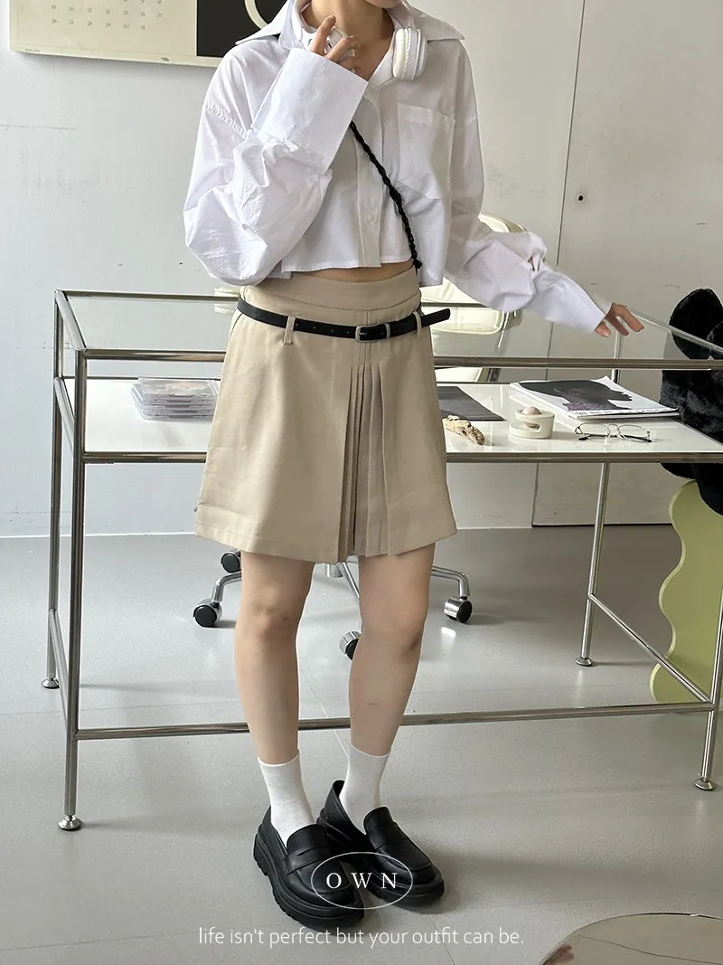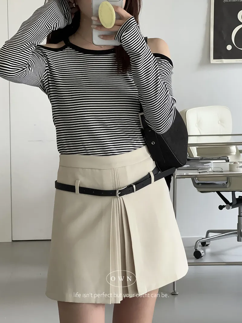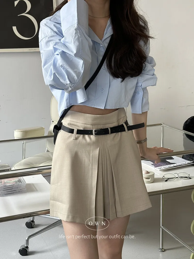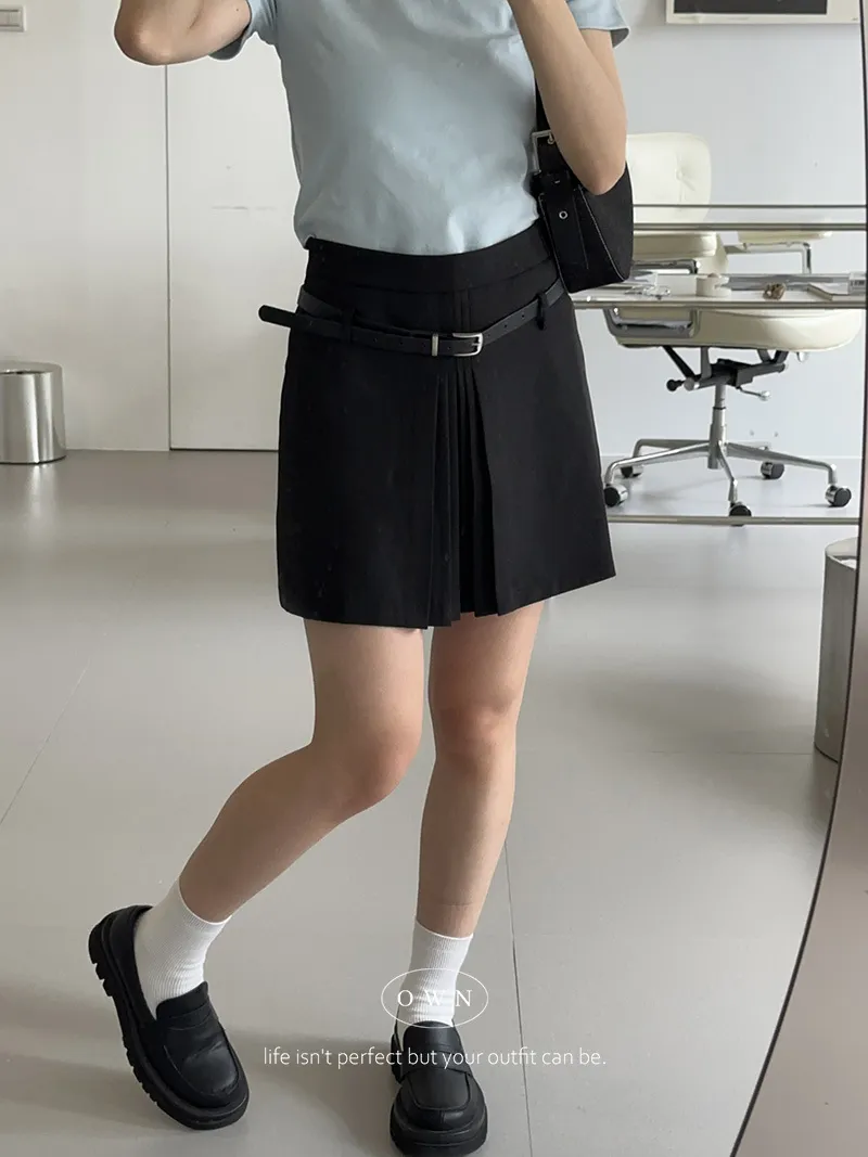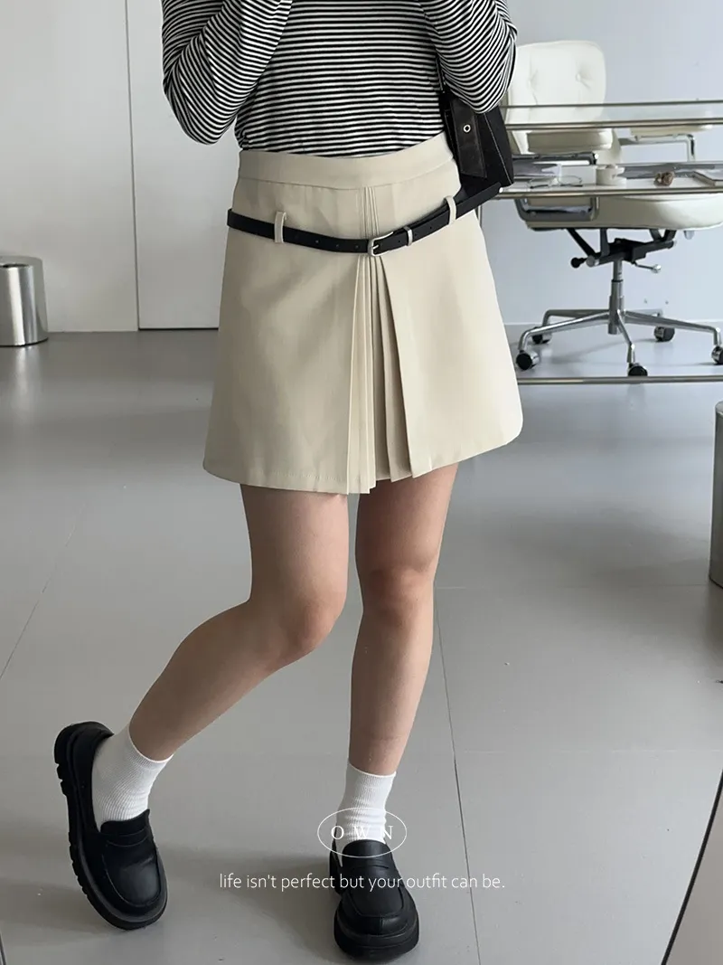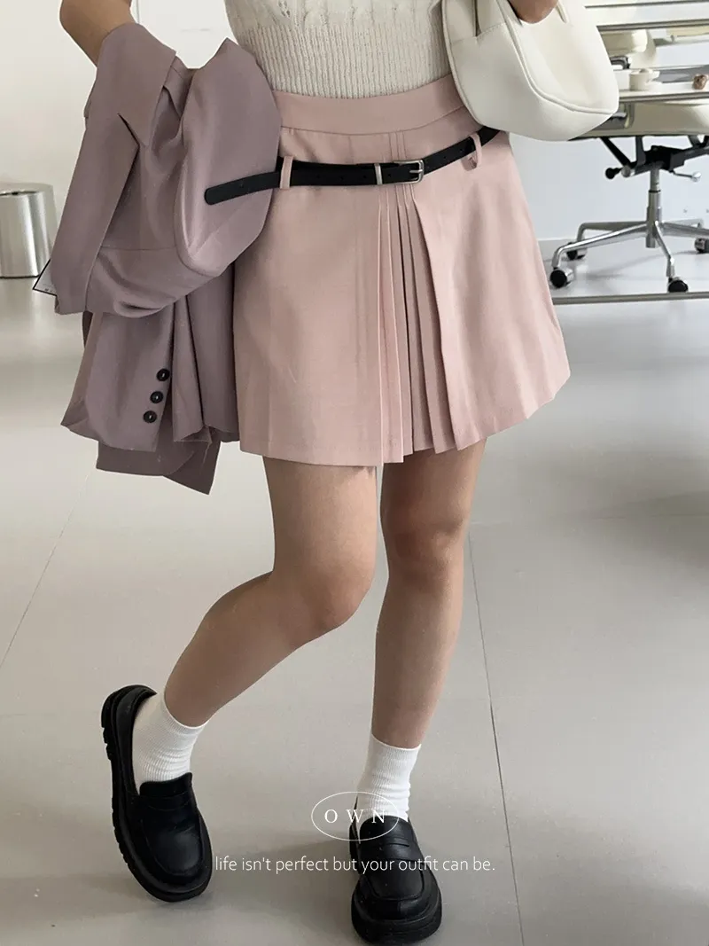 7分甜!小打摺西裝短裙(附皮帶) 4colros S/M/L