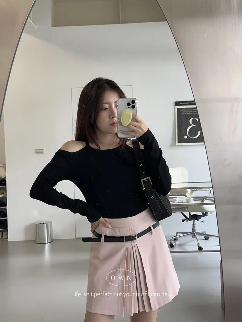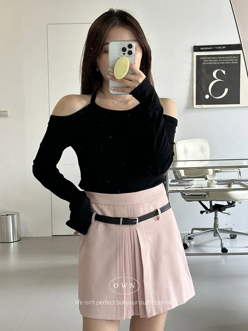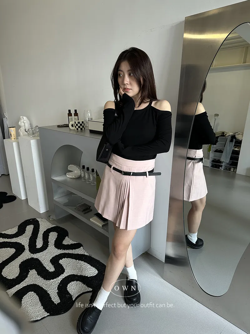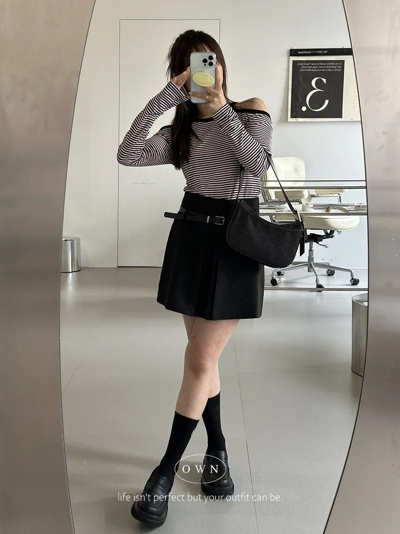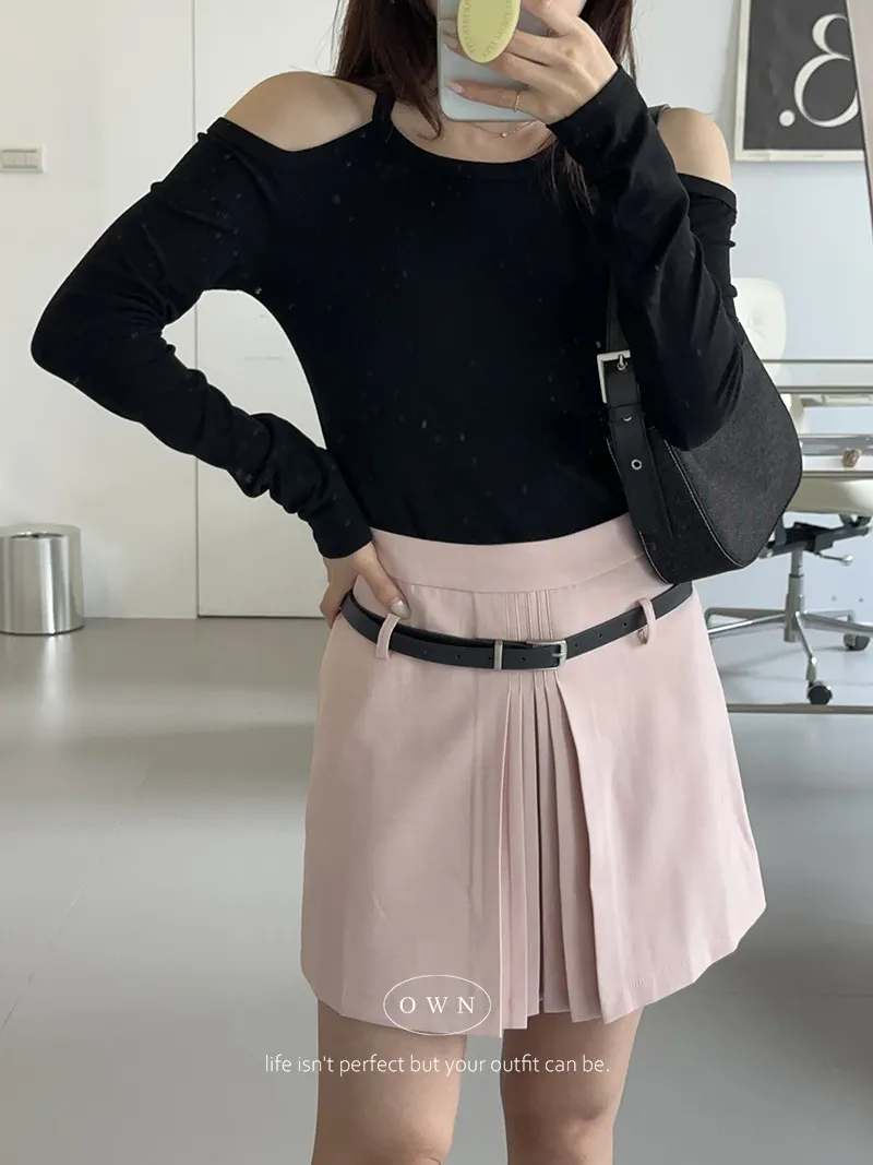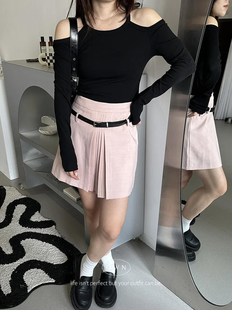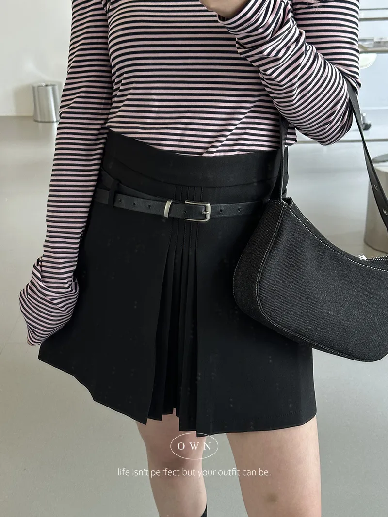 7分甜!小打摺西裝短裙(附皮帶) 4colros S/M/L