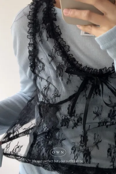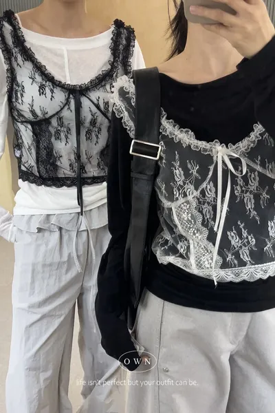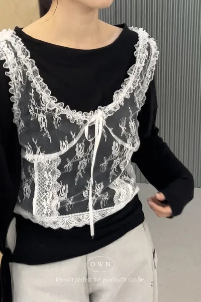 【正韓連線】疊搭日記 透紗馬甲蕾絲背心 2colors