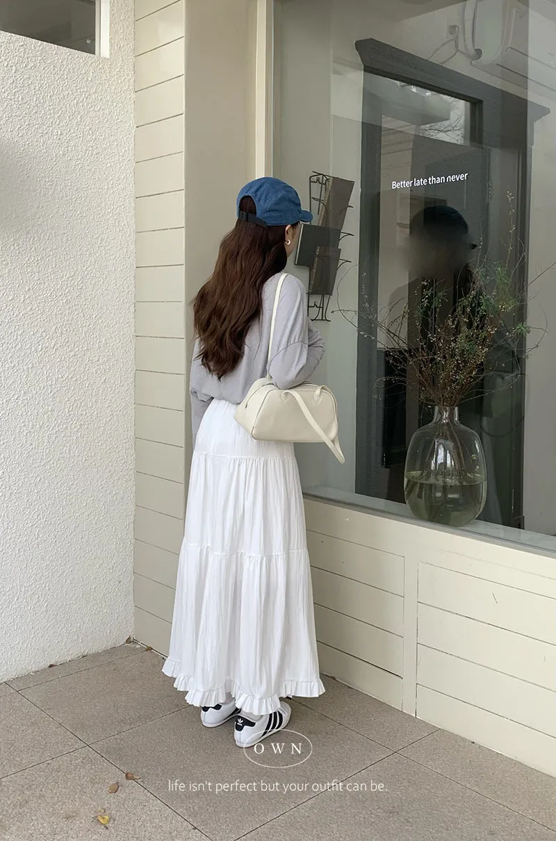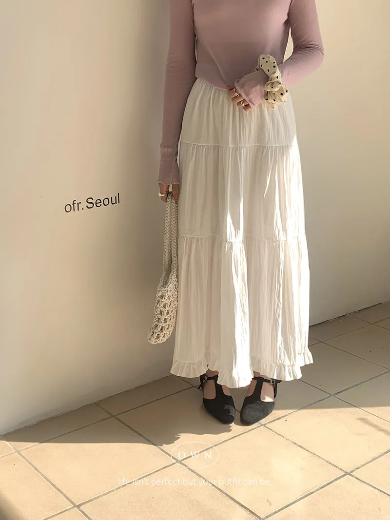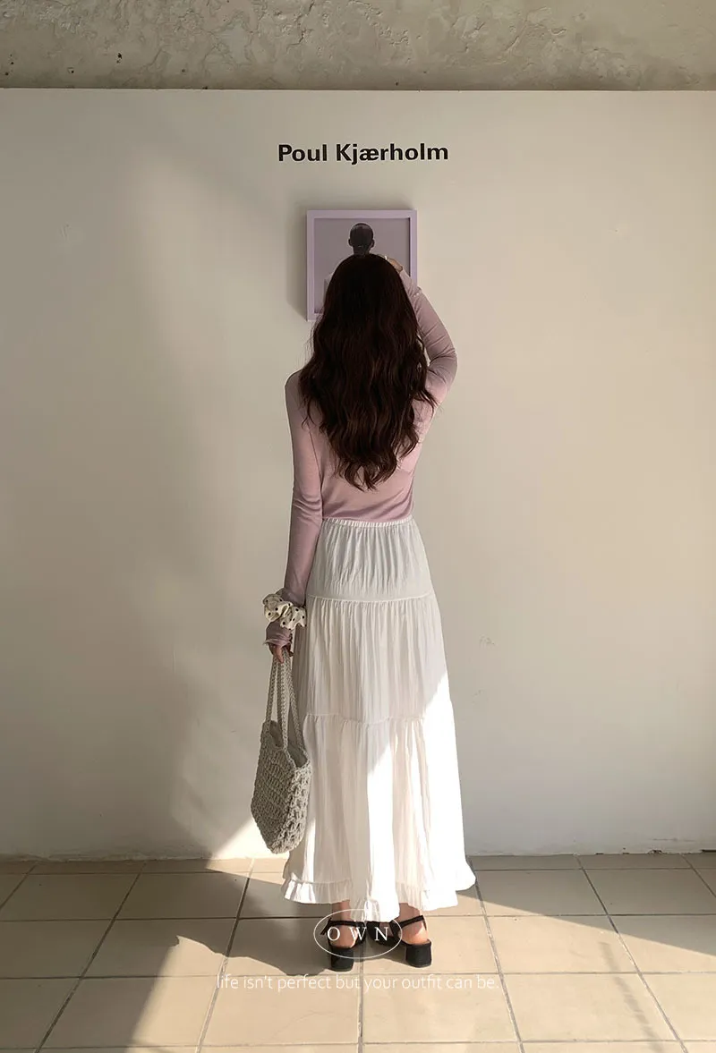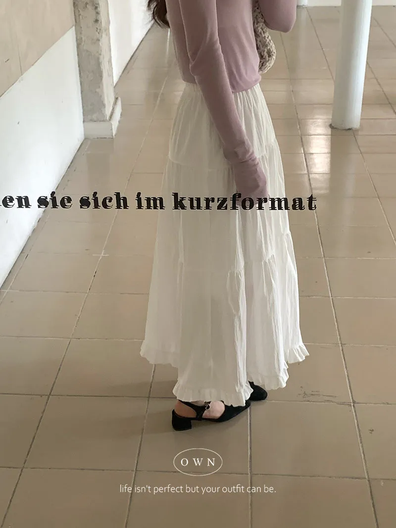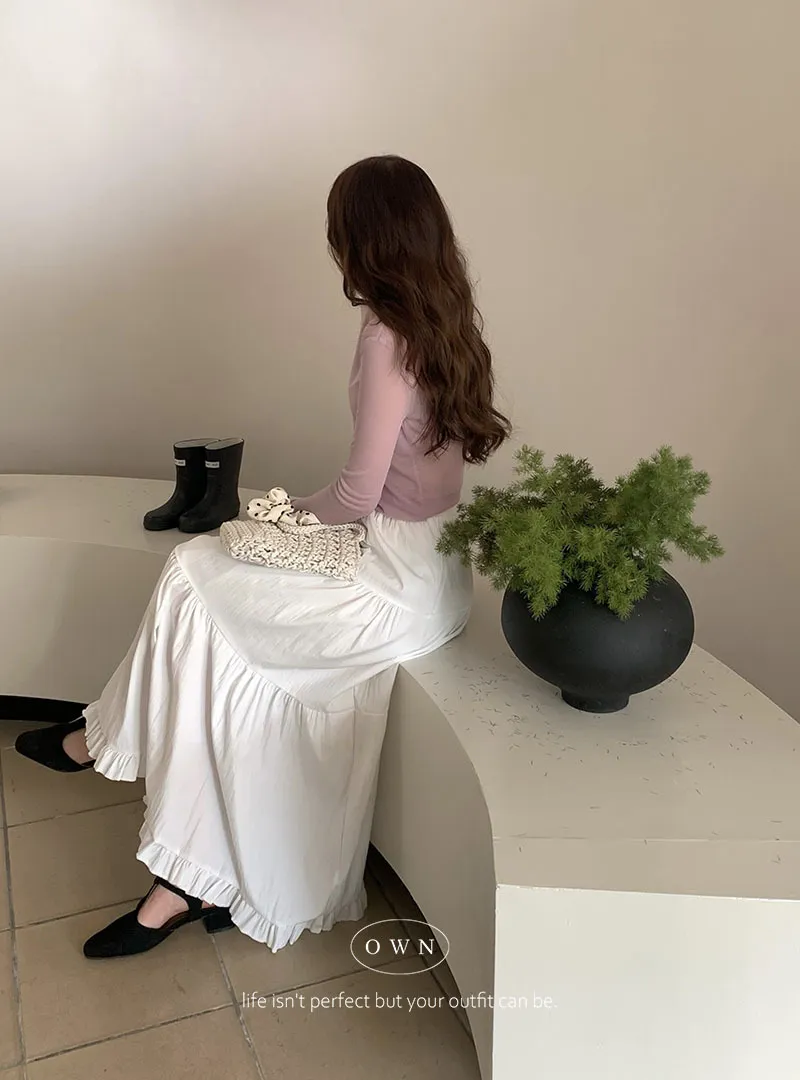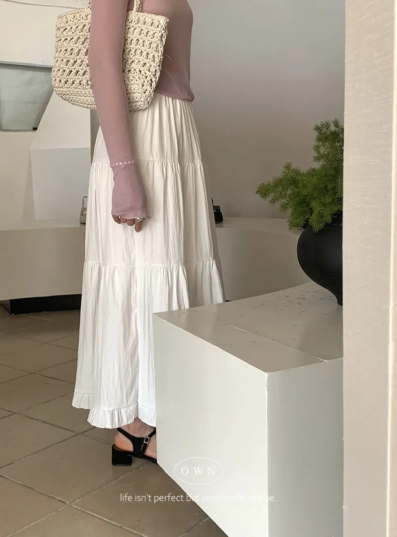 美到心坎裡 鬆緊荷葉下擺白長裙