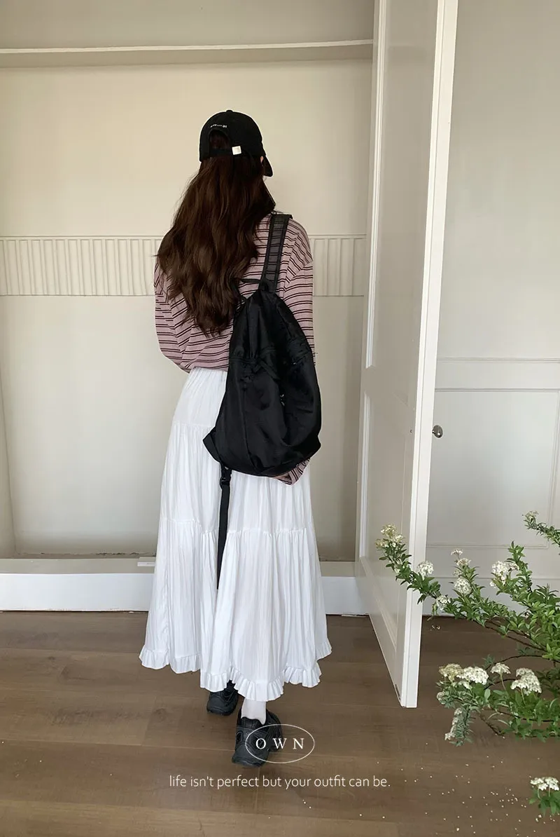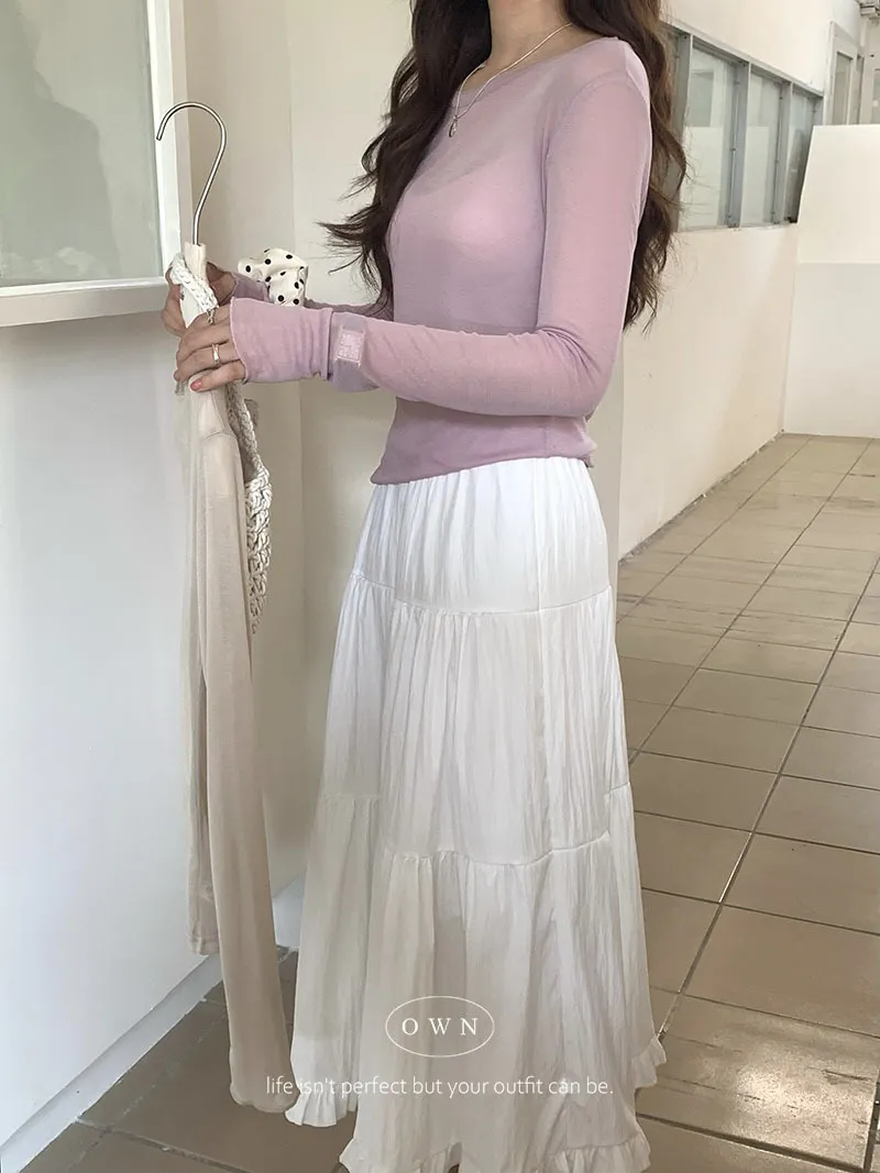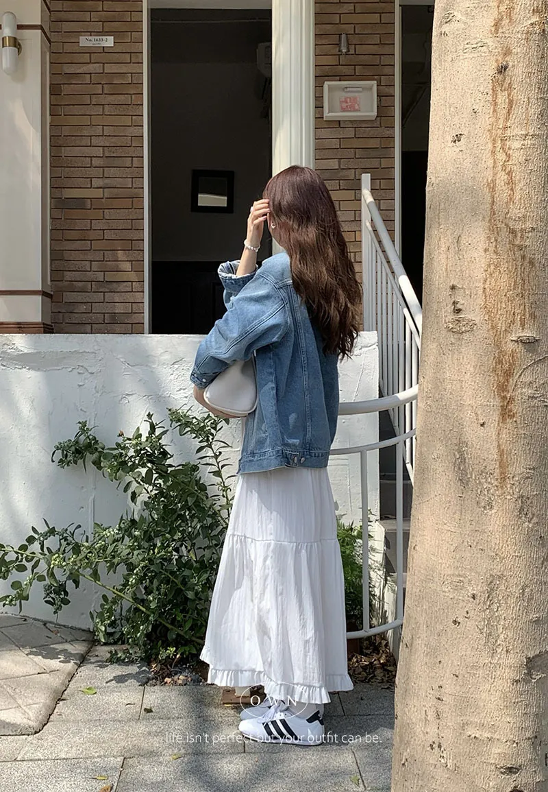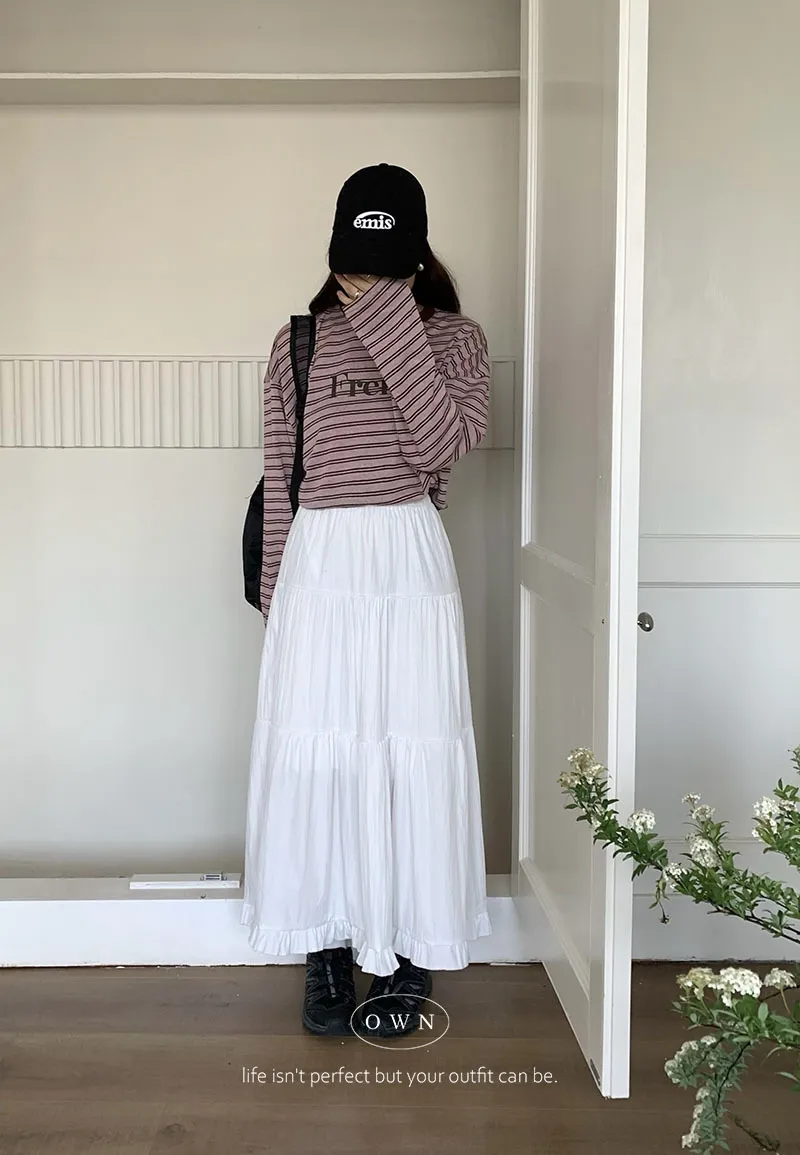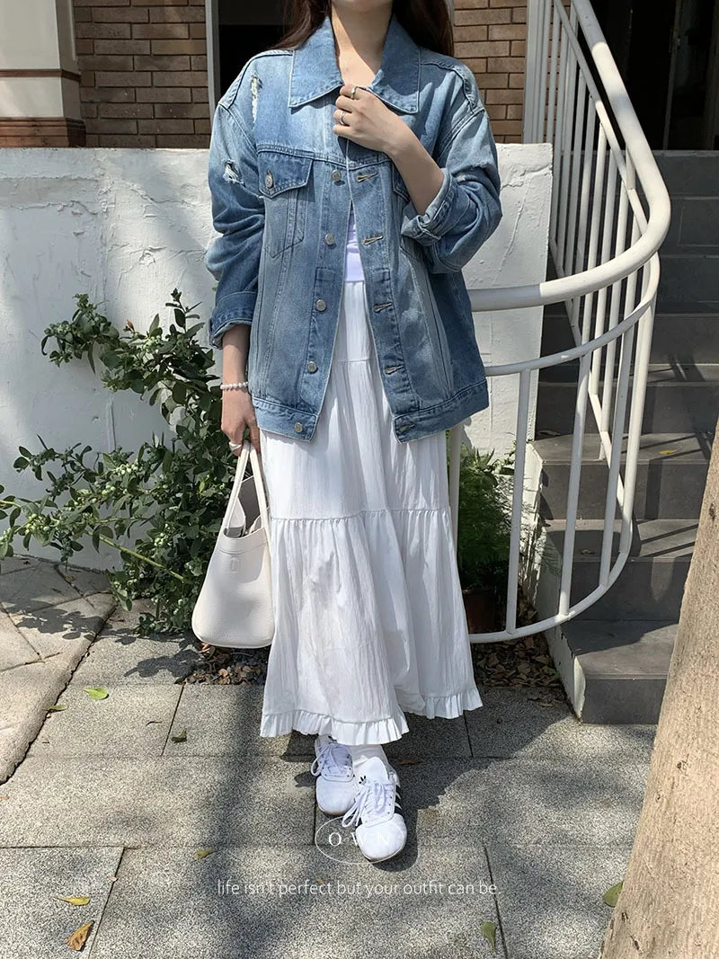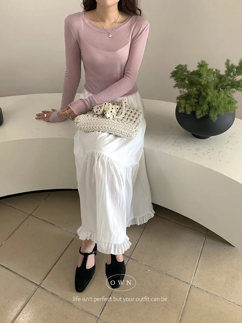 美到心坎裡 鬆緊荷葉下擺白長裙