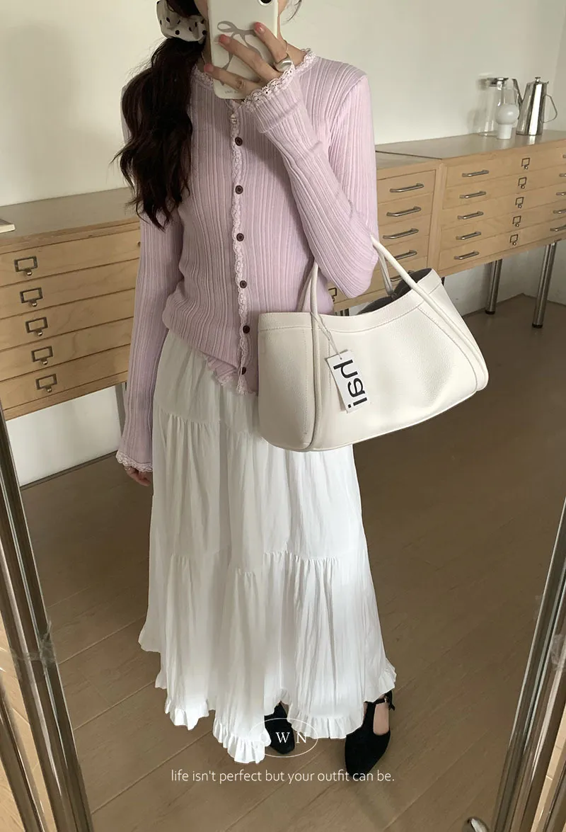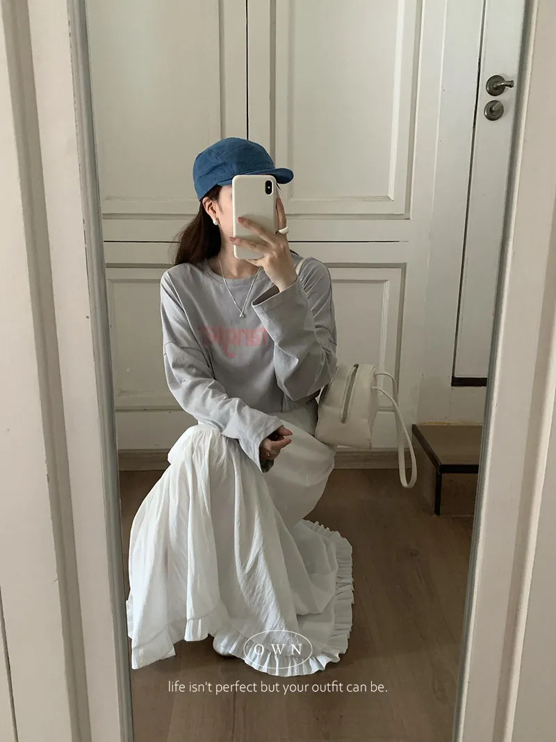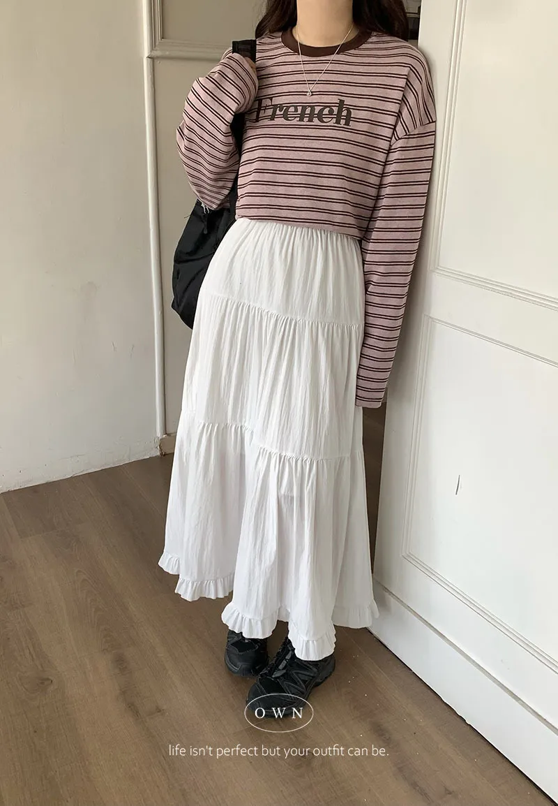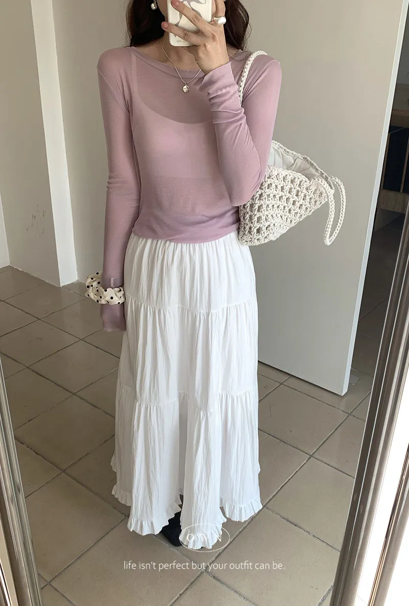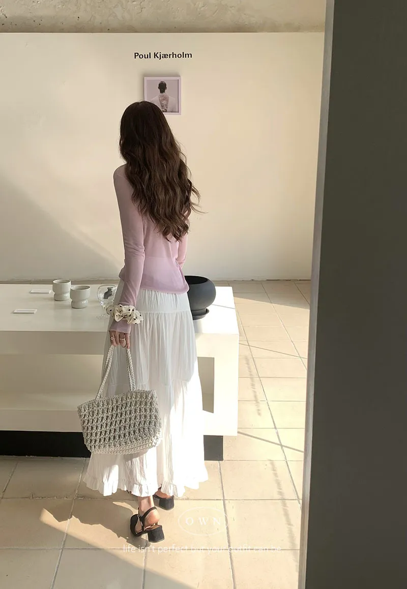 美到心坎裡 鬆緊荷葉下擺白長裙