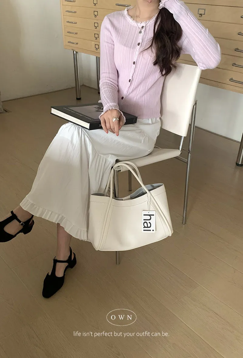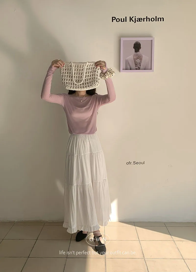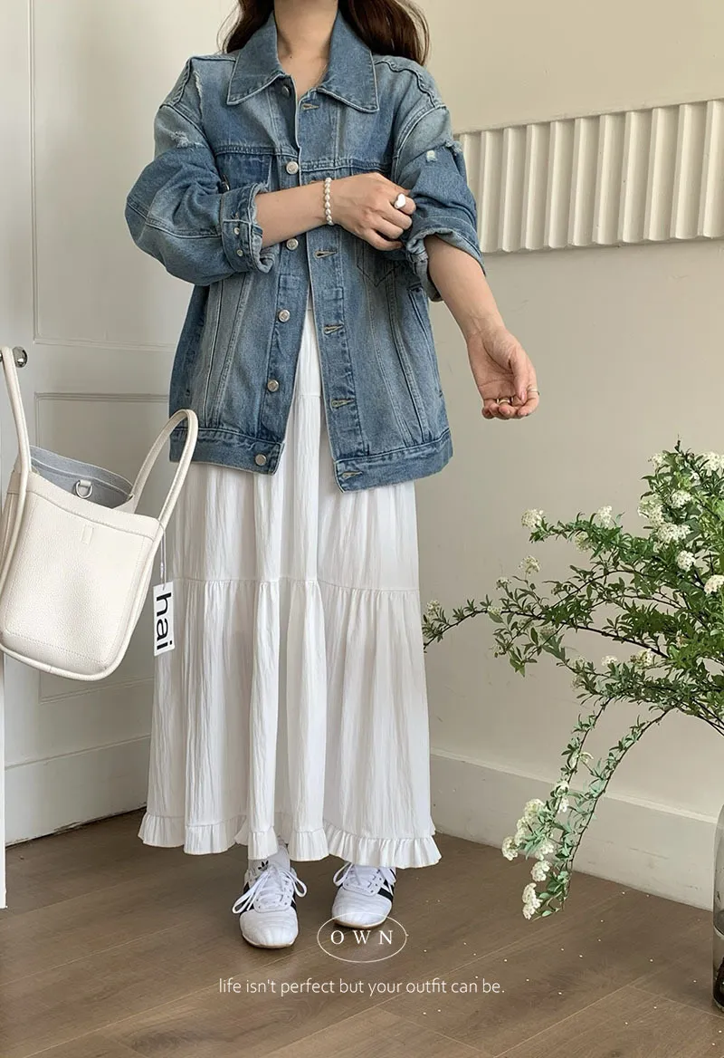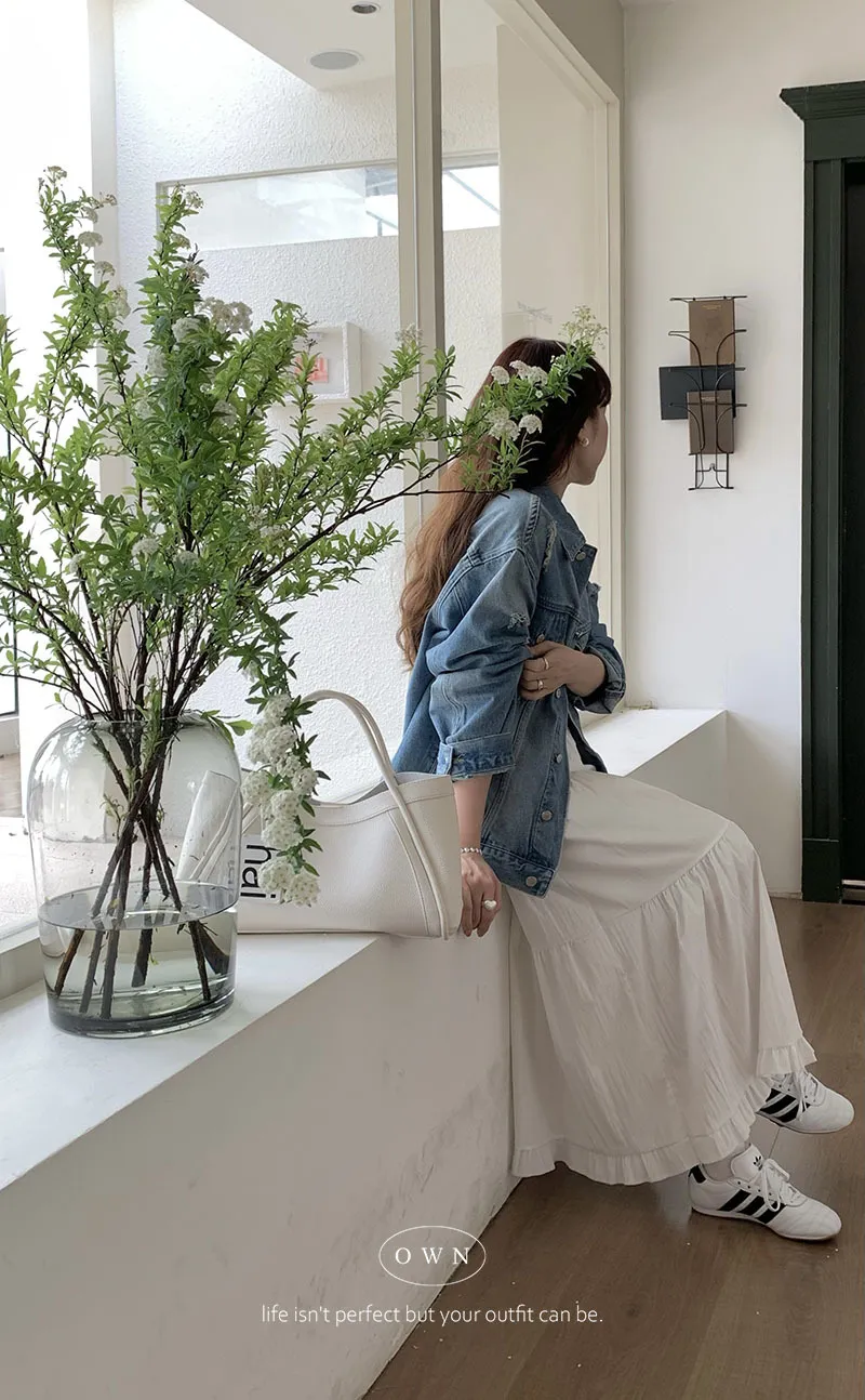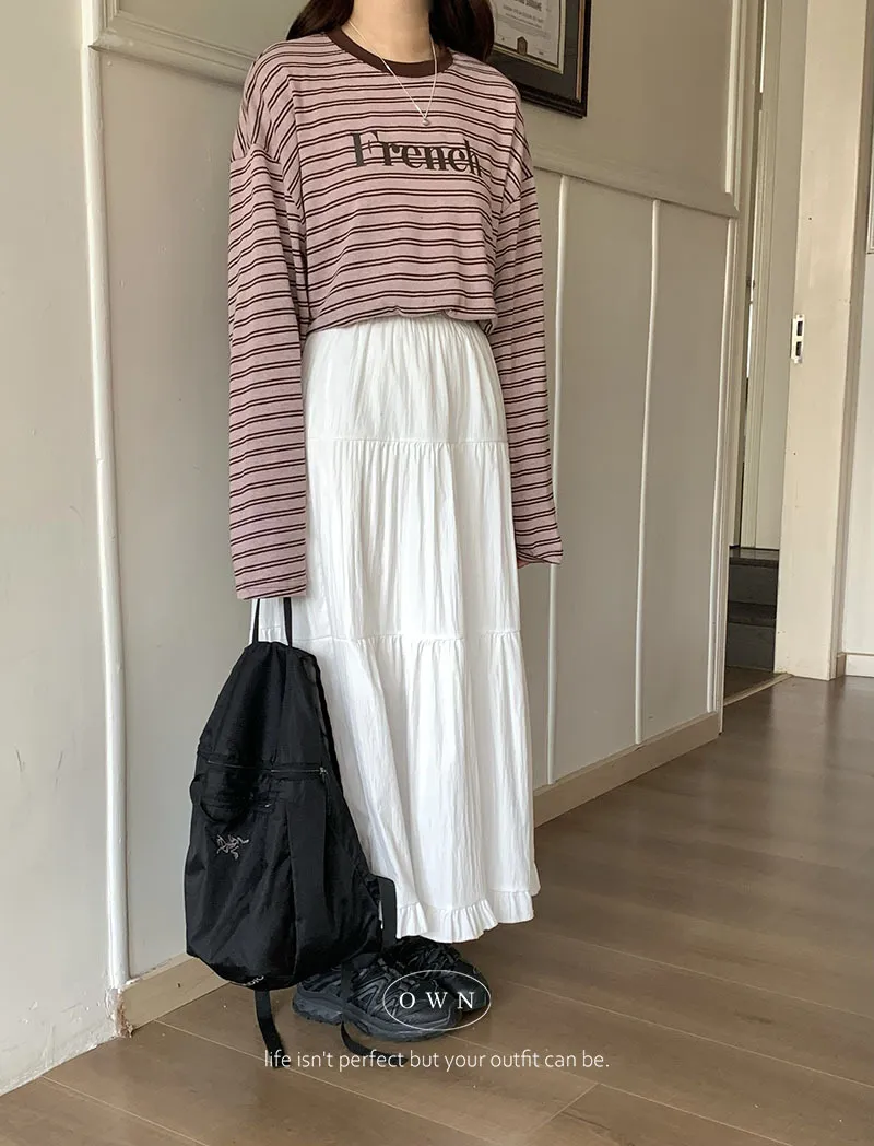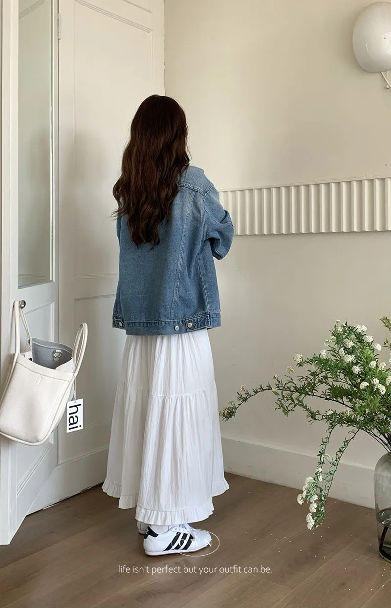 美到心坎裡 鬆緊荷葉下擺白長裙