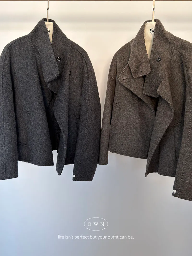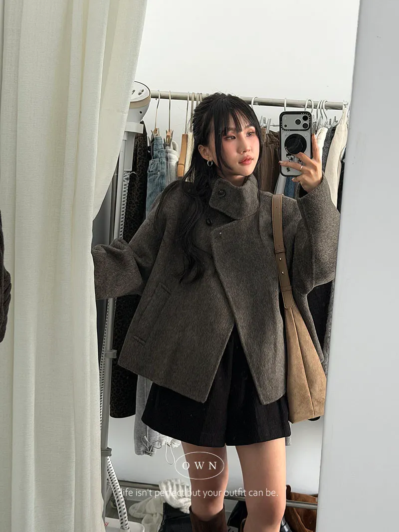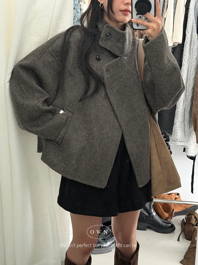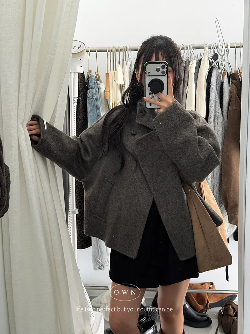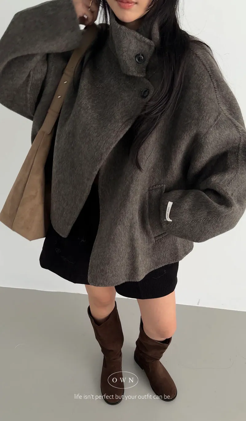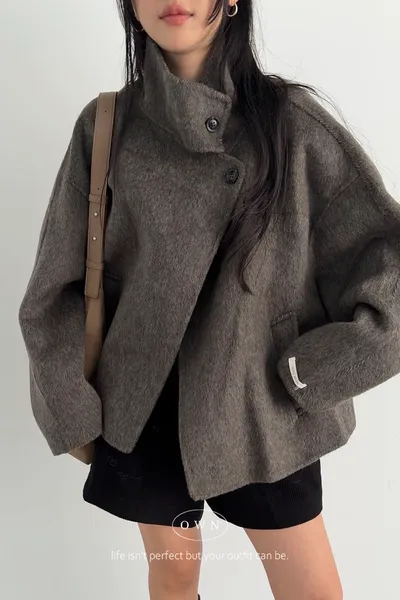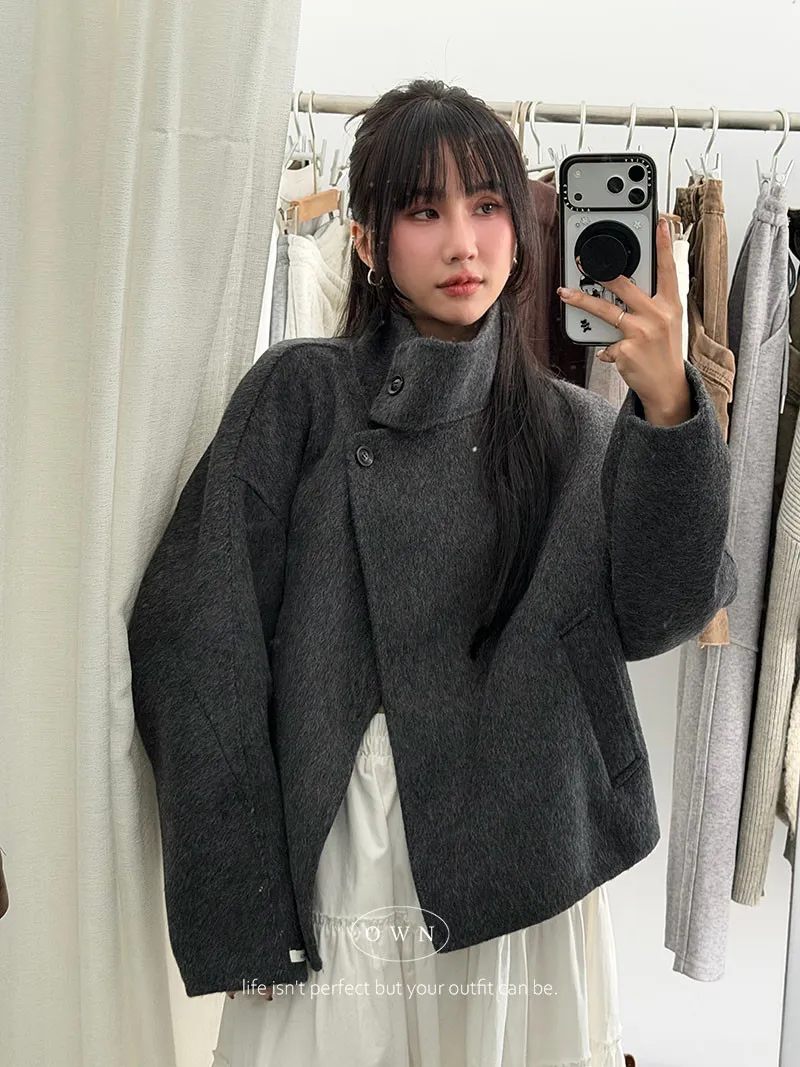 給你滿分氣場 小立領微短版羊絨外套 2colors