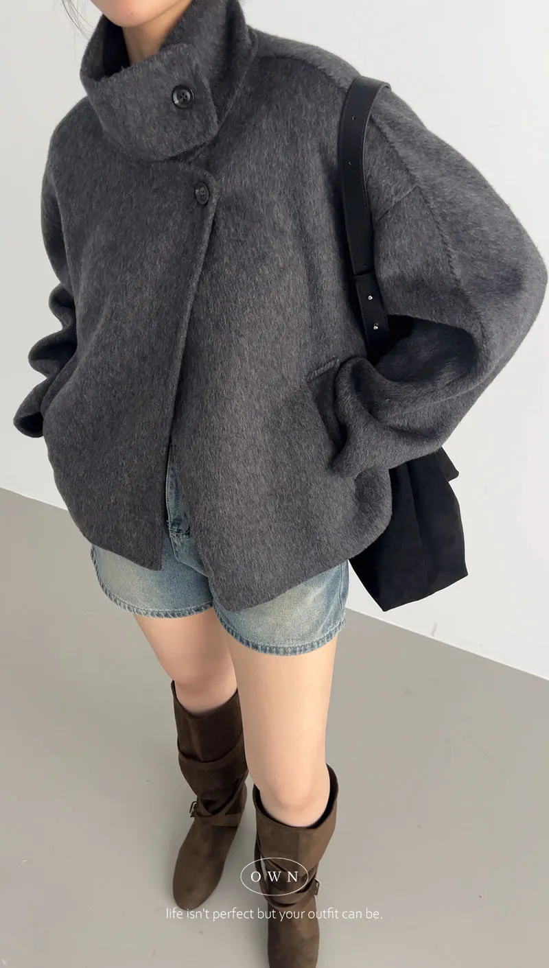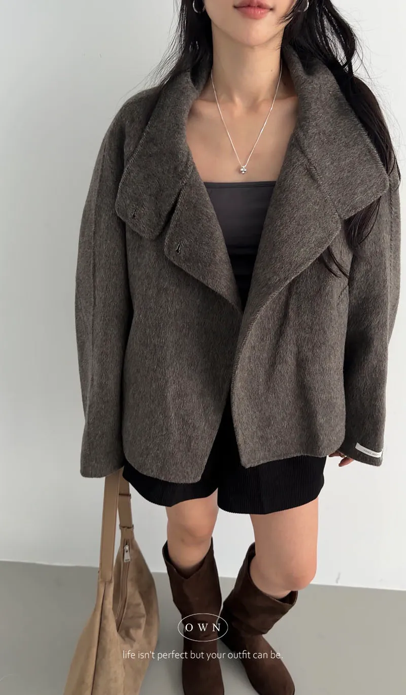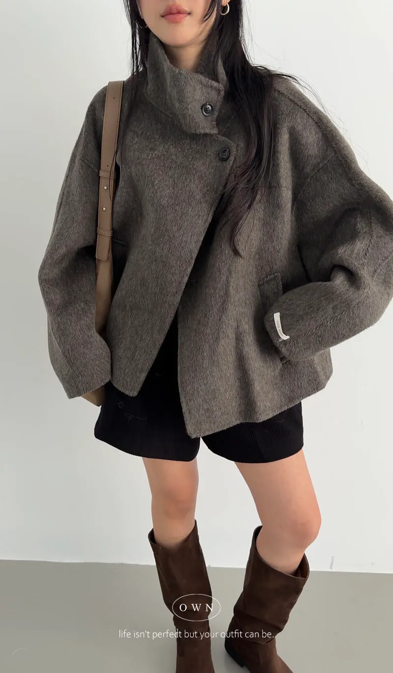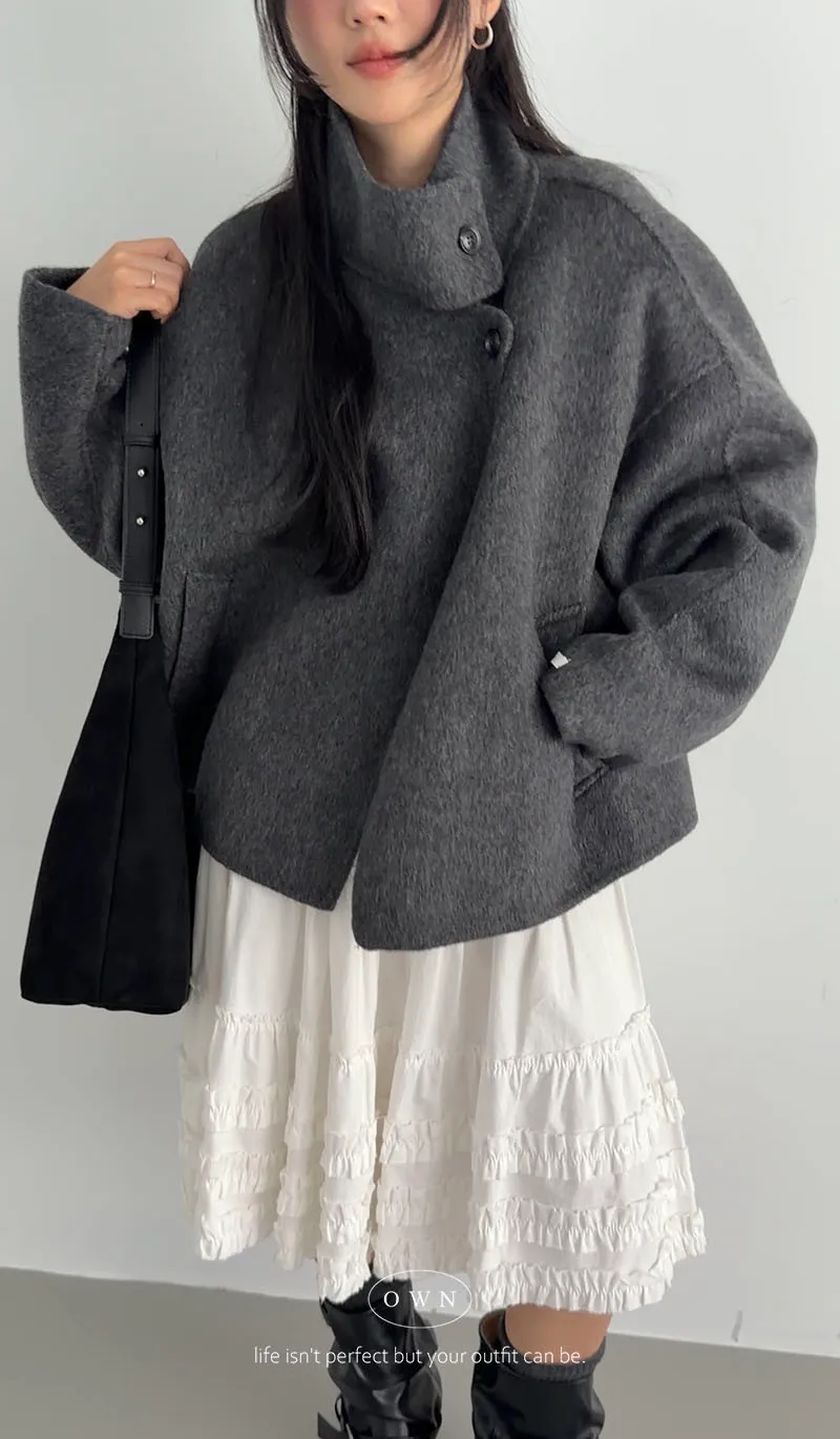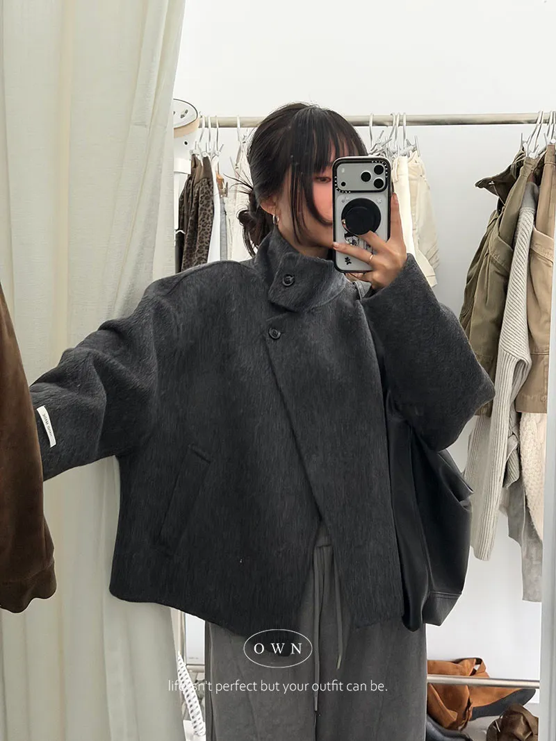 給你滿分氣場 小立領微短版羊絨外套 2colors