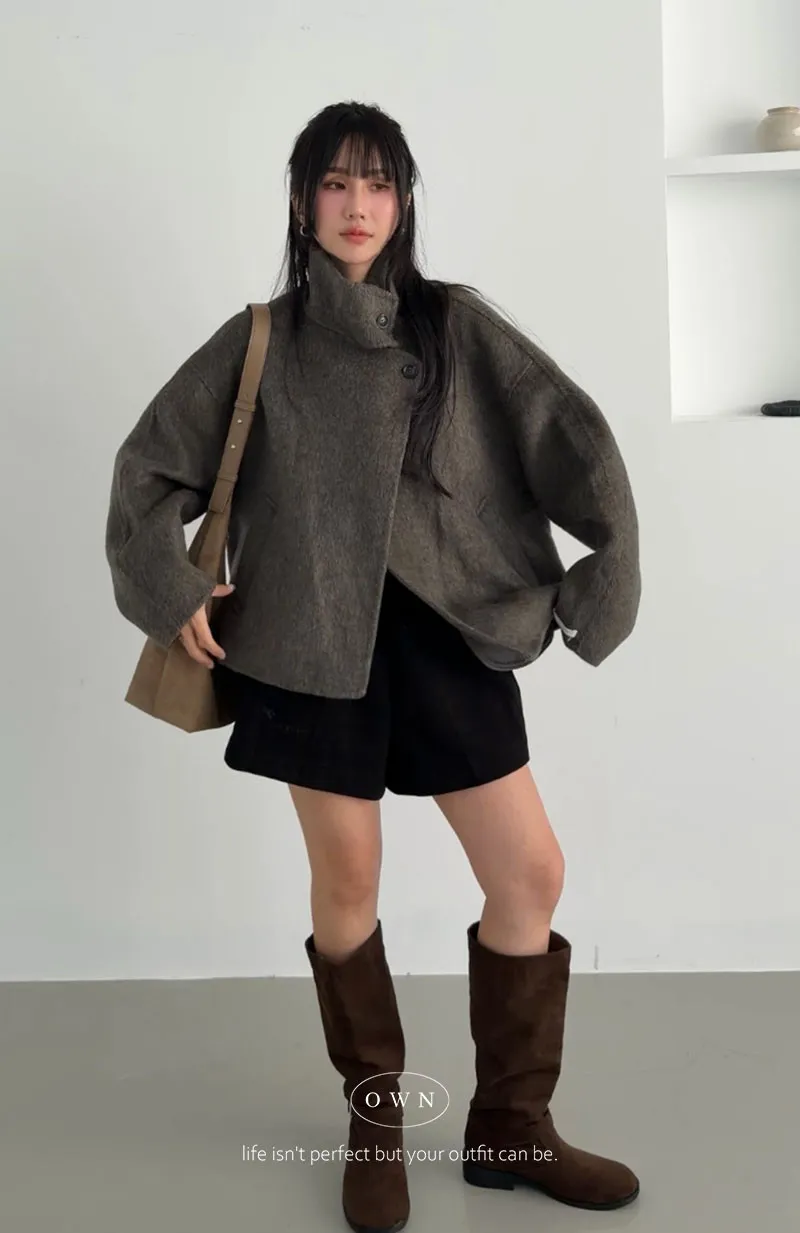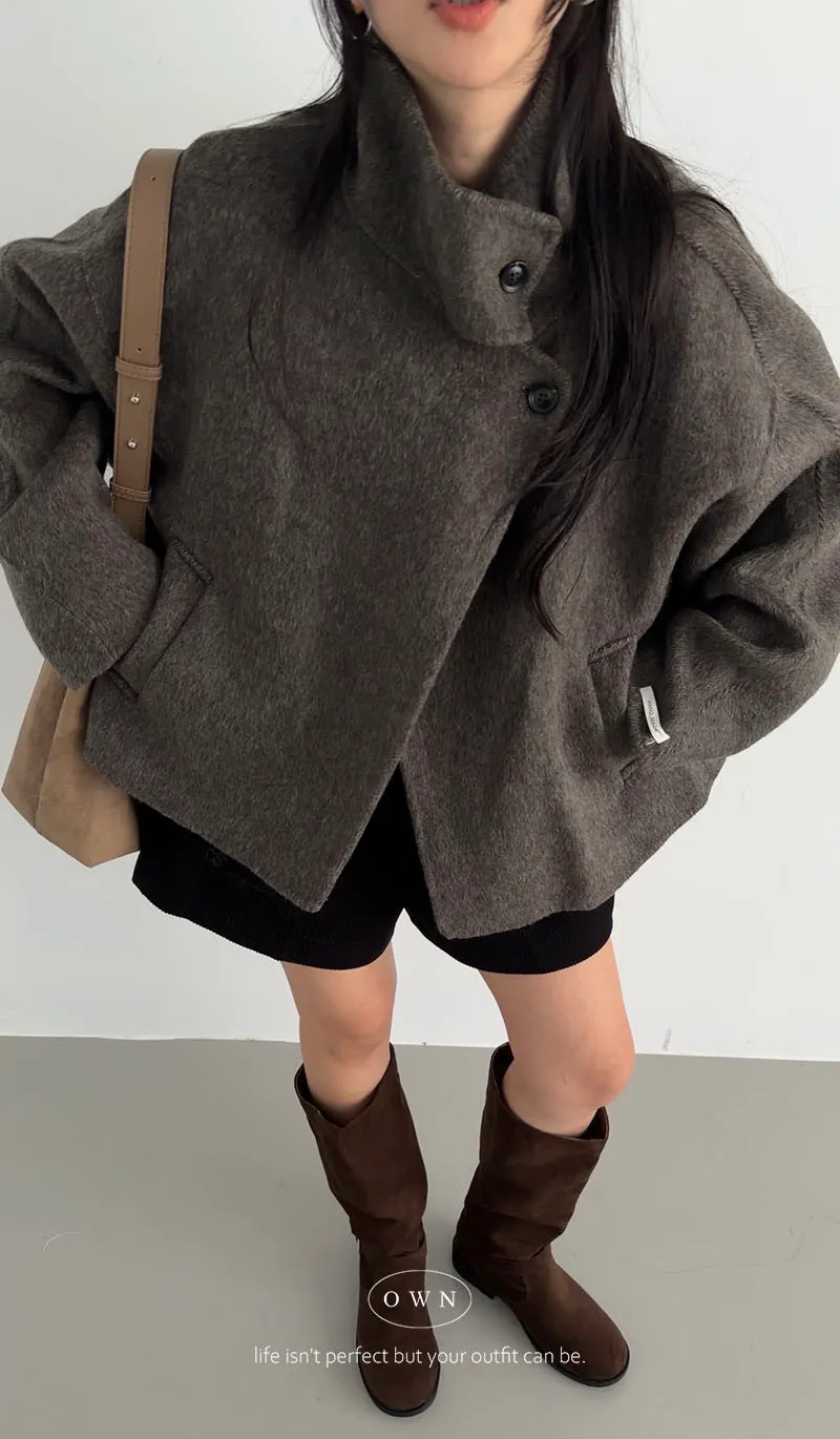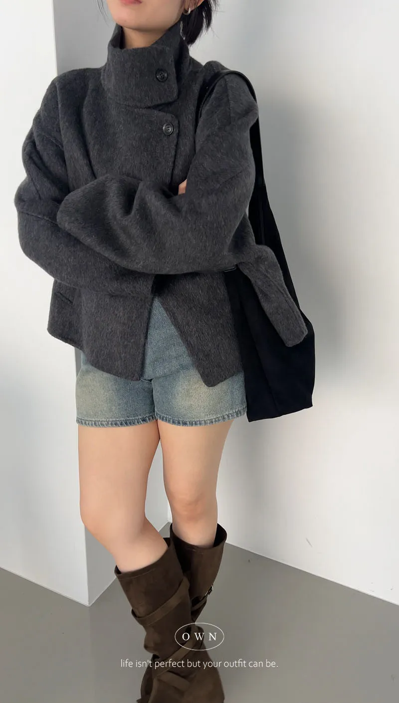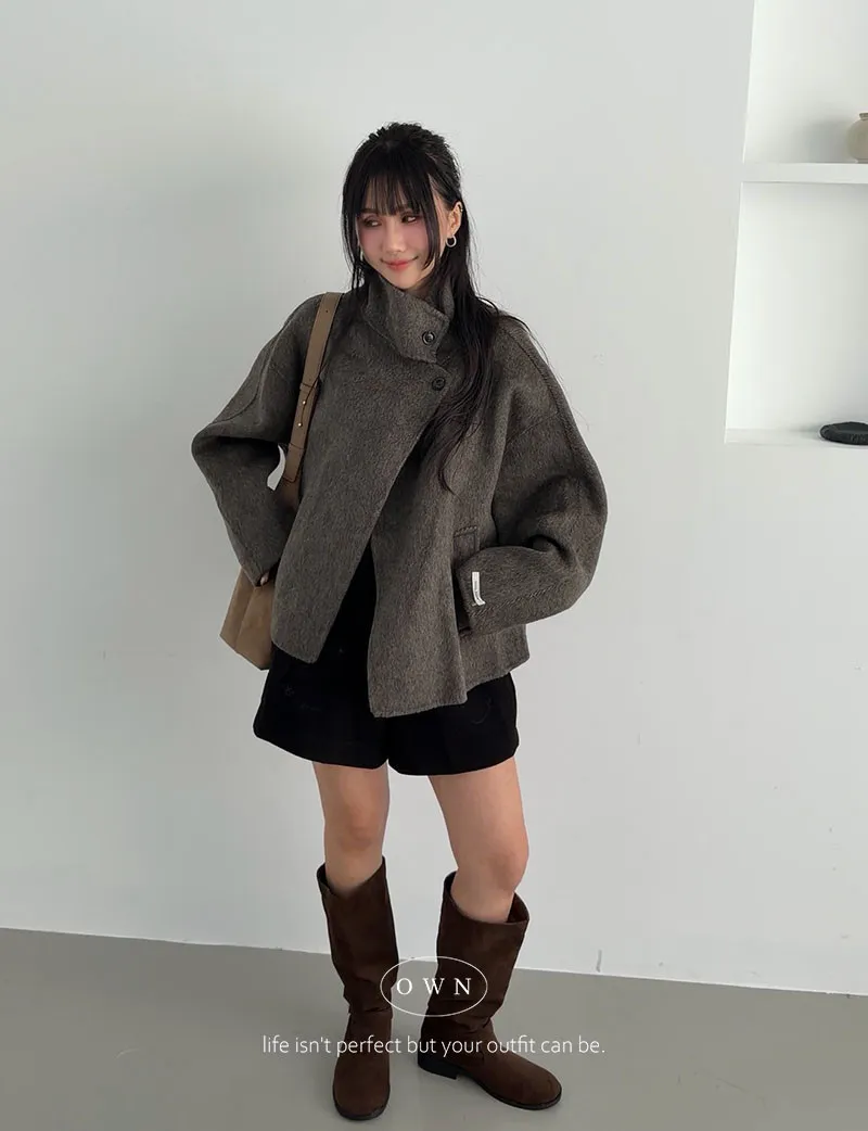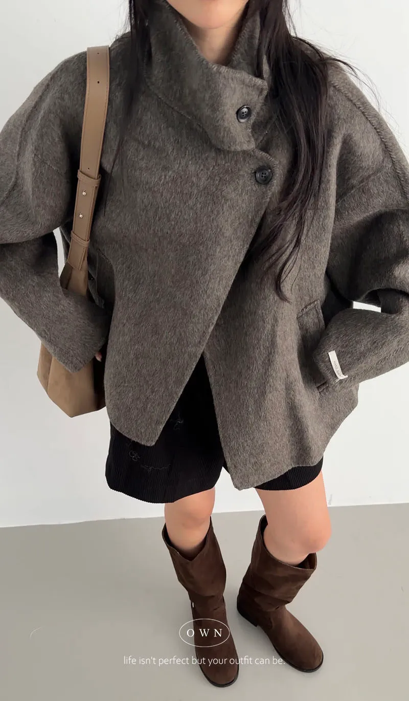 給你滿分氣場 小立領微短版羊絨外套 2colors