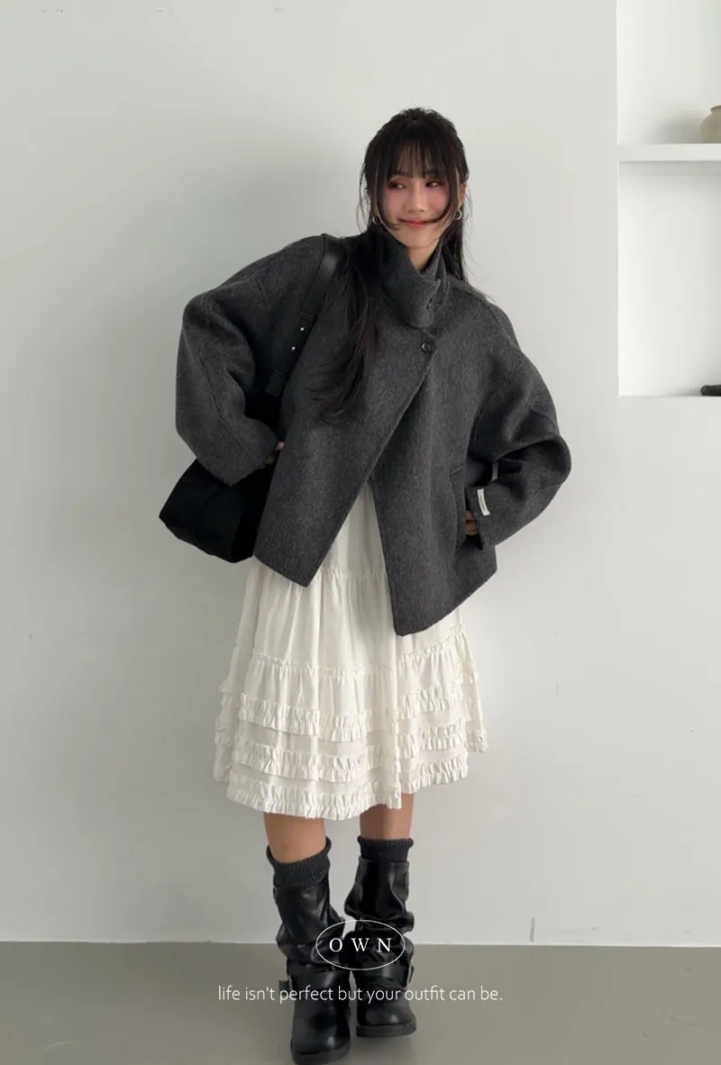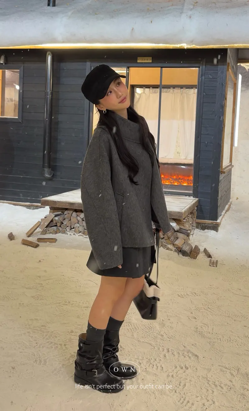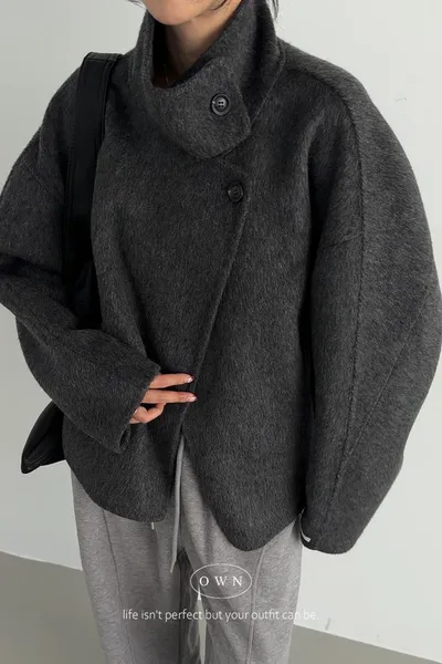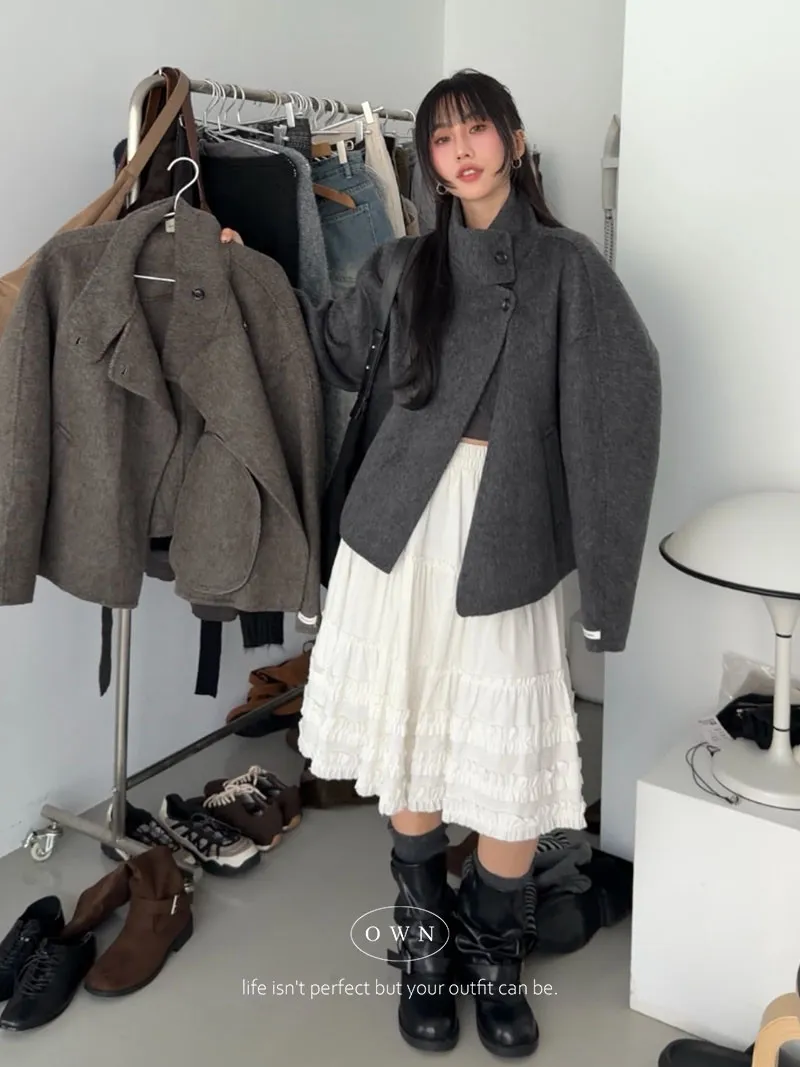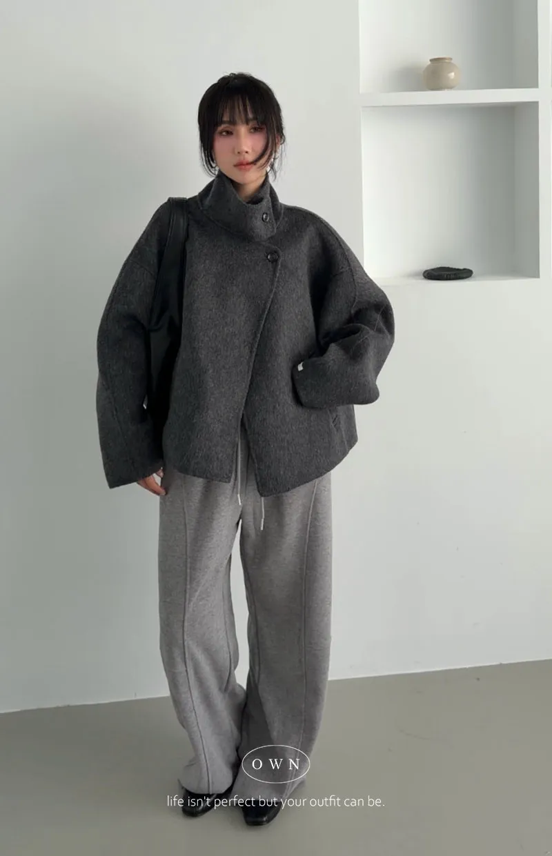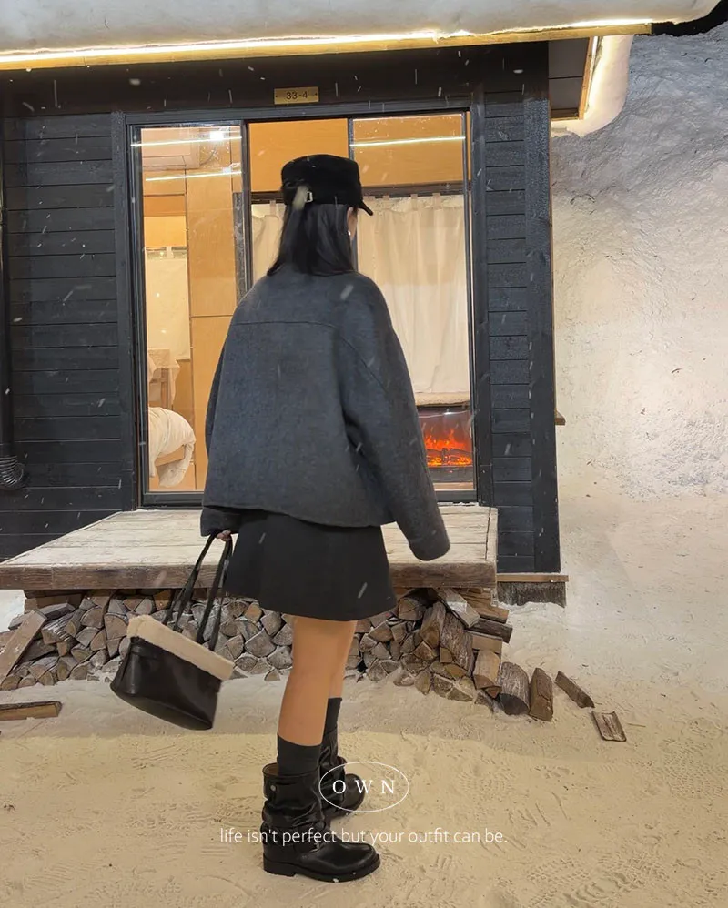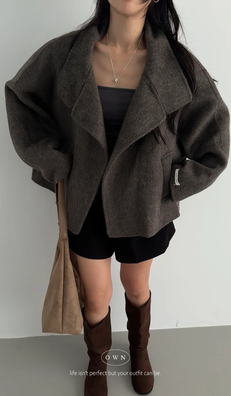 給你滿分氣場 小立領微短版羊絨外套 2colors
