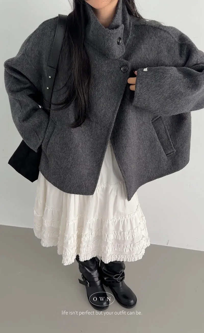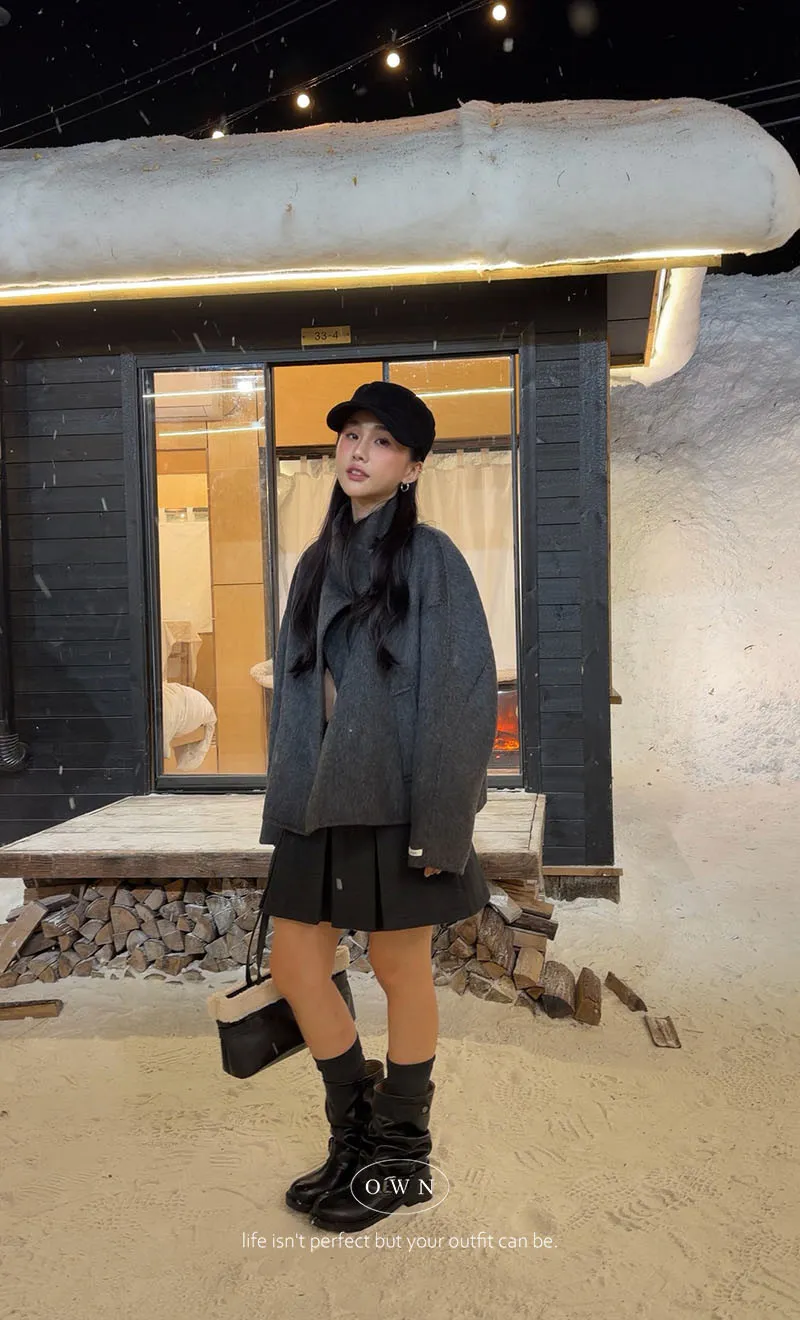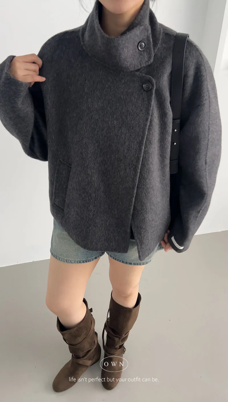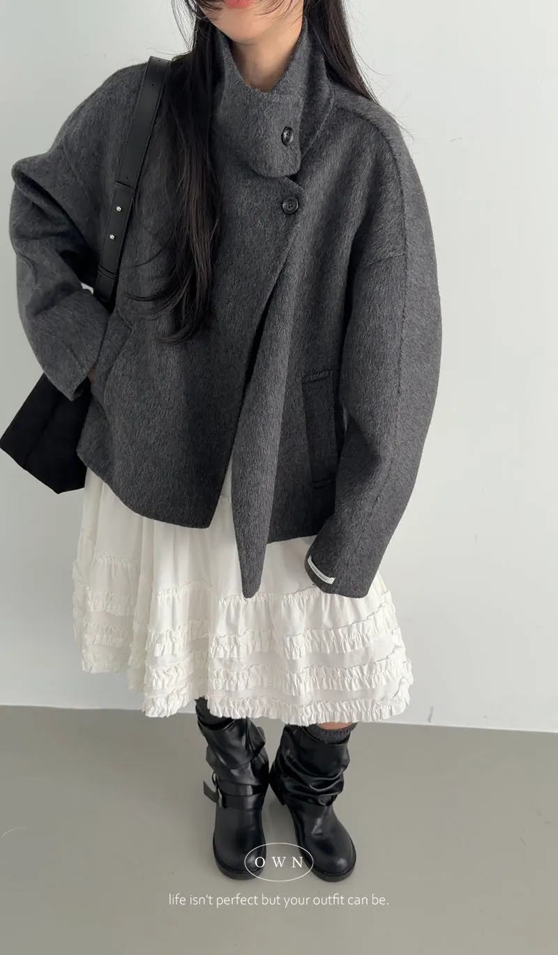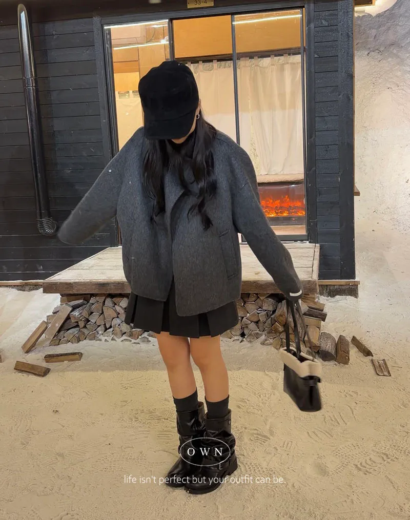 給你滿分氣場 小立領微短版羊絨外套 2colors