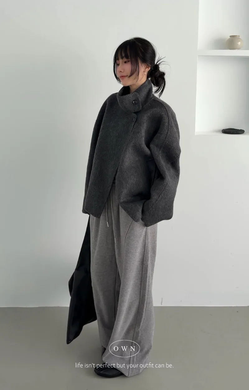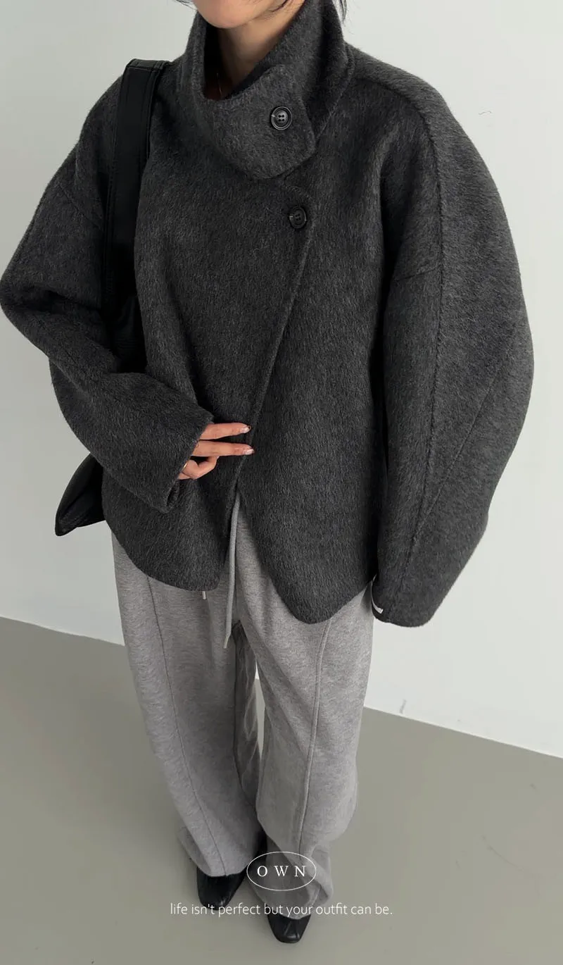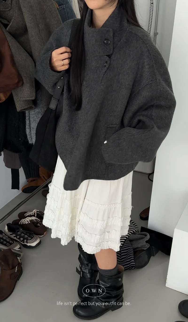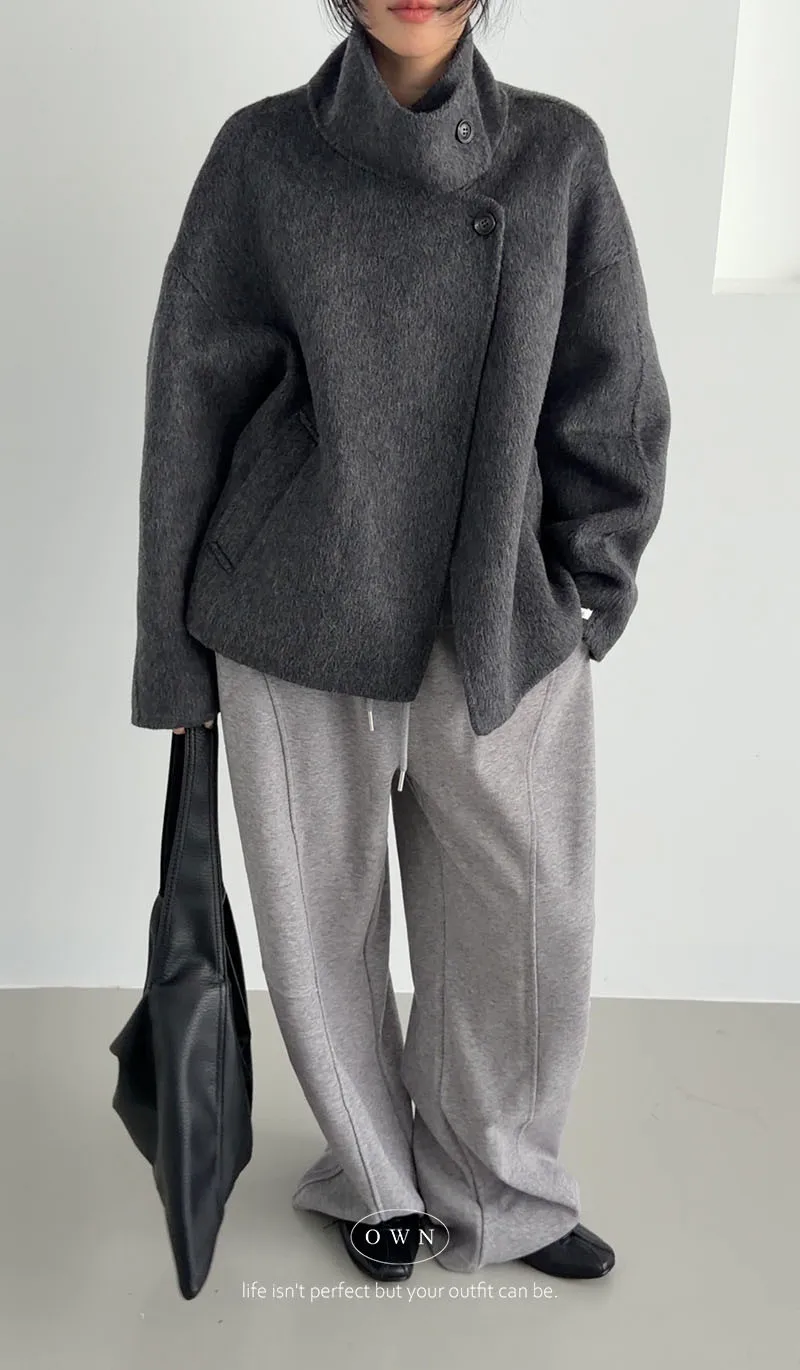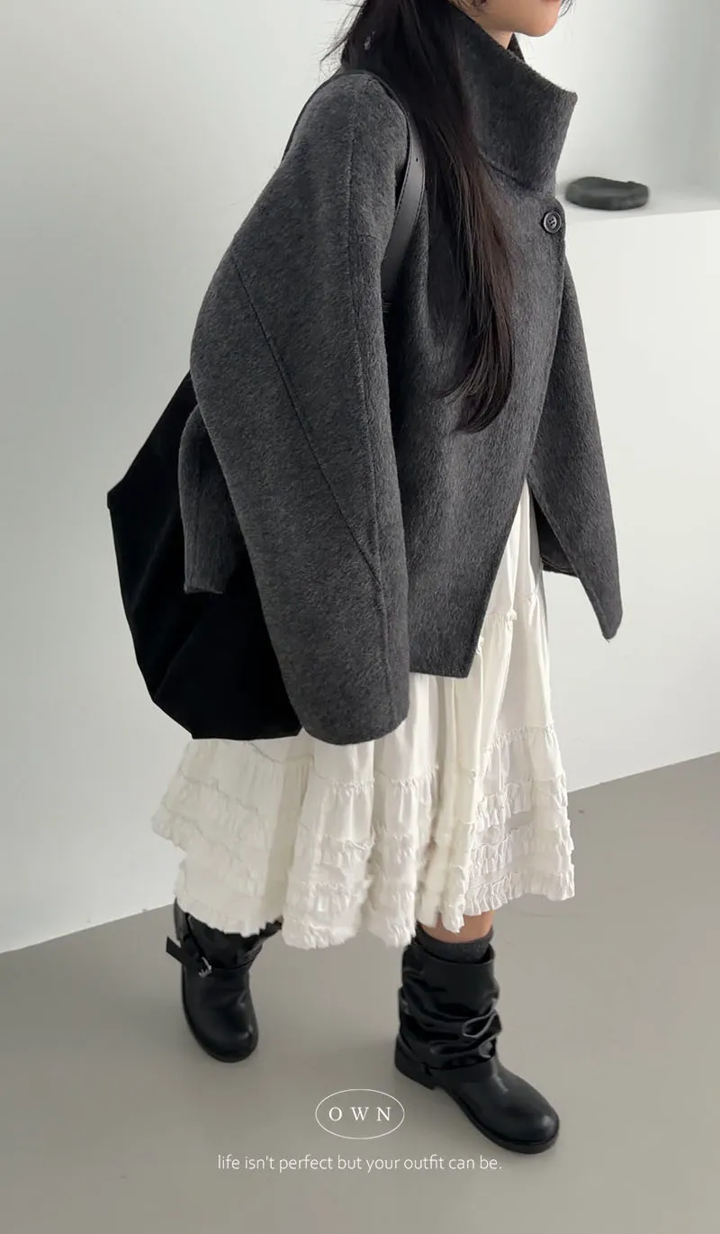 給你滿分氣場 小立領微短版羊絨外套 2colors