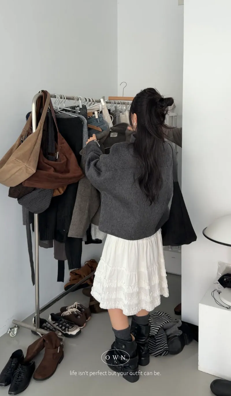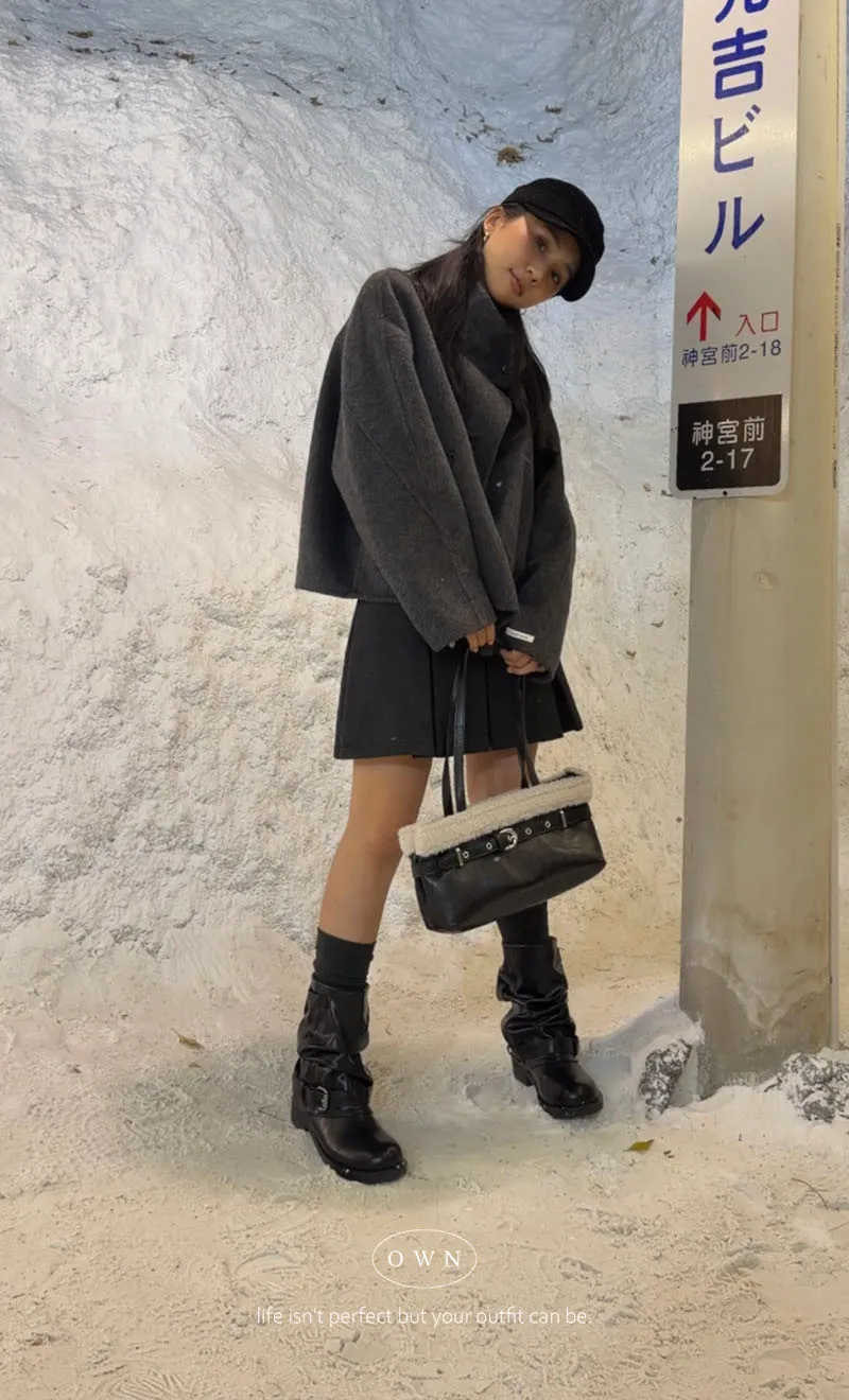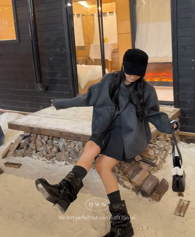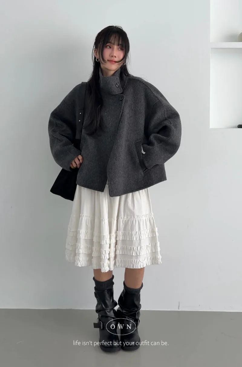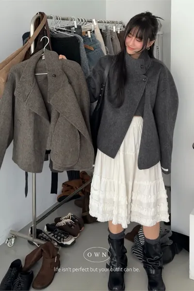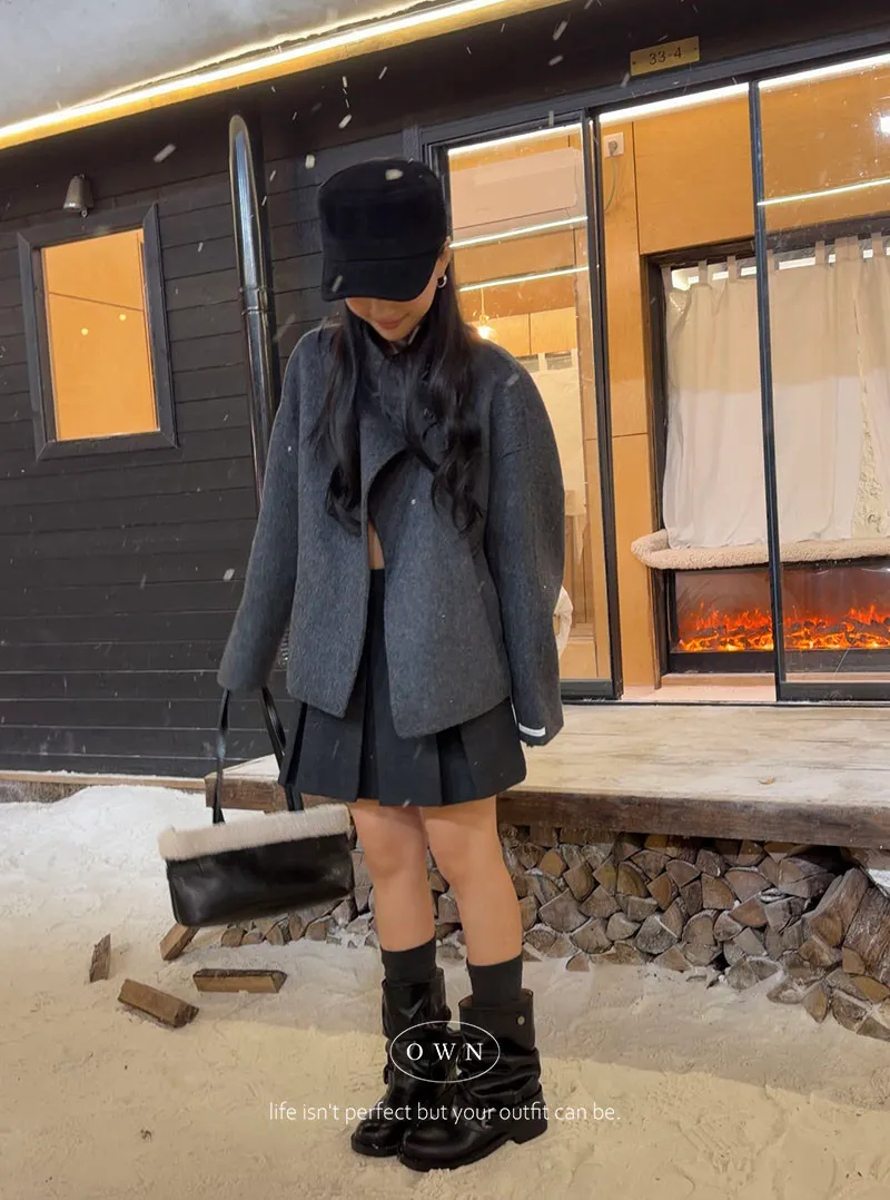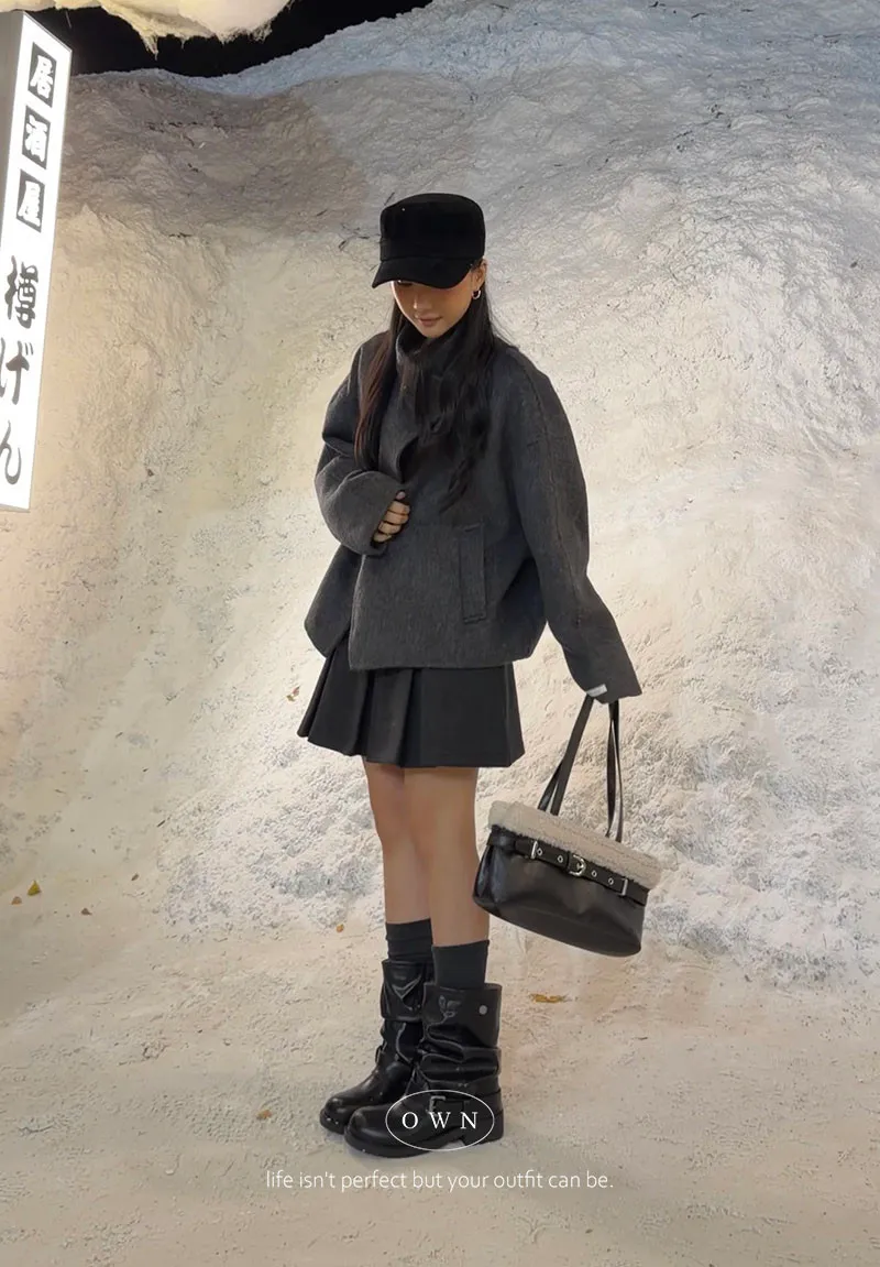 給你滿分氣場 小立領微短版羊絨外套 2colors