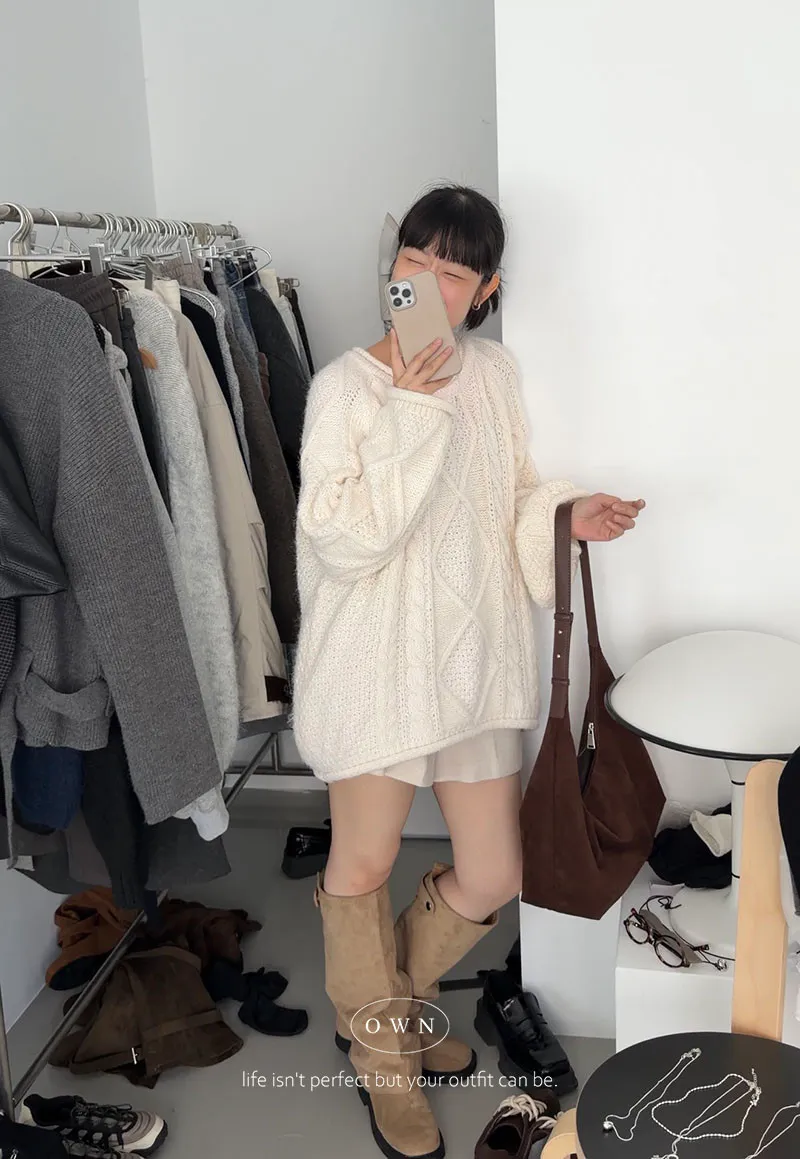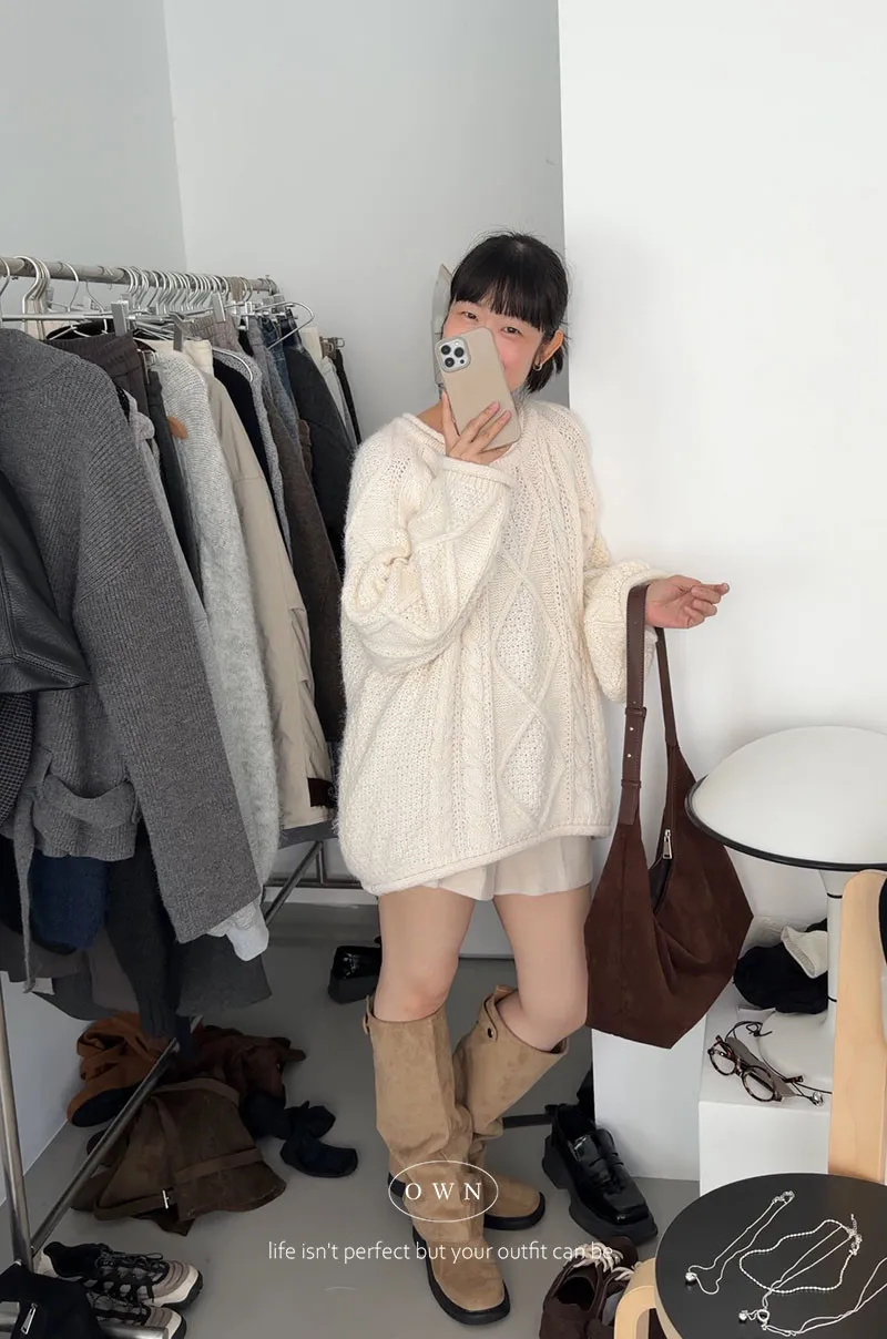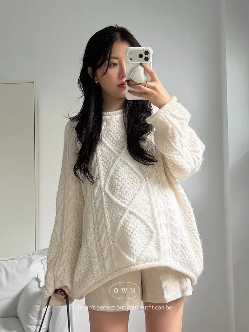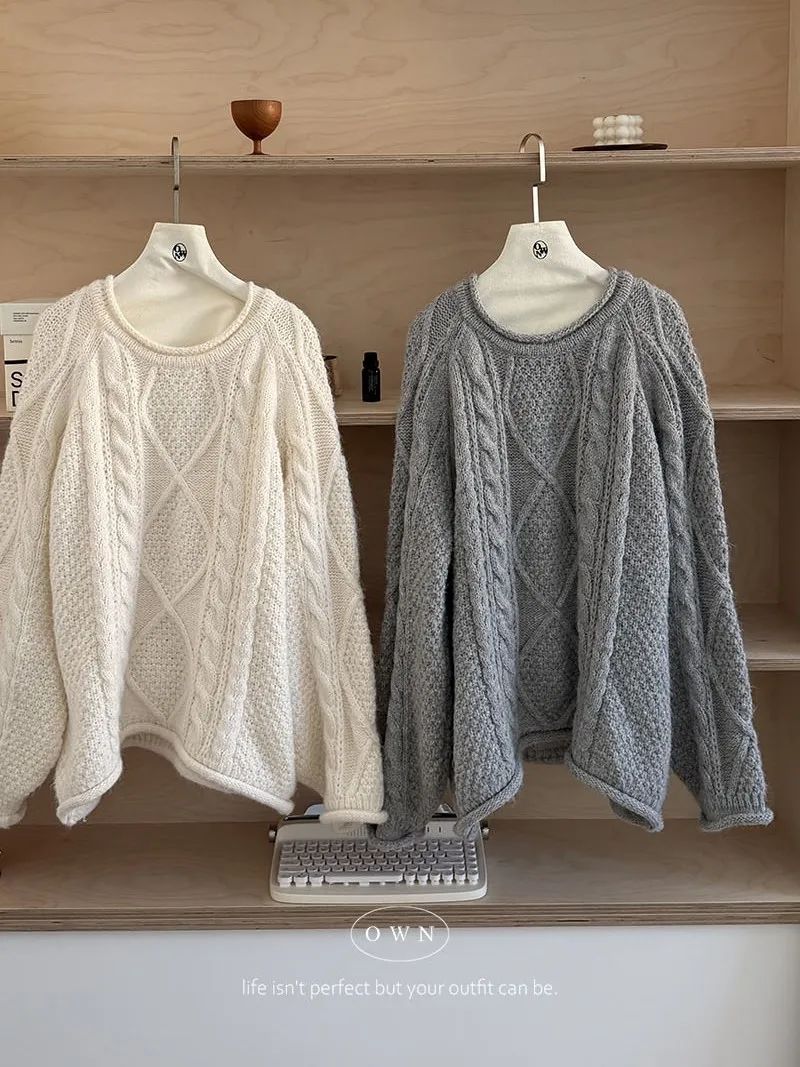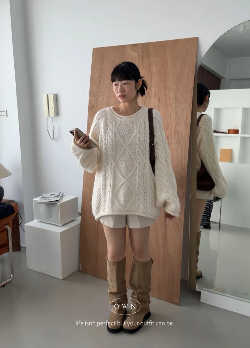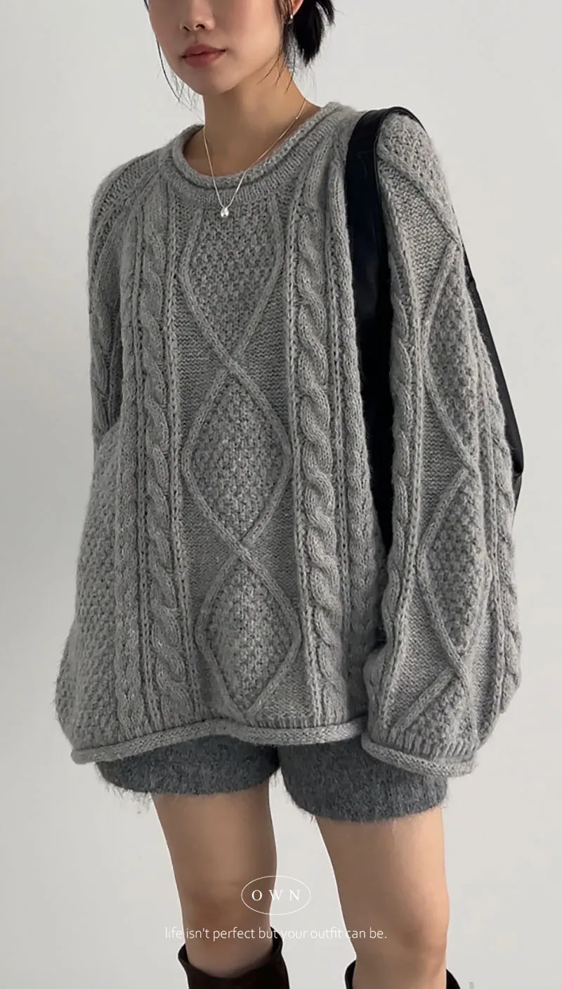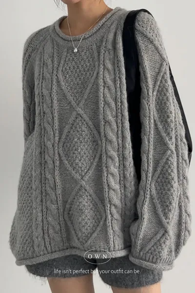 入手一件穿整季 混羊毛寬鬆麻花毛衣 2colors
