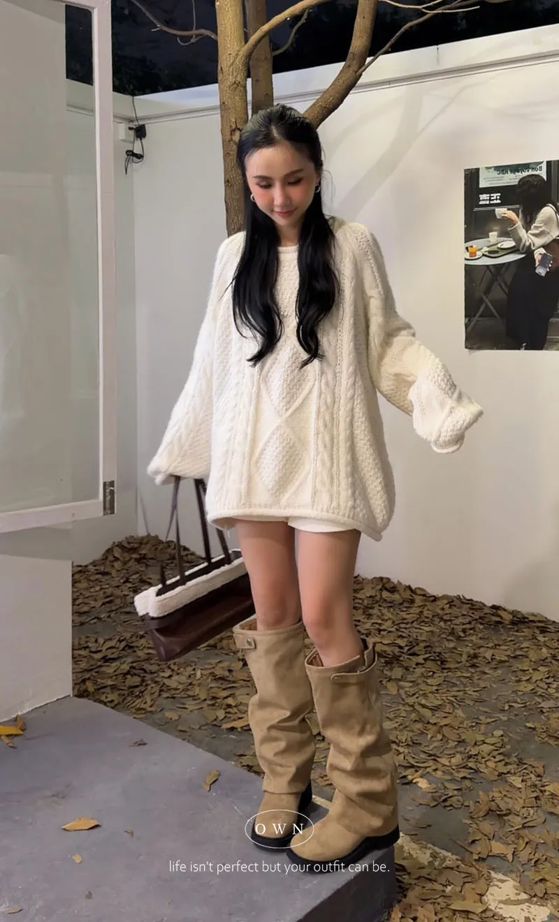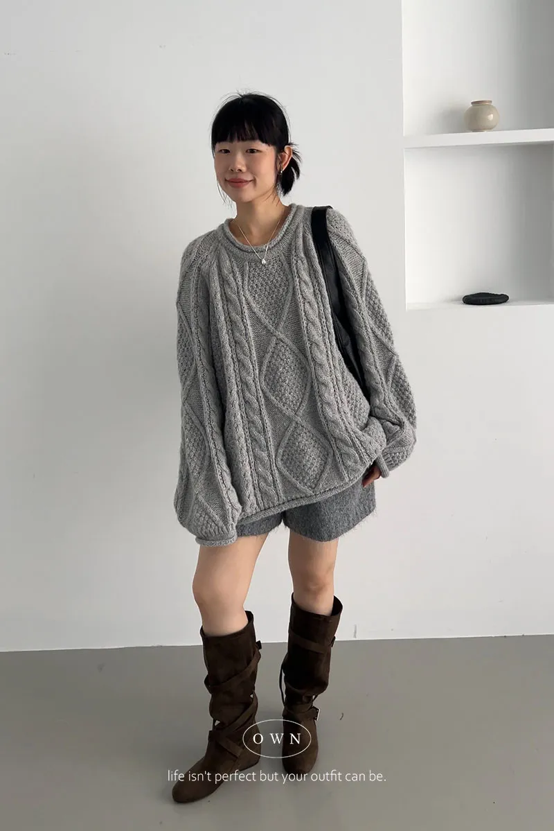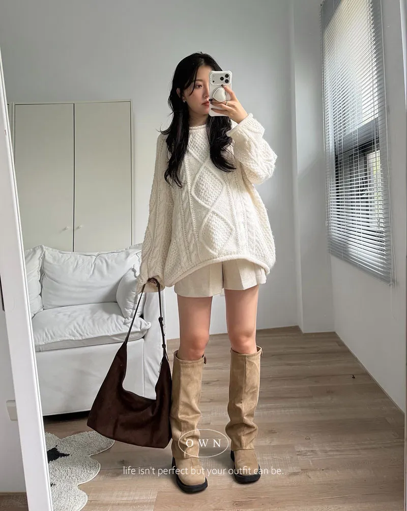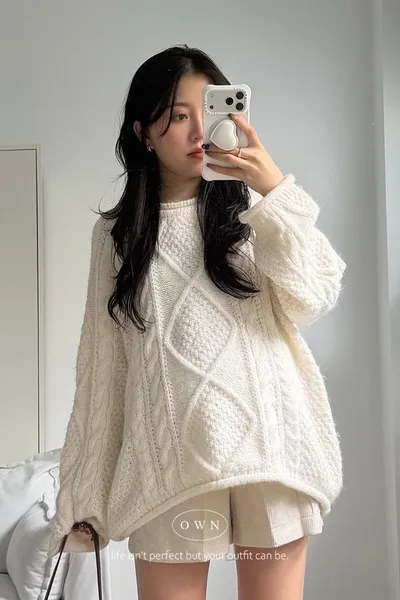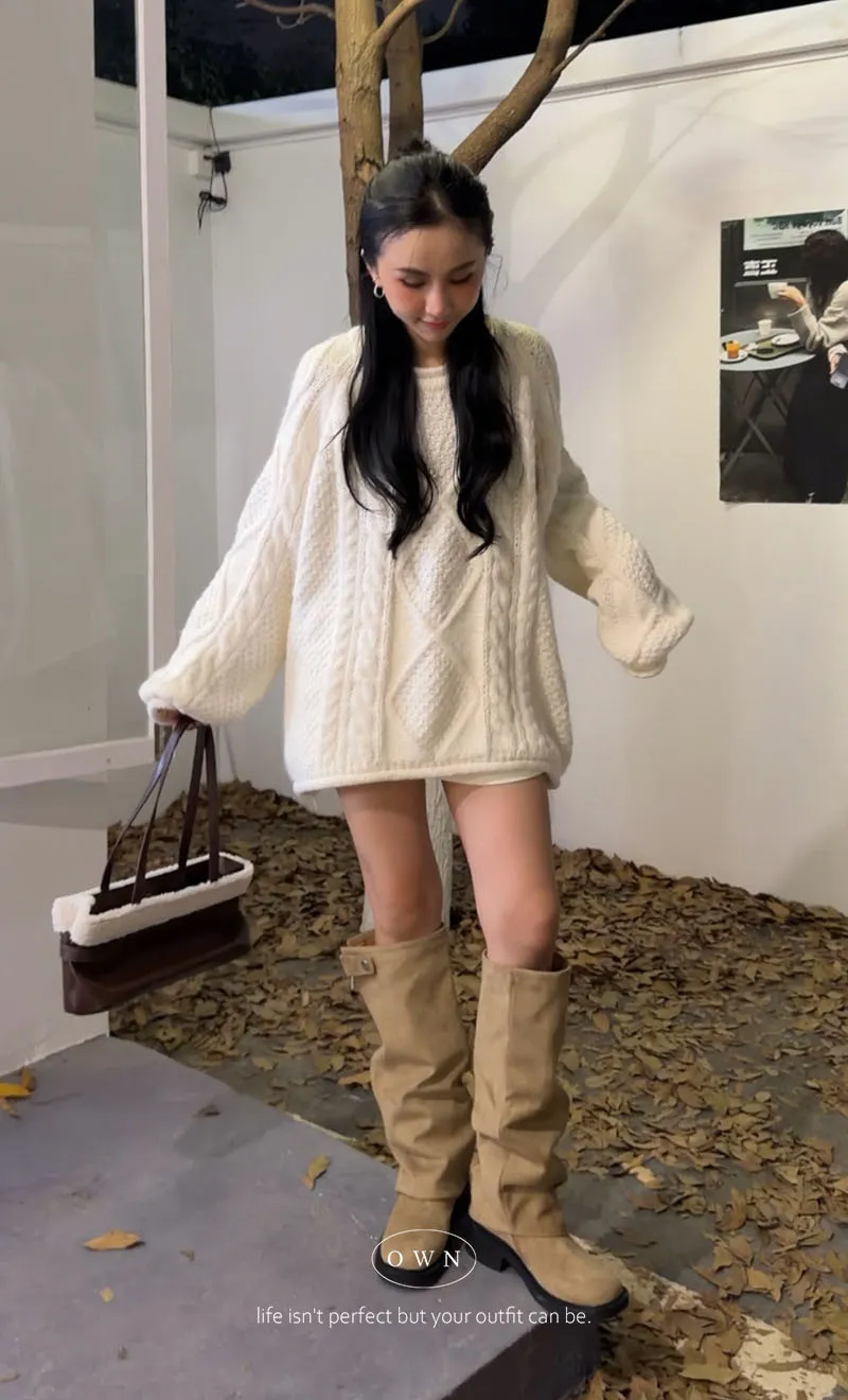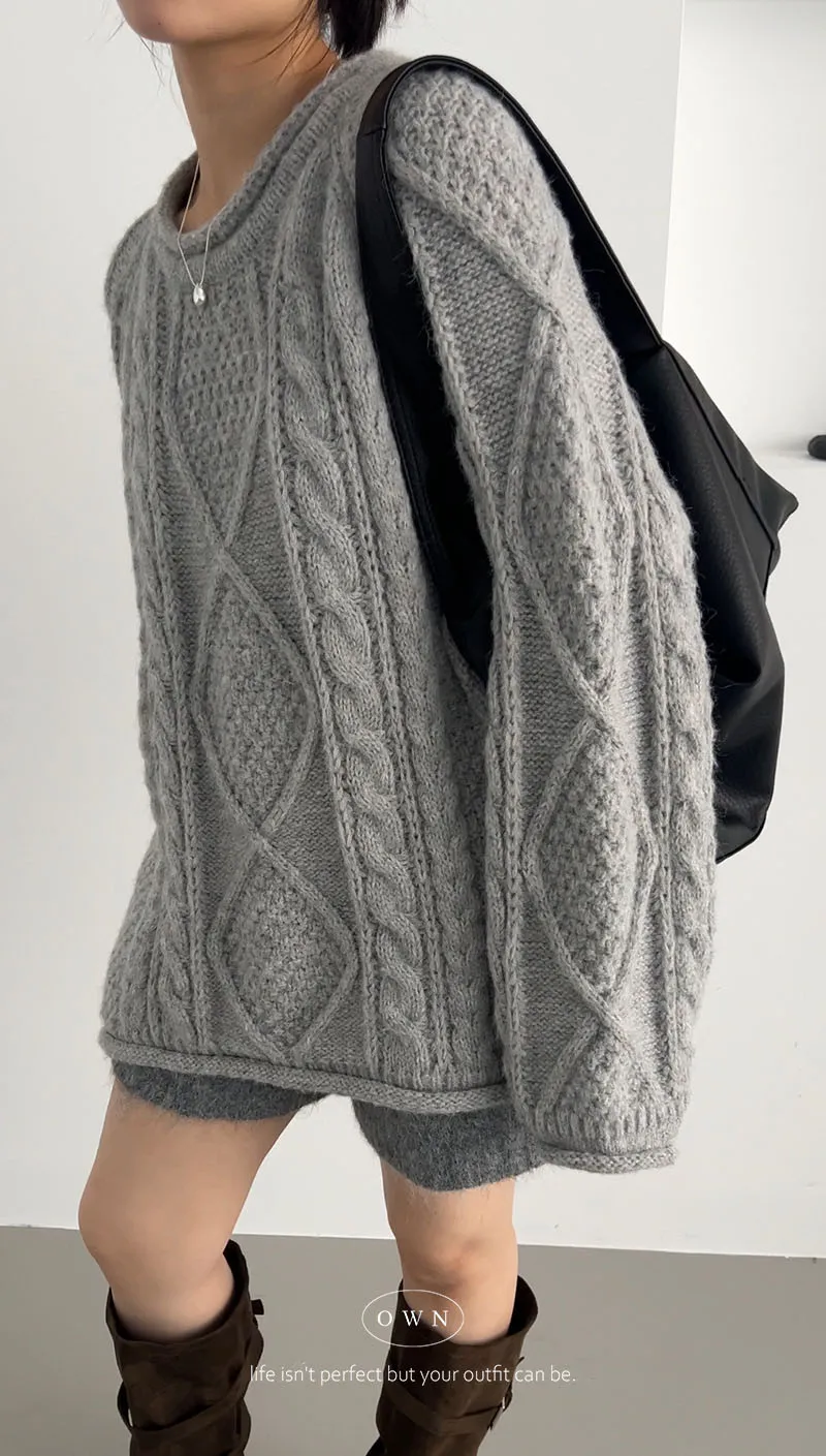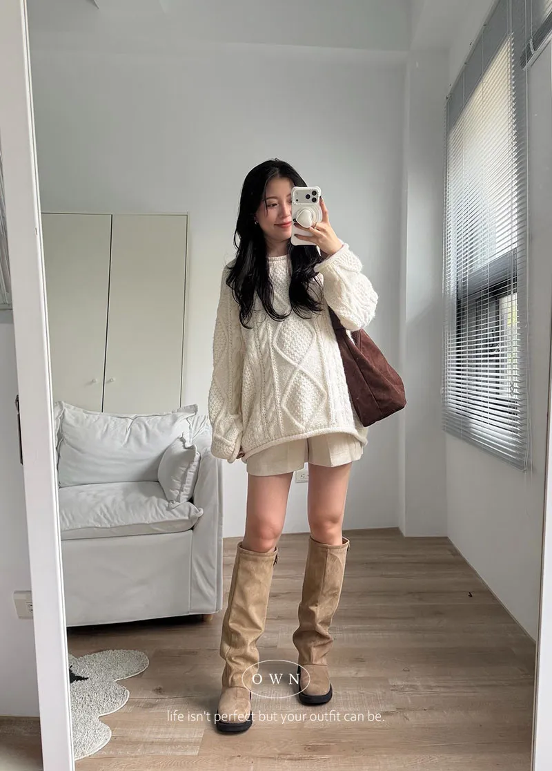 入手一件穿整季 混羊毛寬鬆麻花毛衣 2colors