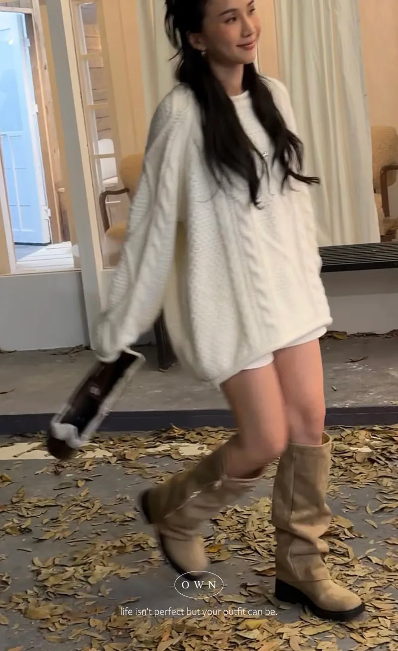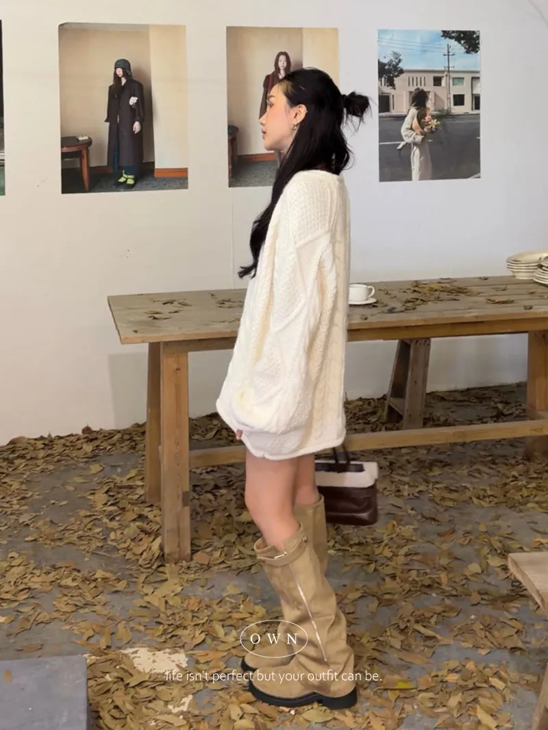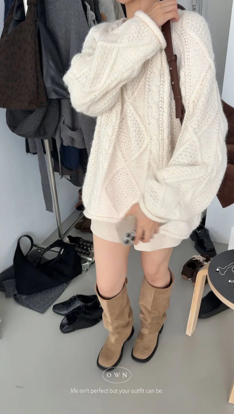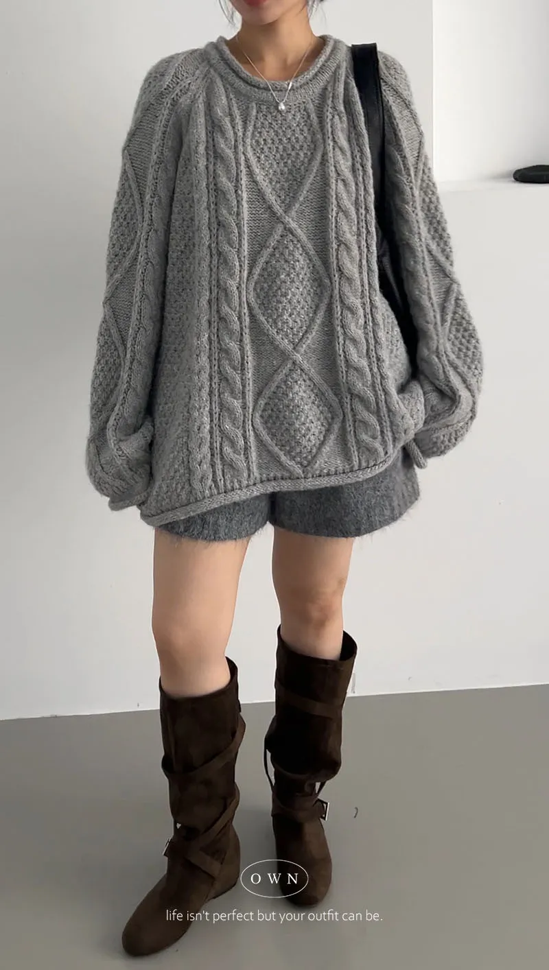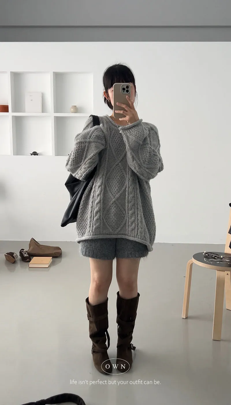 入手一件穿整季 混羊毛寬鬆麻花毛衣 2colors
