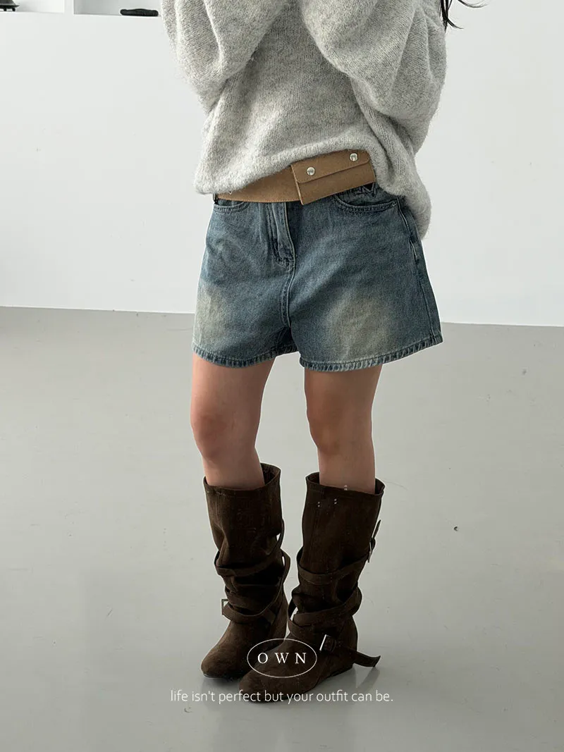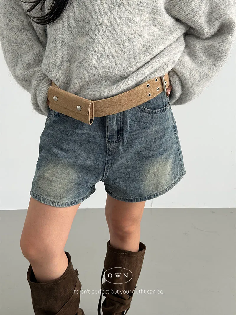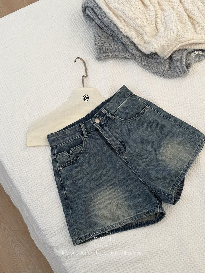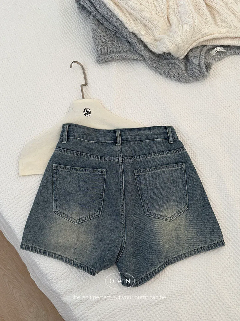 輕鬆拉高比例 復古刷色牛仔短褲 S/M/L/XL
