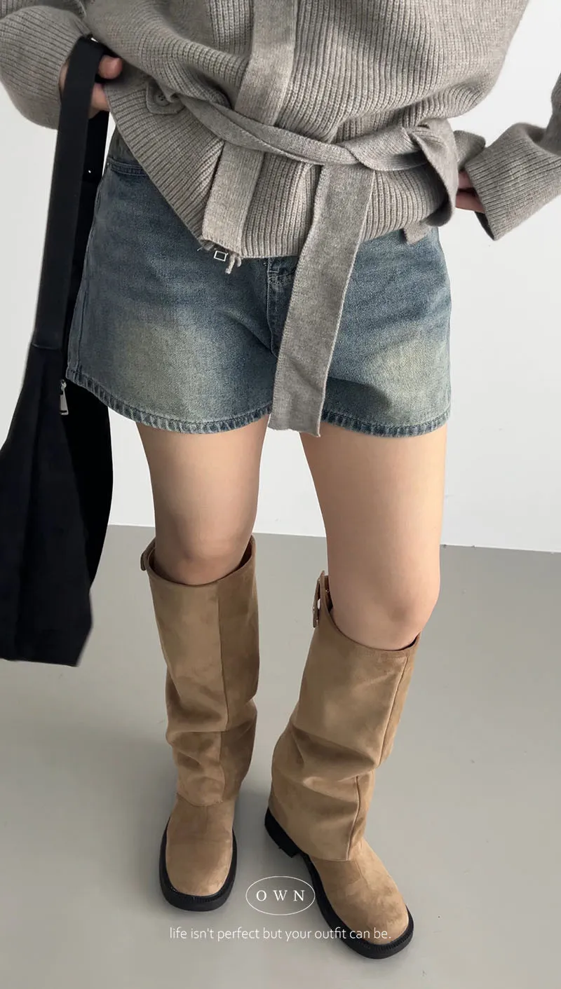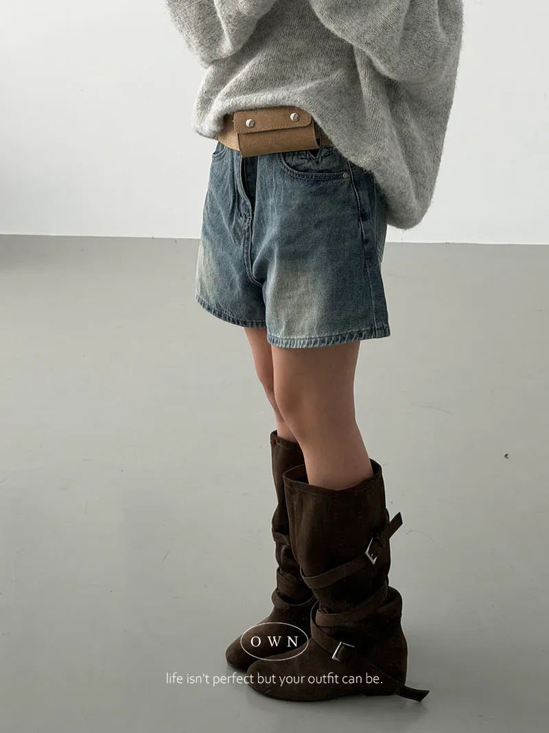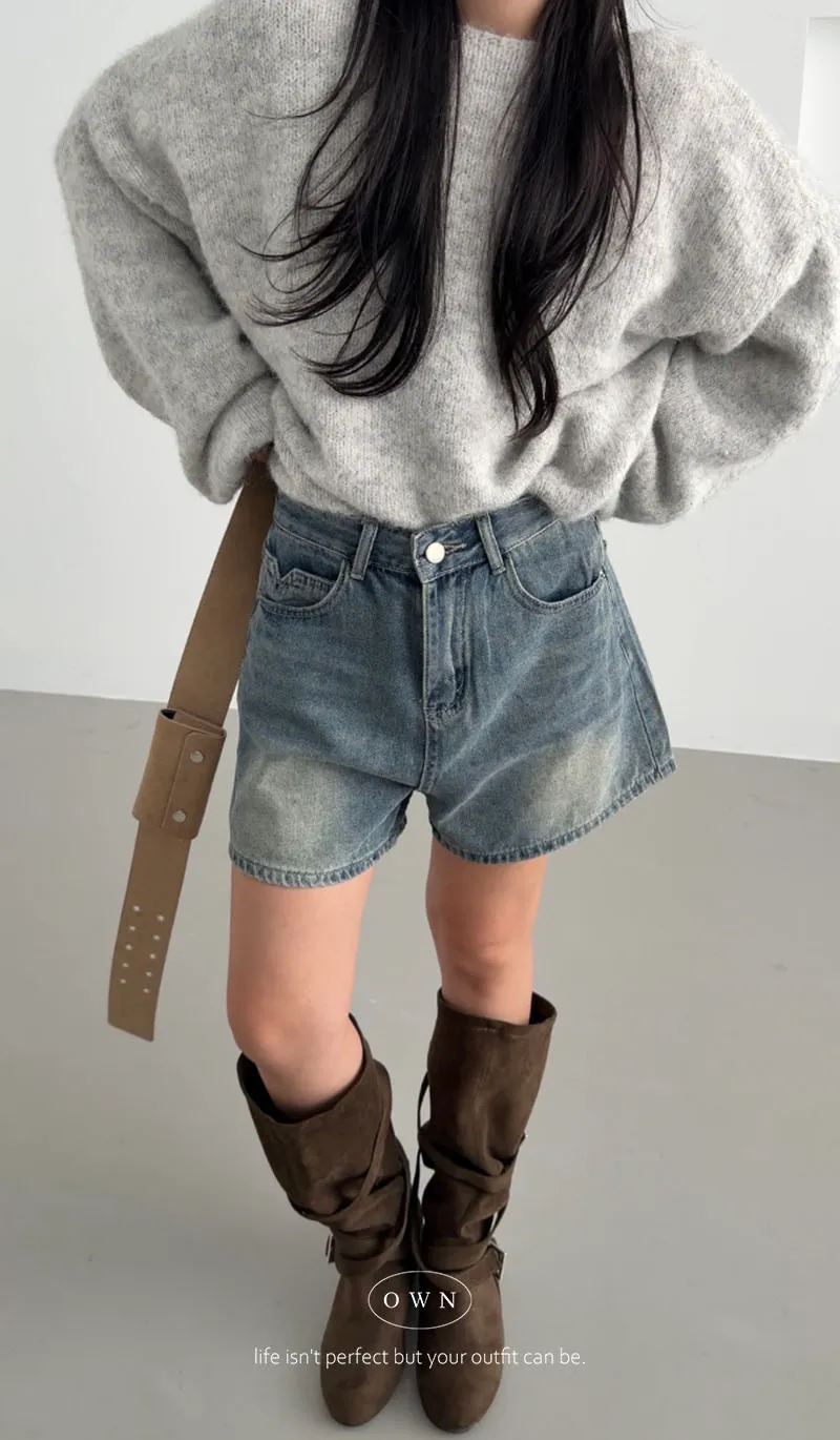 輕鬆拉高比例 復古刷色牛仔短褲 S/M/L/XL