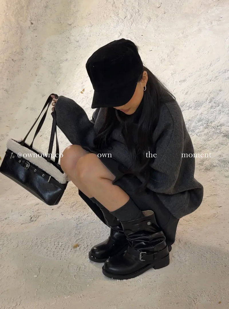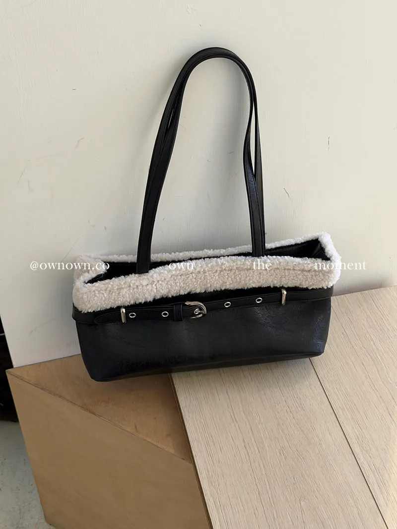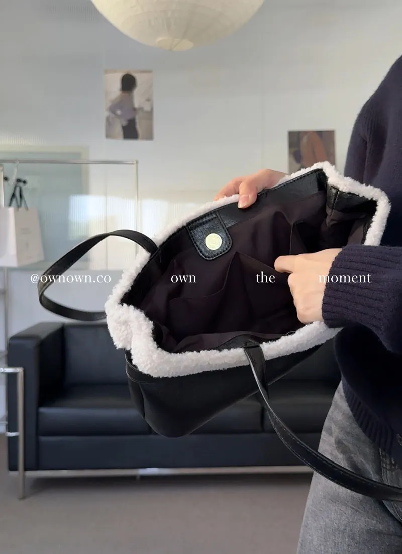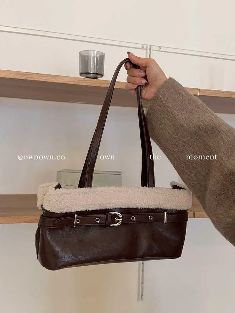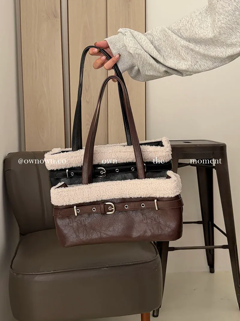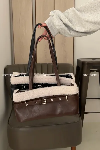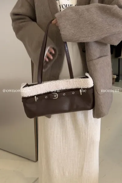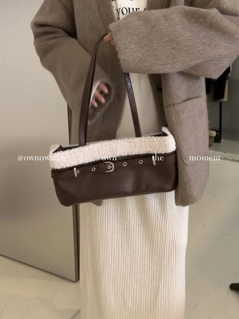 冬天氛圍感 拼接羊羔毛單肩包 2colors