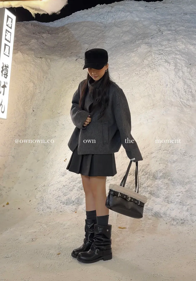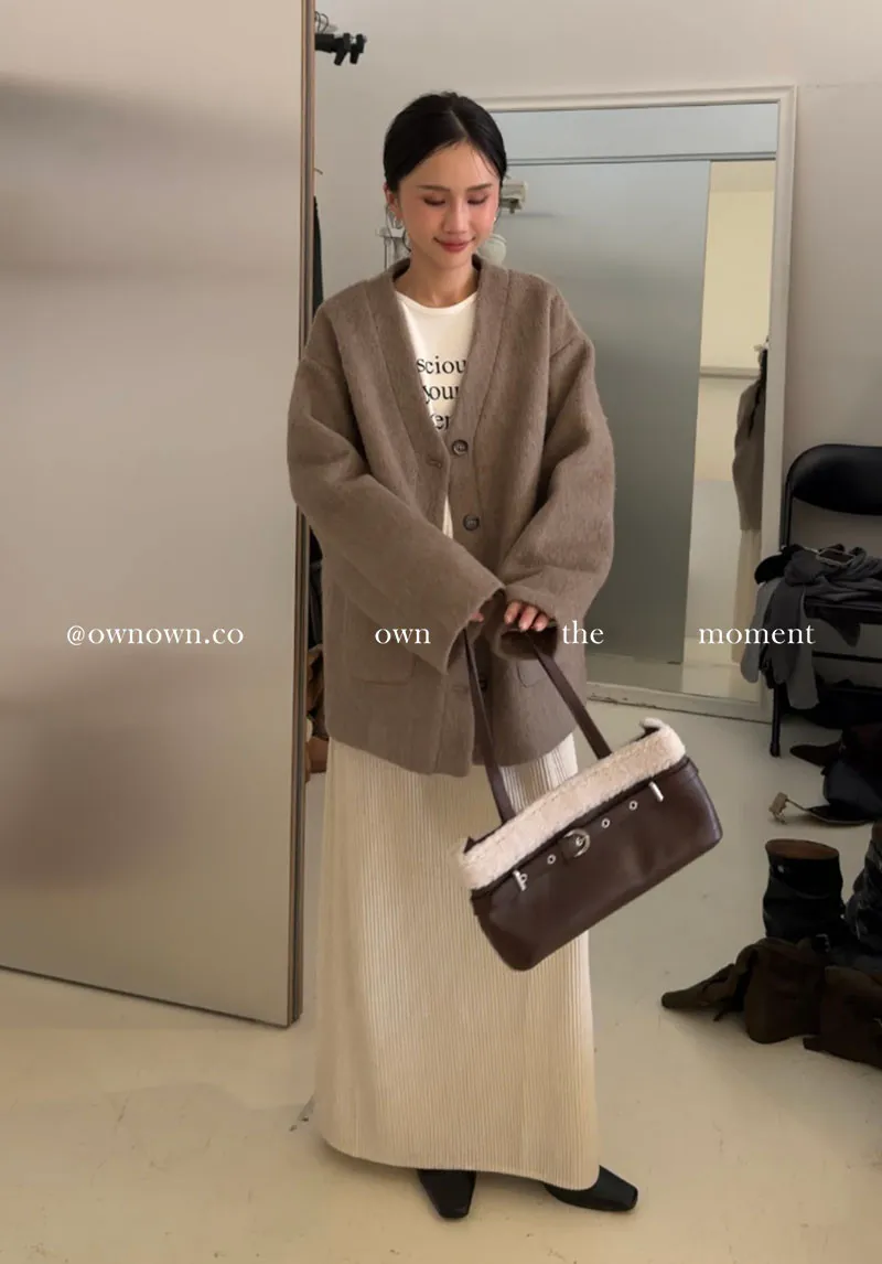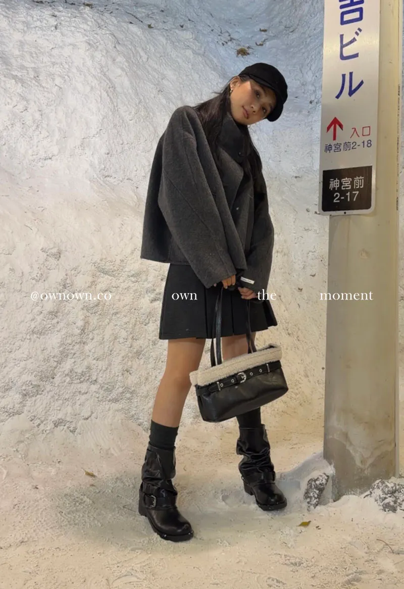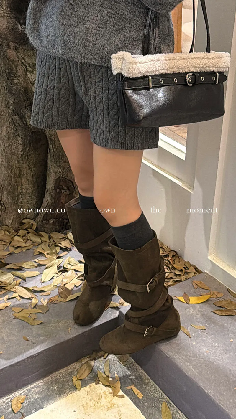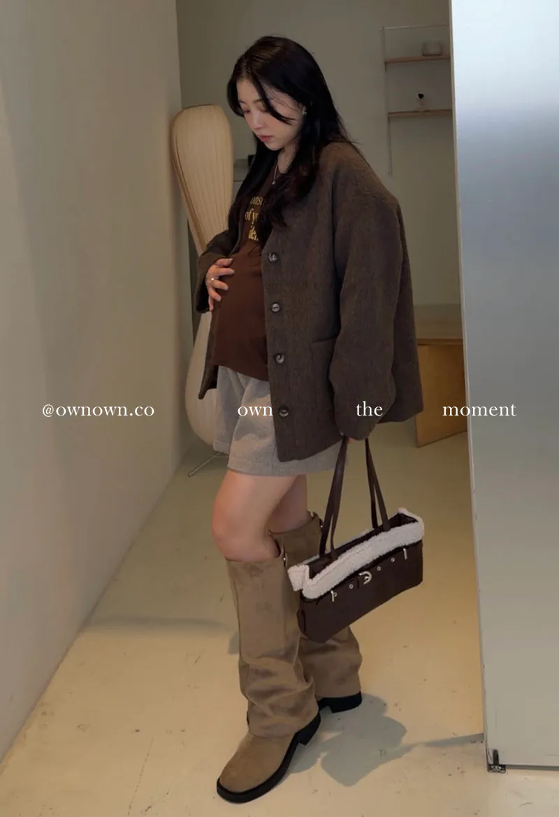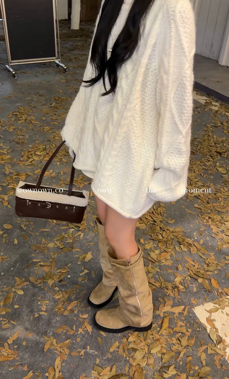 冬天氛圍感 拼接羊羔毛單肩包 2colors
