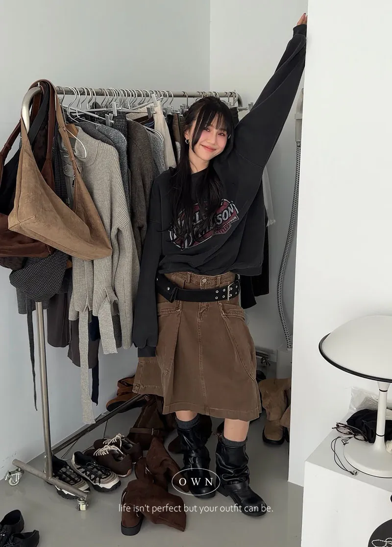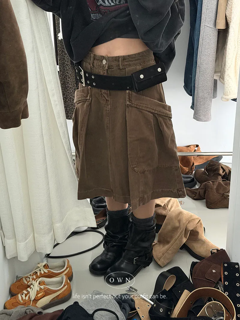 中性感的完美比例 水洗工裝打摺牛仔半裙 3colors