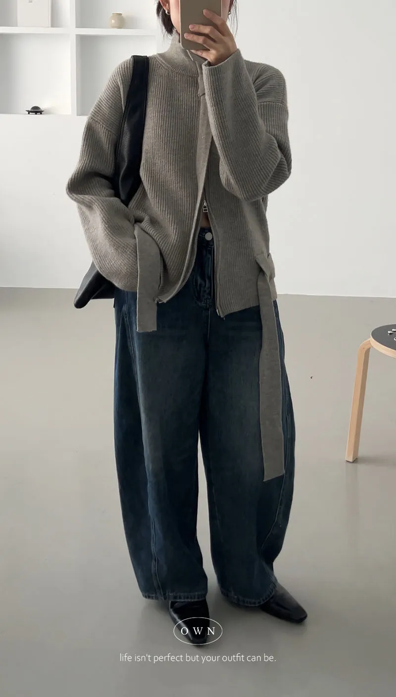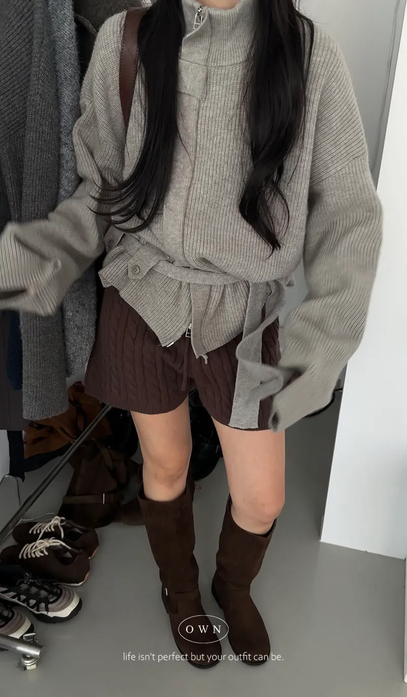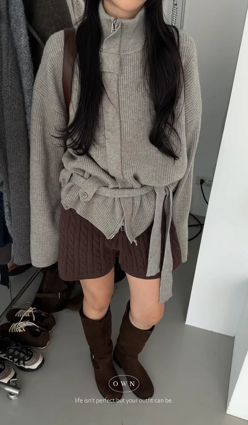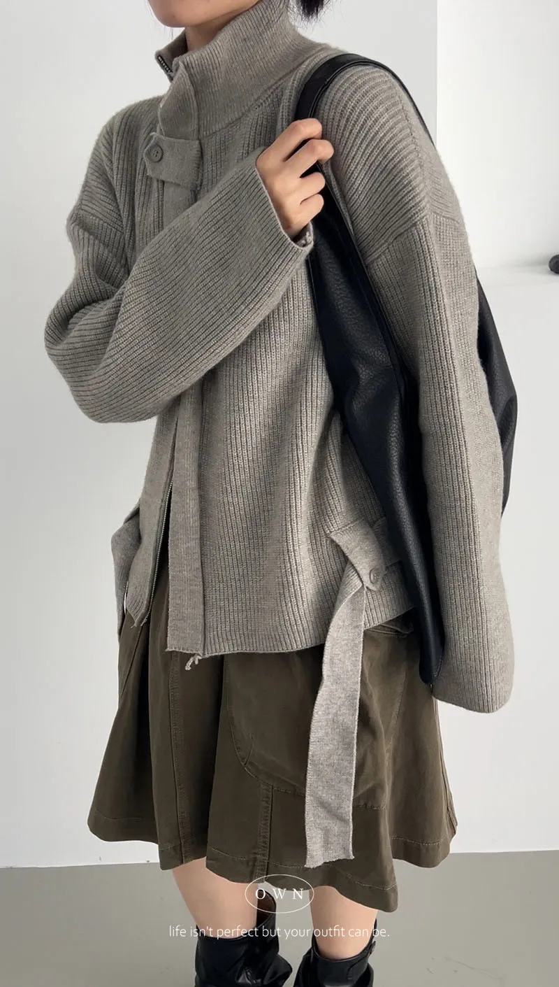 給你俐落高質感 直坑紋立領拉鍊綁帶上衣 3colors