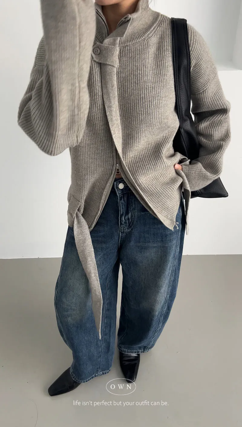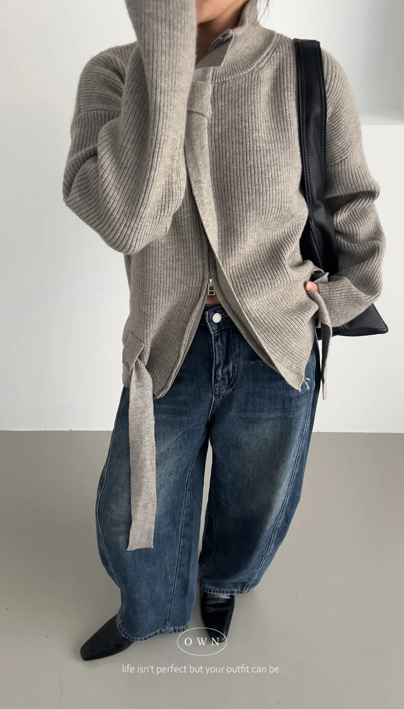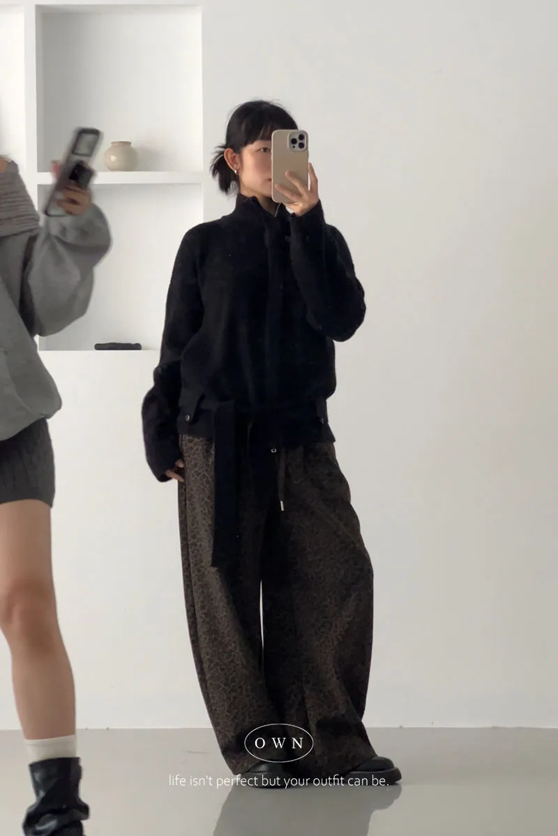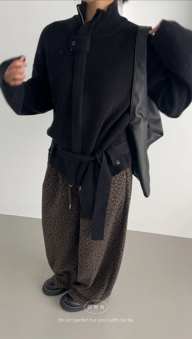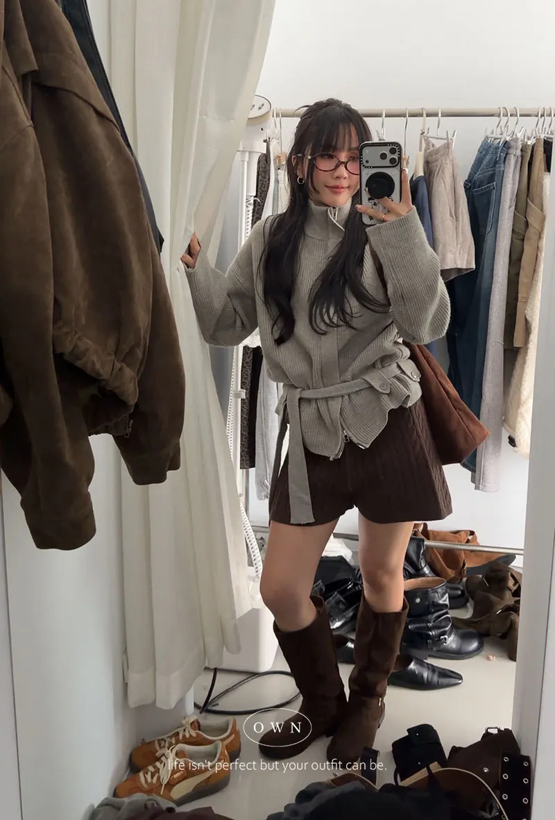 給你俐落高質感 直坑紋立領拉鍊綁帶上衣 3colors