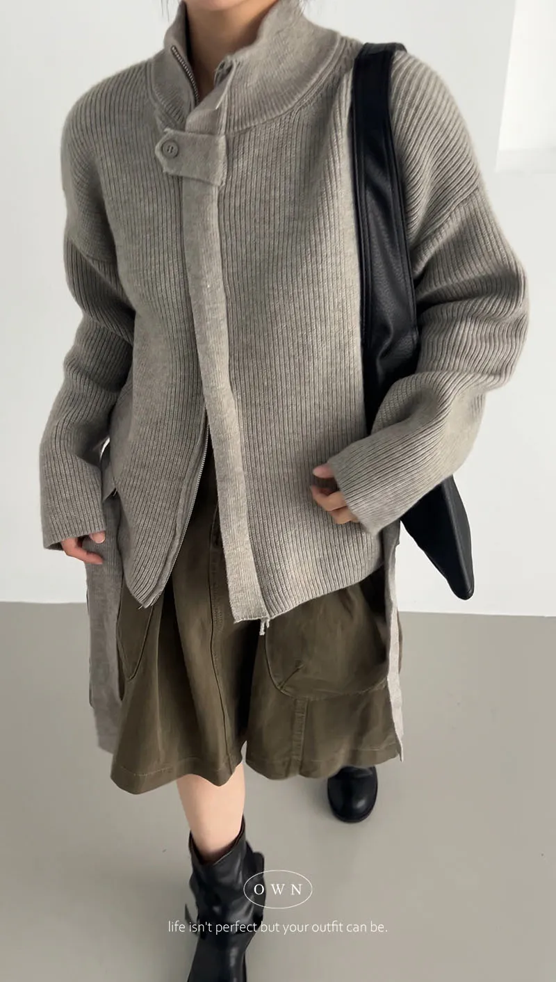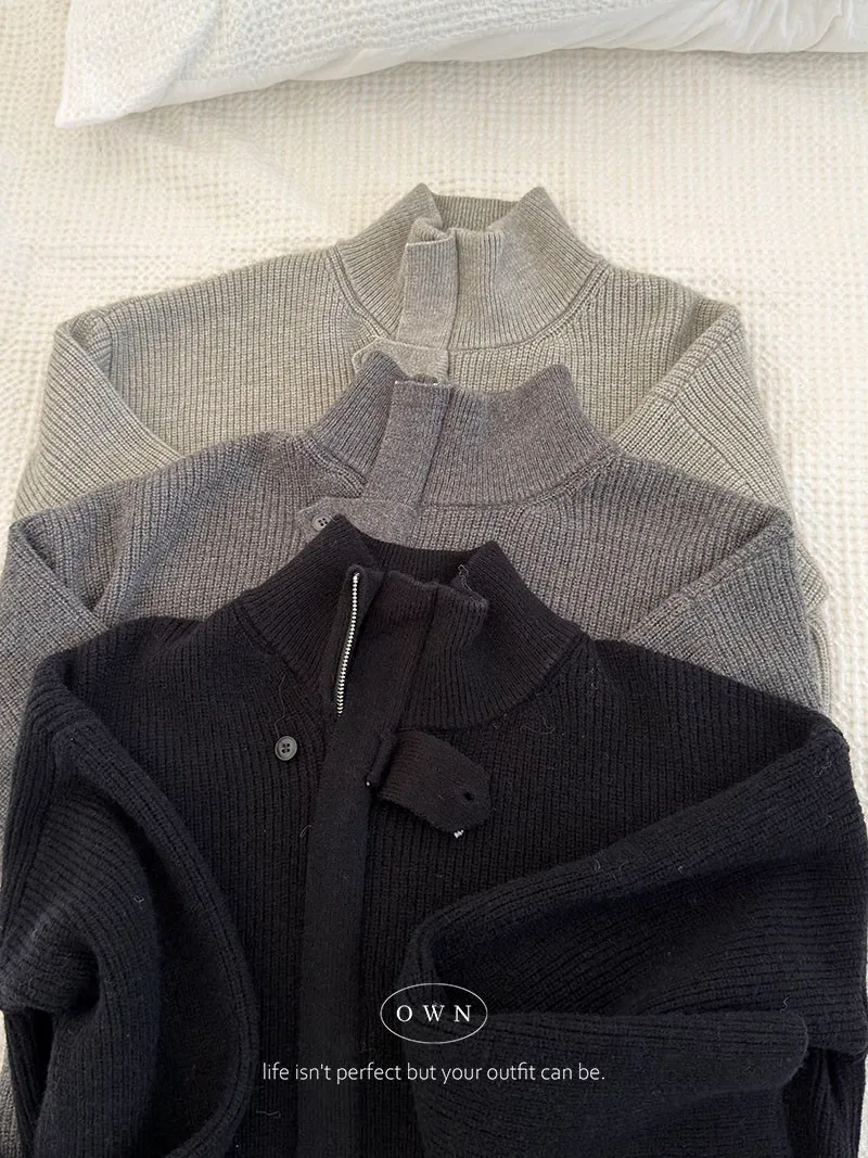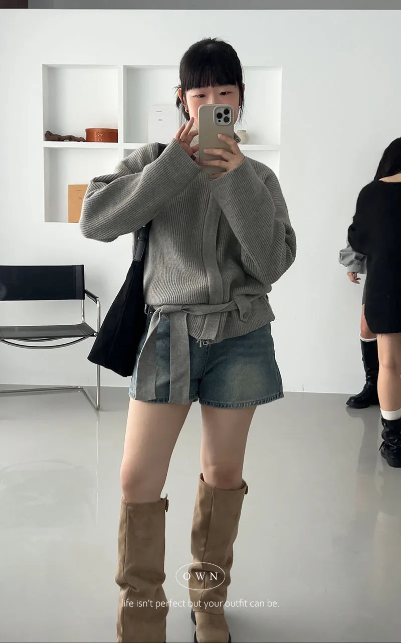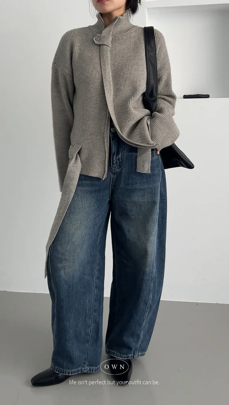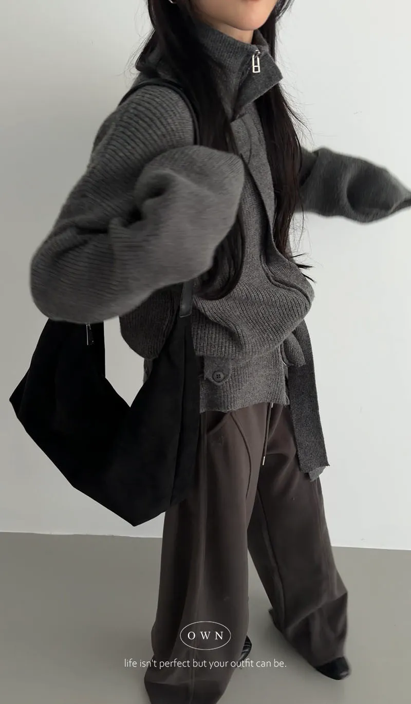 給你俐落高質感 直坑紋立領拉鍊綁帶上衣 3colors