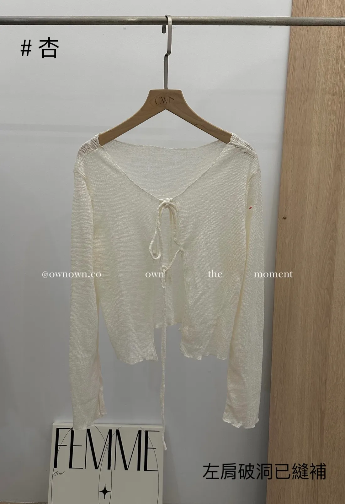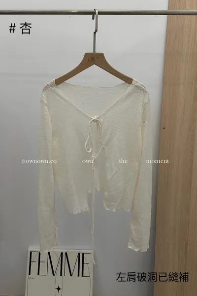 NG處說明:左肩破洞已修補,因針織簍空關係近看會看到縫線痕跡,介意者請謹慎購買(實拍如圖)