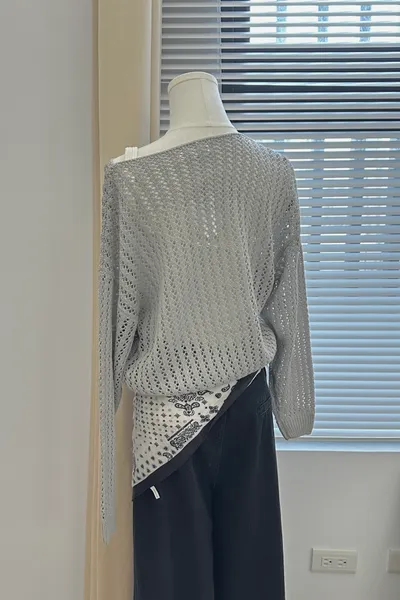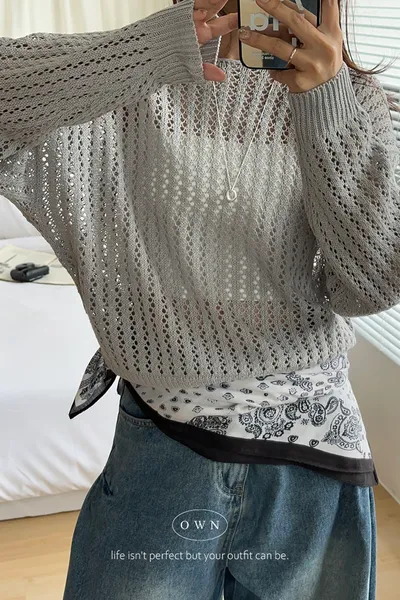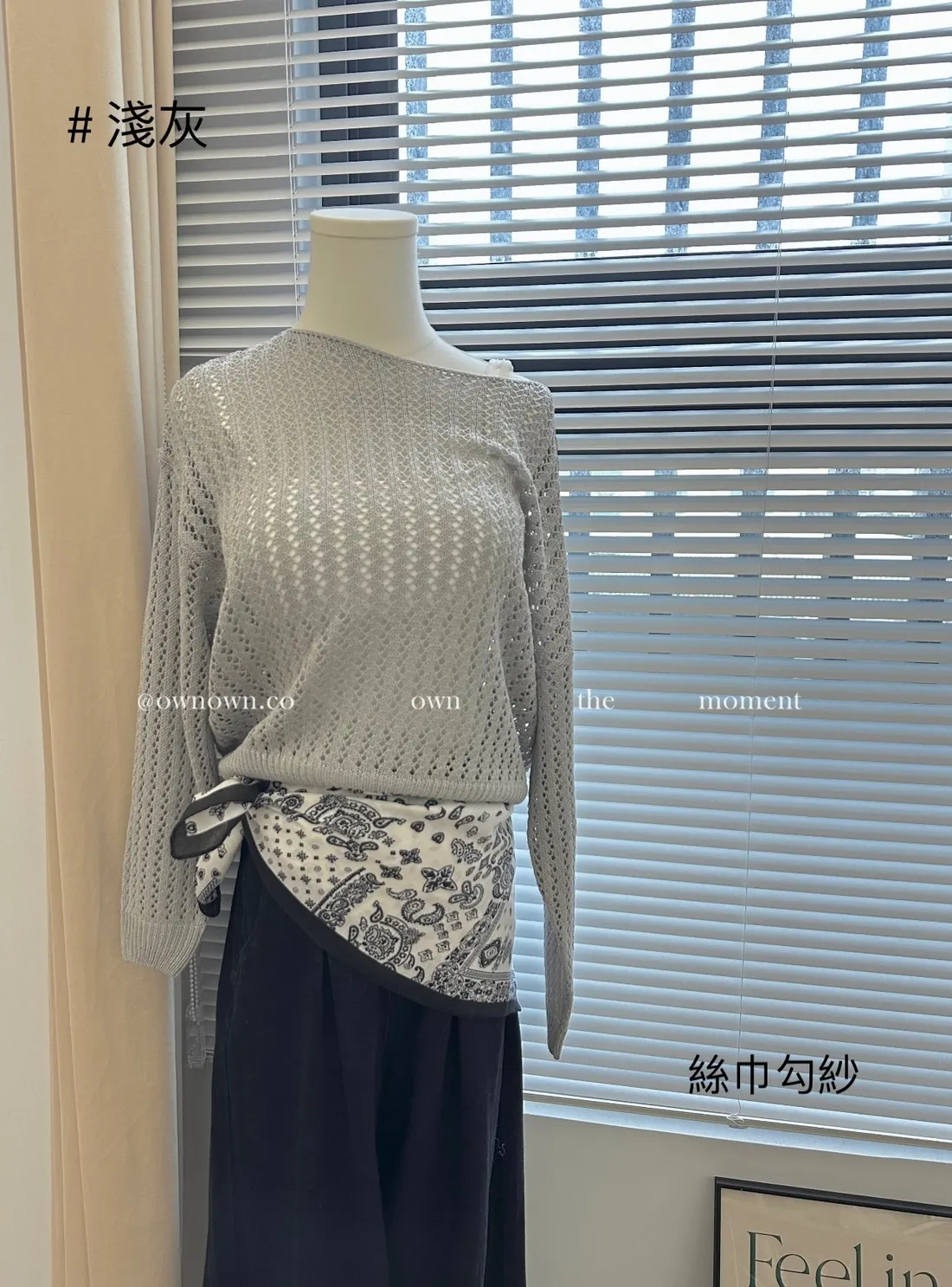 【NG小瑕疵優惠】隨便搭都有造型感 洞洞針織上衣+絲巾